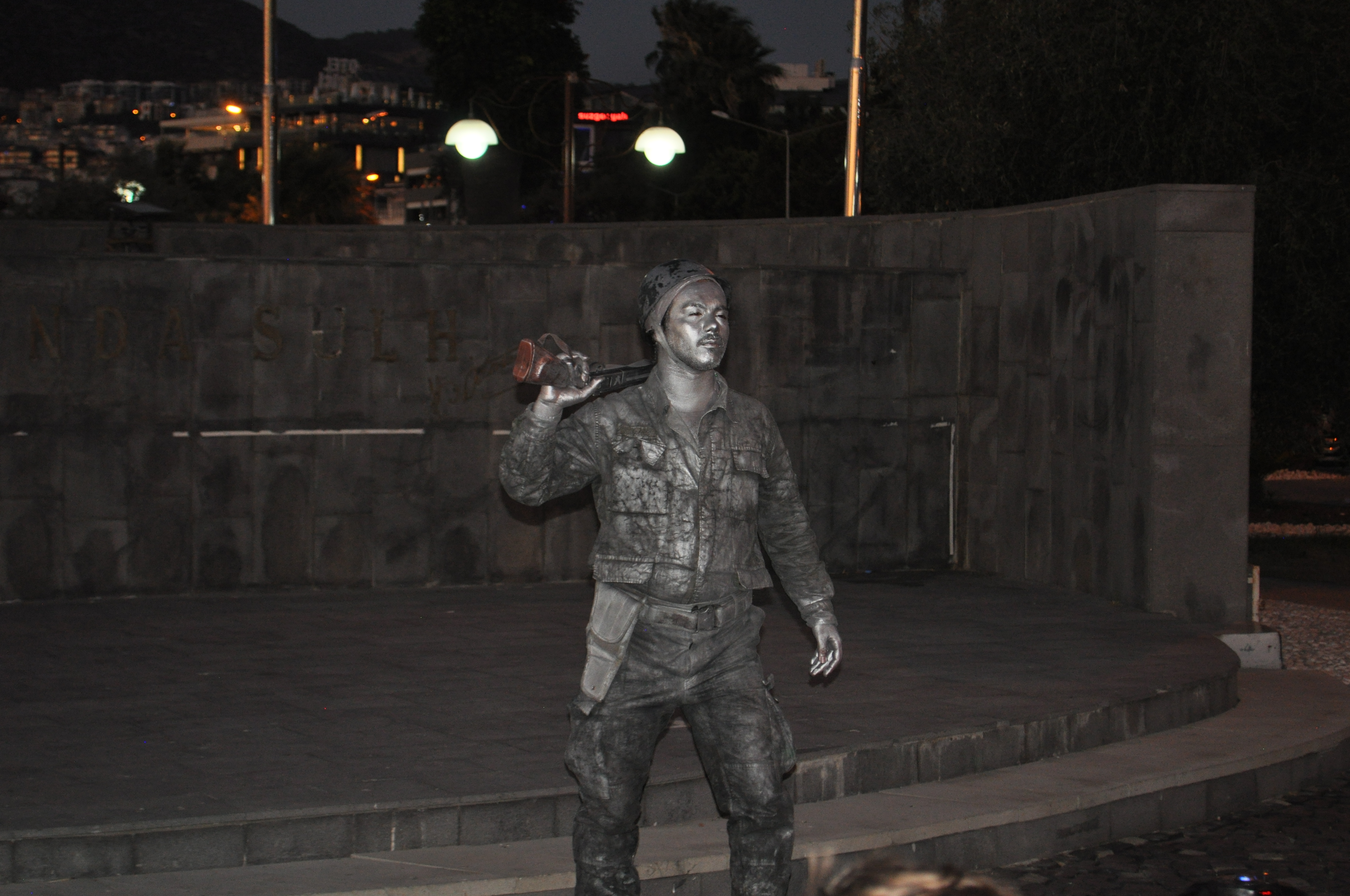 Right in front of the monument stands a man pretending to be Atatürk. At least he looks like Atatürk to me. It seems interesting and attracts attention. Kudos to this man, he did everything professionally. Every day he stands in front and plays a certain choreography and every time a huge crowd of people is formed around him.