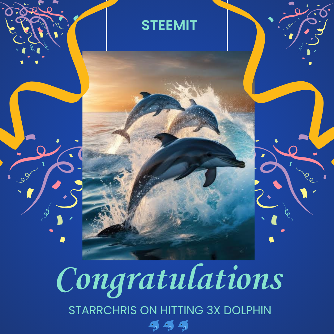 Hello Friends, today I wish to share with you guys my latest achievement on steemit, all thanks to God, I have now reached a triple dolphin ๐ฌ ๐ฌ ๐ฌ status. I want to say I appreciate everyone who supported me through this journey, without your support it would be tough to achieve.