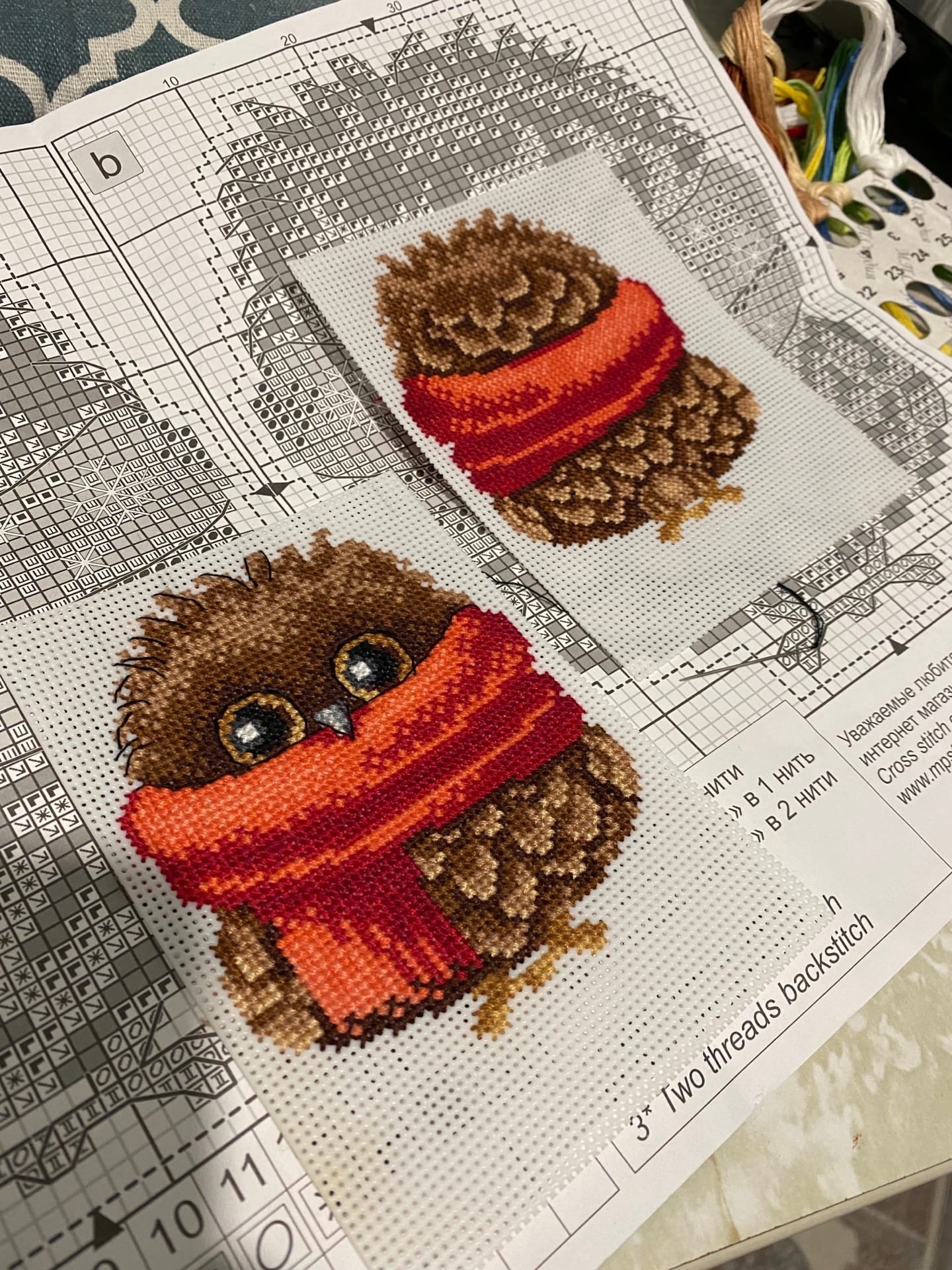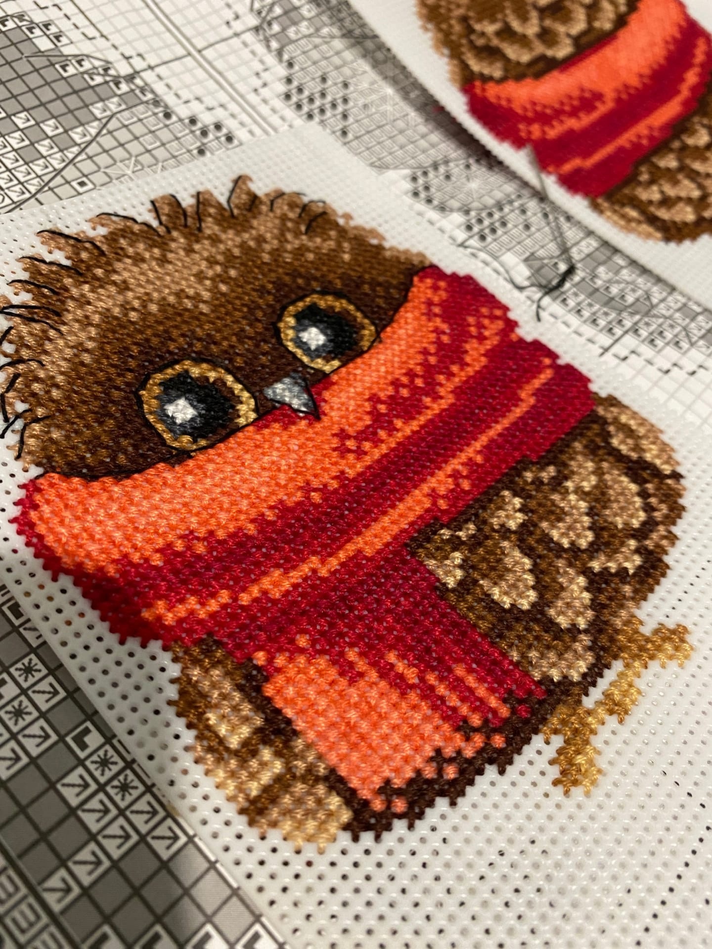 I already embroidered the owl, everything is ready, I wanted to show you the finished result in full, as this is not a drawing, the whole point here is when the result is visible immediately.