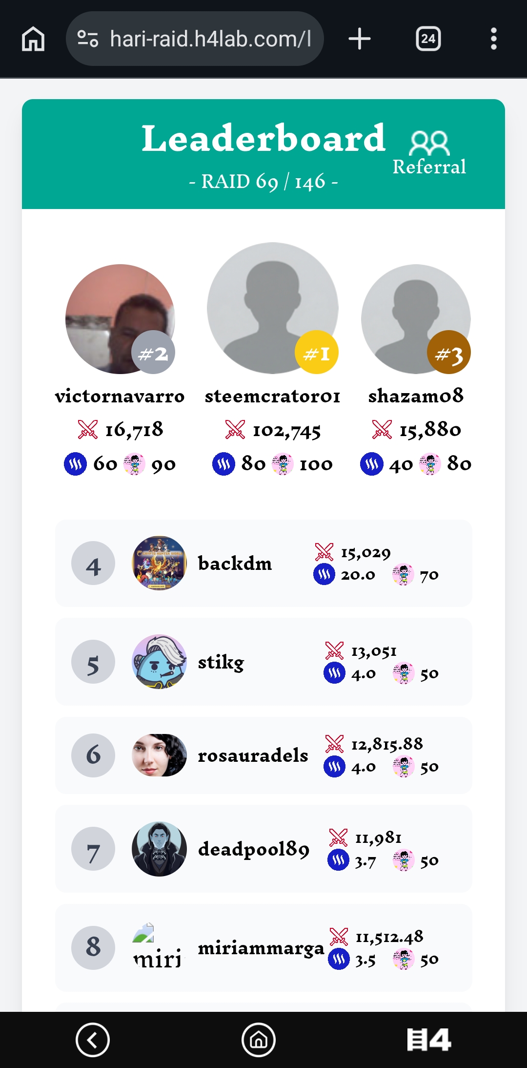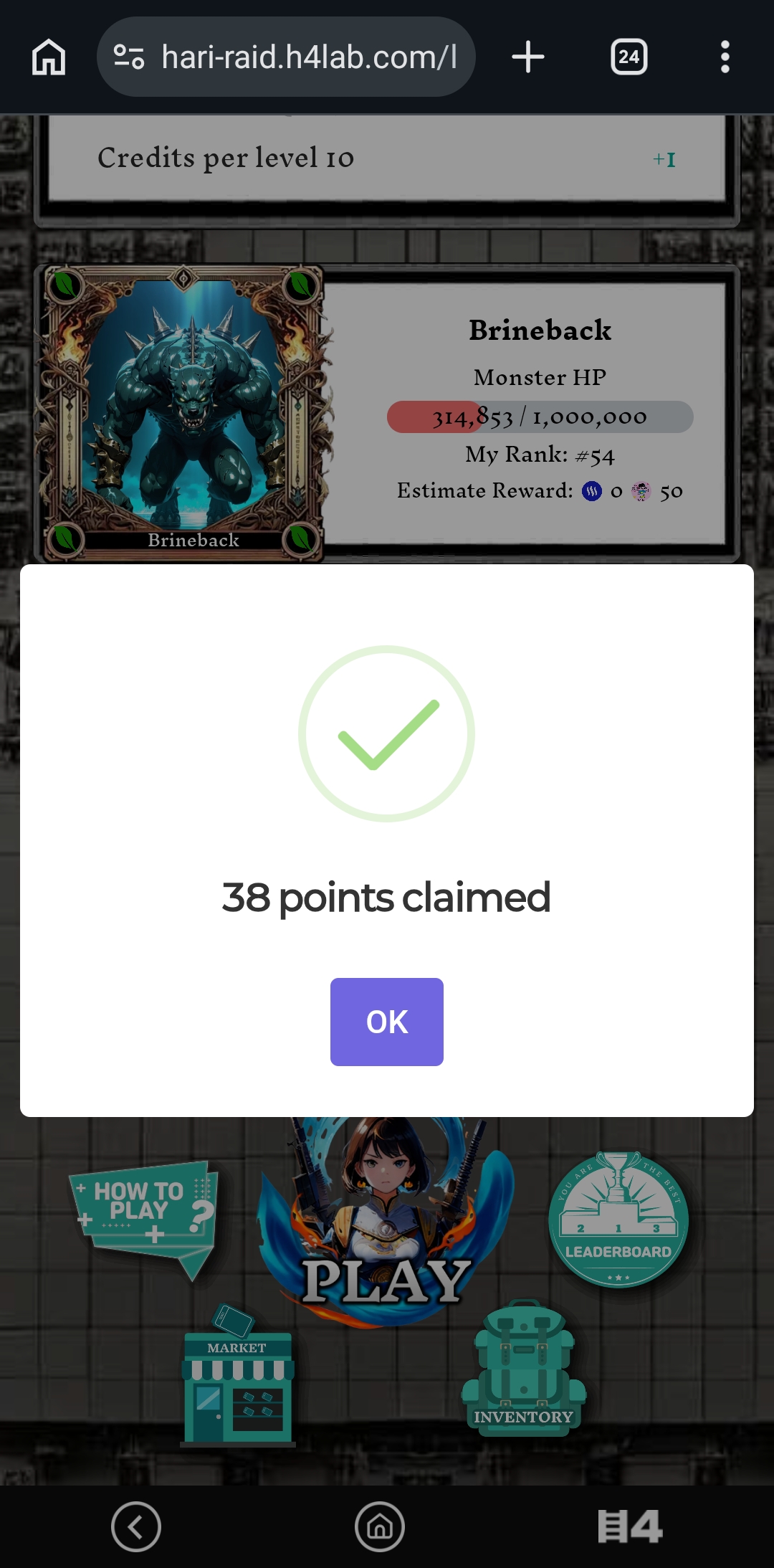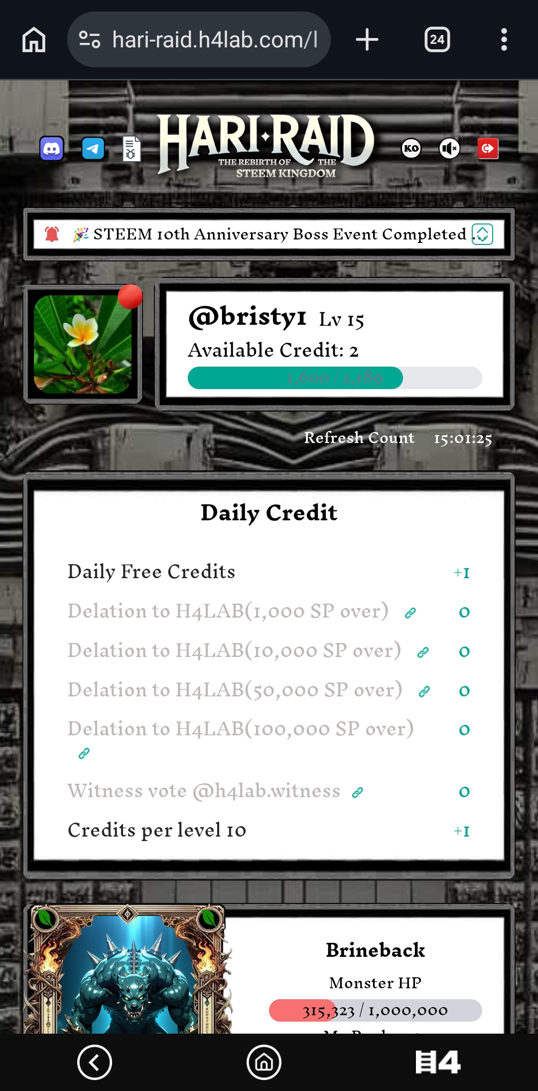 Today I played this hari raid game .This is my 13th day of the game.Today's level was 15 and the credit was 2 . As usual, I claimed 10 points.