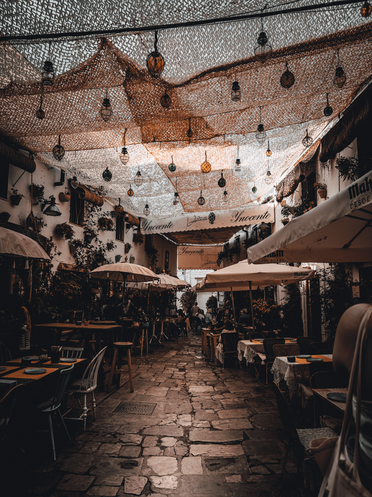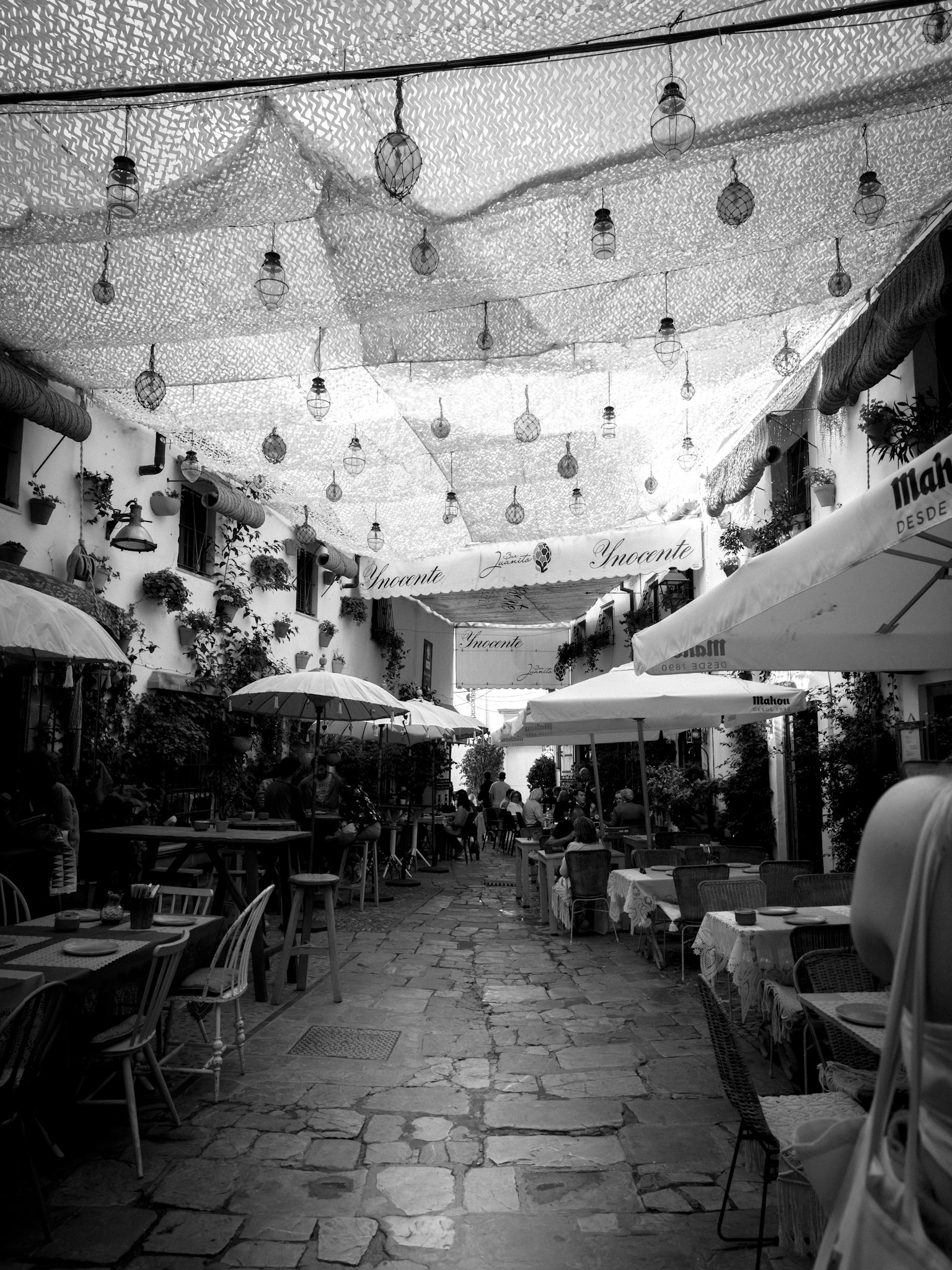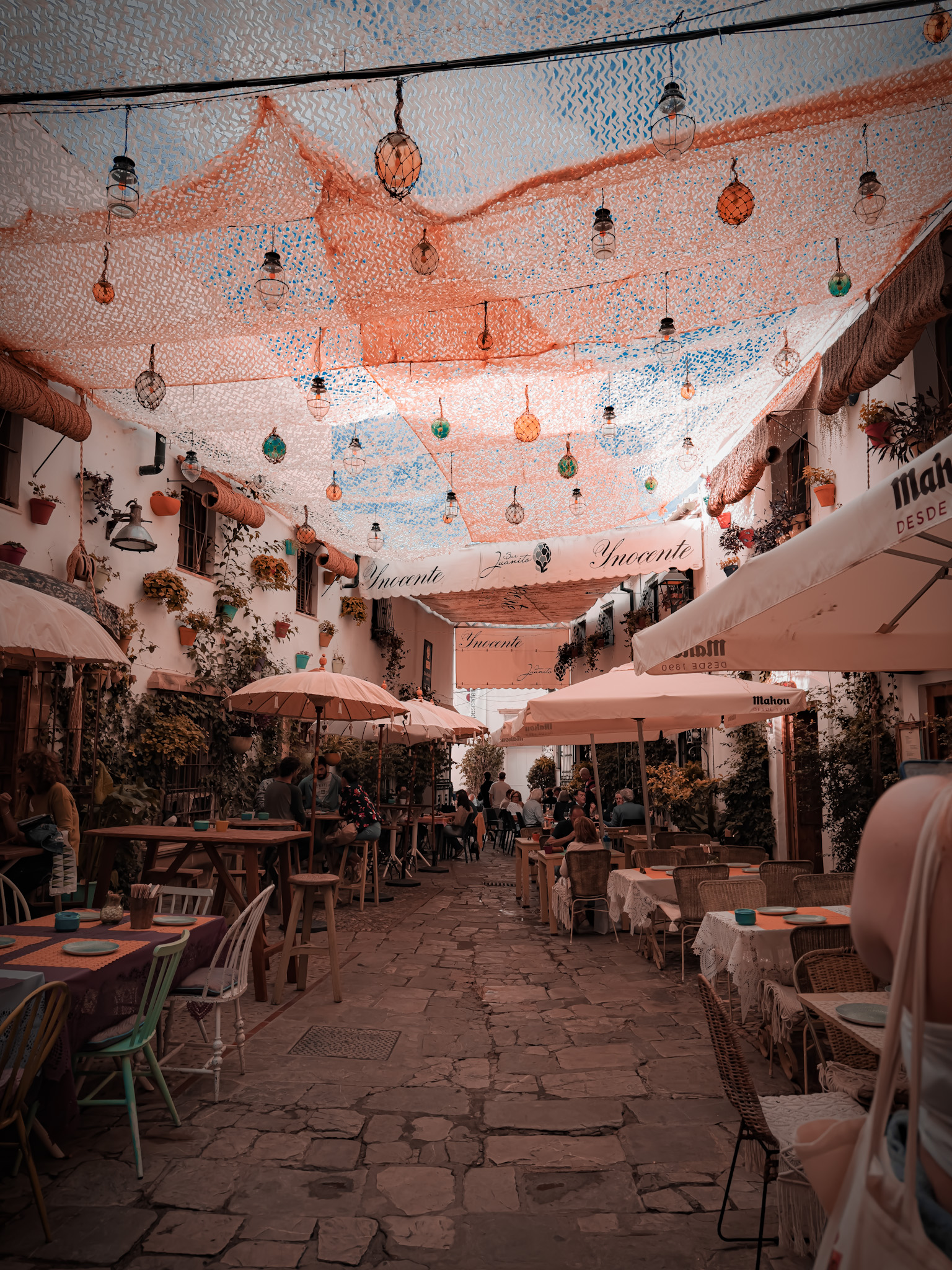 Wenn man von den üblichen Wegen abweicht findet man durchaus das ein oder andere Juwel. So wie in diesem Fall. Wir sind von der Hauptstraße in Jerez abgewichen in der Hoffnung eine Abkürzung nehmen zu können. Dadurch sind wir in einer Nebenstraße gelandet, die wahrscheinlich recht trostlos ausgesehen hätte, da natürliches Licht aufgrund der engen Bauweise kaum eine Chance hat in die Straße hineinzukommen. Ein Restaurant hat die komplette Straße geschmückt, was nicht nur schön aussieht, sondern gerade in den warmen Mittagsstunden in Spanien ein mehr als geeigneter Ort zum abkühlen ist. Die komplette Straße bzw. Gasse ist voll mit Tischen und zunächst dachten wir, dass wir uns garnicht mehr auf einem Weg befinden, sondern in ein Lokal gelaufen sind, aber tatsächlich handelt es sich wirklich um eine Straße.