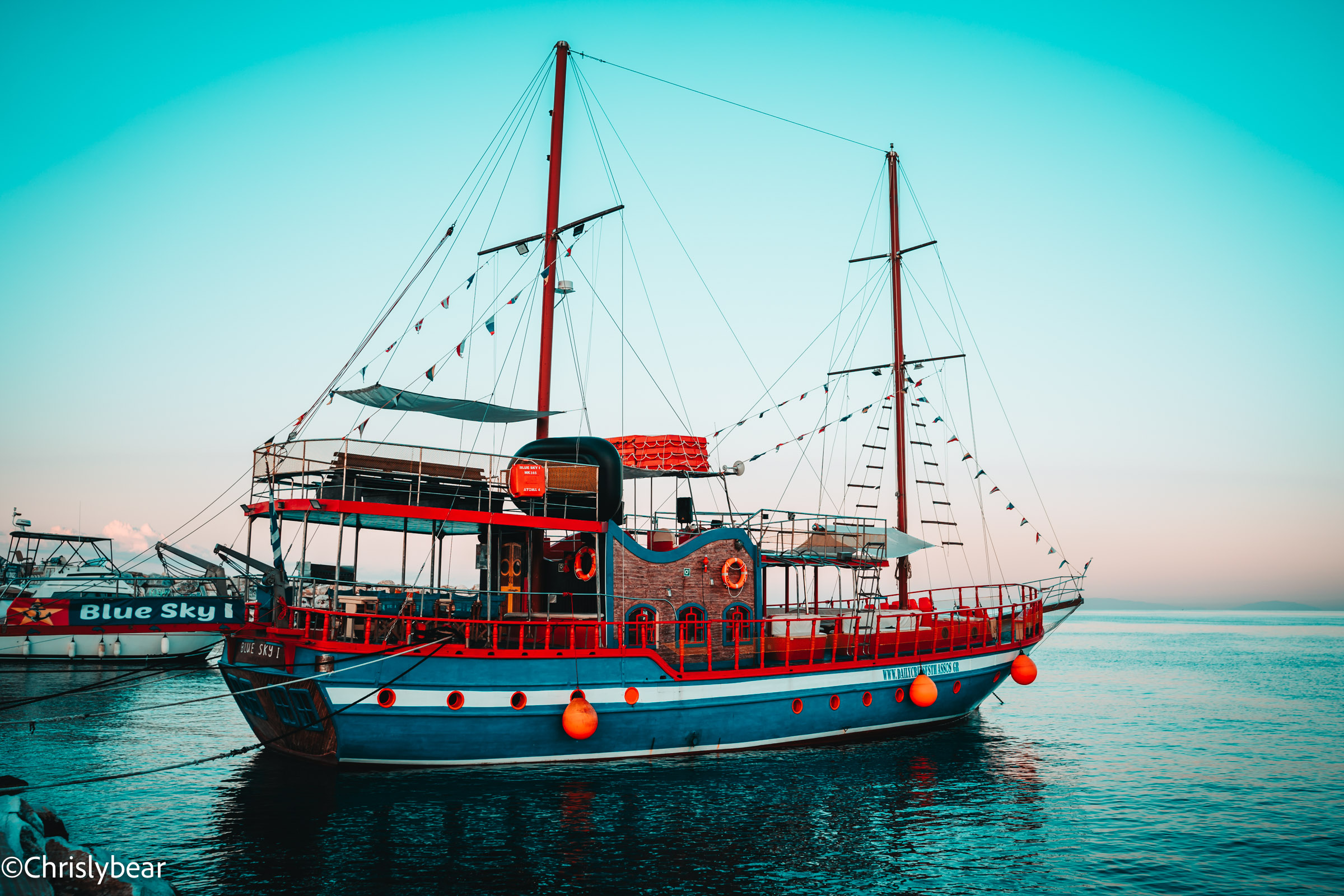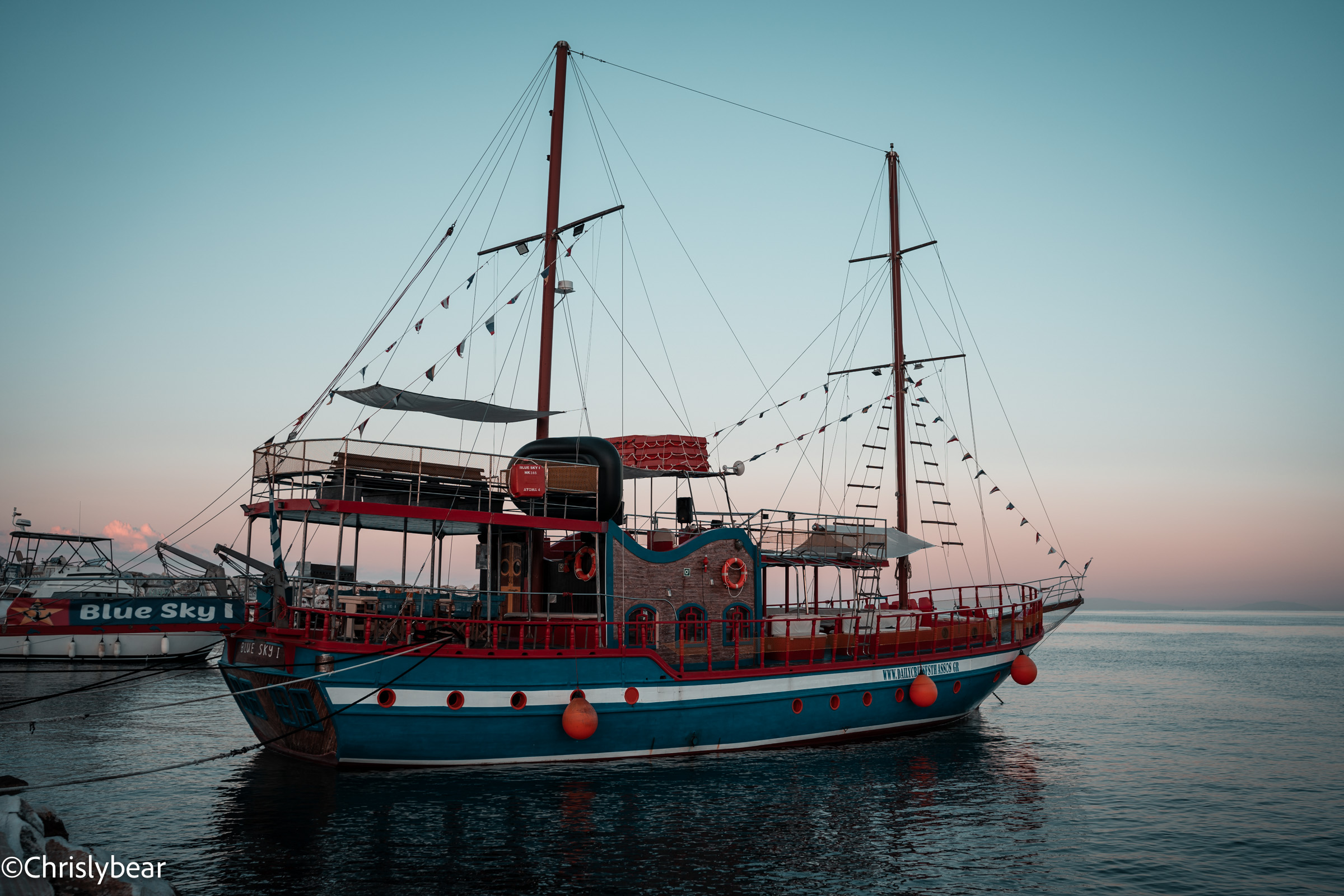 Auf den Bildern sieht man eines der Tourschiffe, die einmal um die komplette Insel fahren. Dies liegt Anker im "Hafen" von Potos. Damit gefahren bin ich selber noch nicht - ich überlegs mir aber mal. Wenn ich es mal früh aus dem Bett schaffe, werde ich mal mit der Drohne drüber fliegen und ein paar Schnappschüsse versuchen.