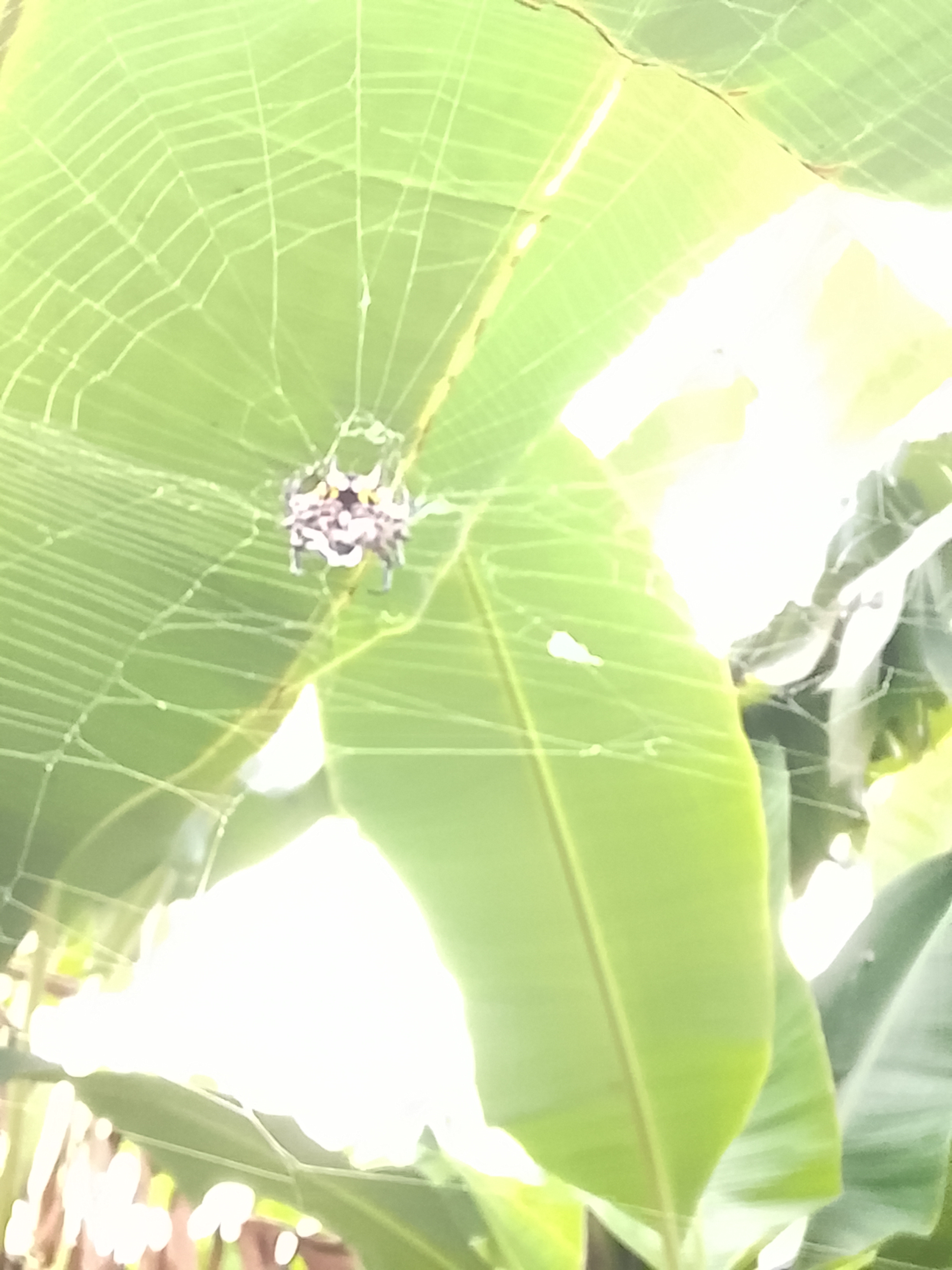 Actually i don't know what to say if the pictures there would be acceptable because the spider was above me and I had to stand on a stool so that I would take a clear picture of it, made some errors and still tried to hold my balance on the stool for real it wasn't easy.....even the sun was scorching my eye, but I had a time to really noticed this creature I took common.