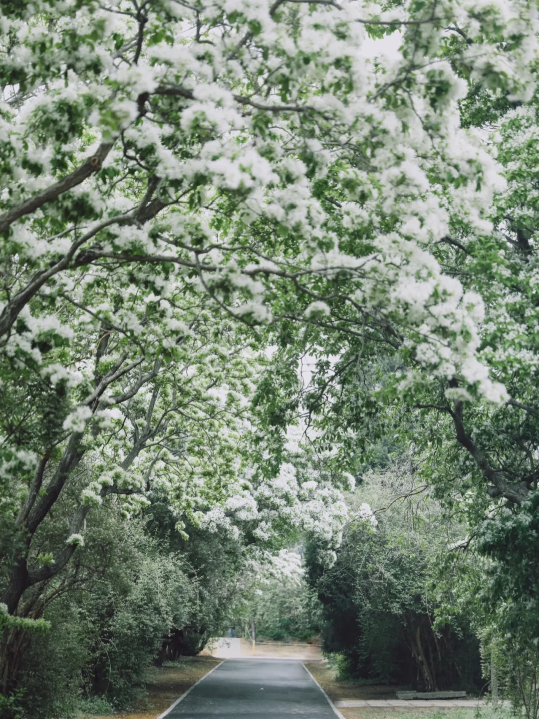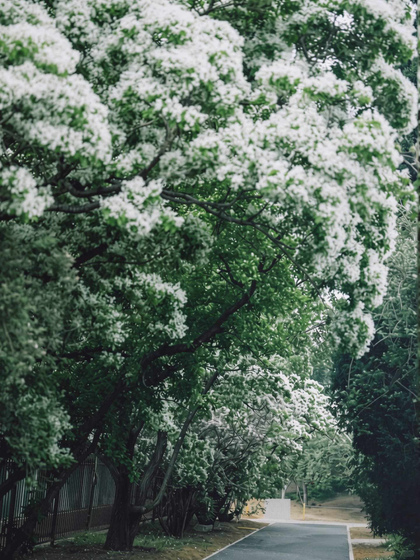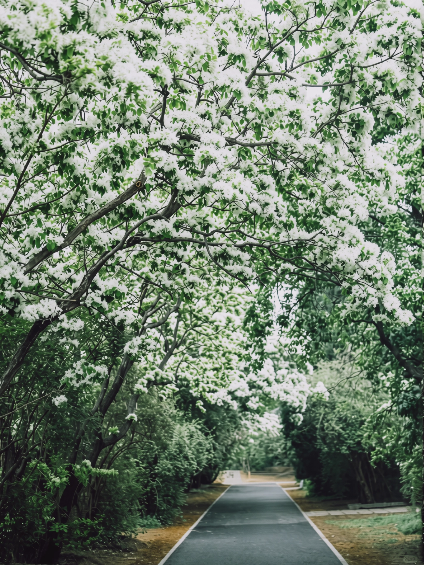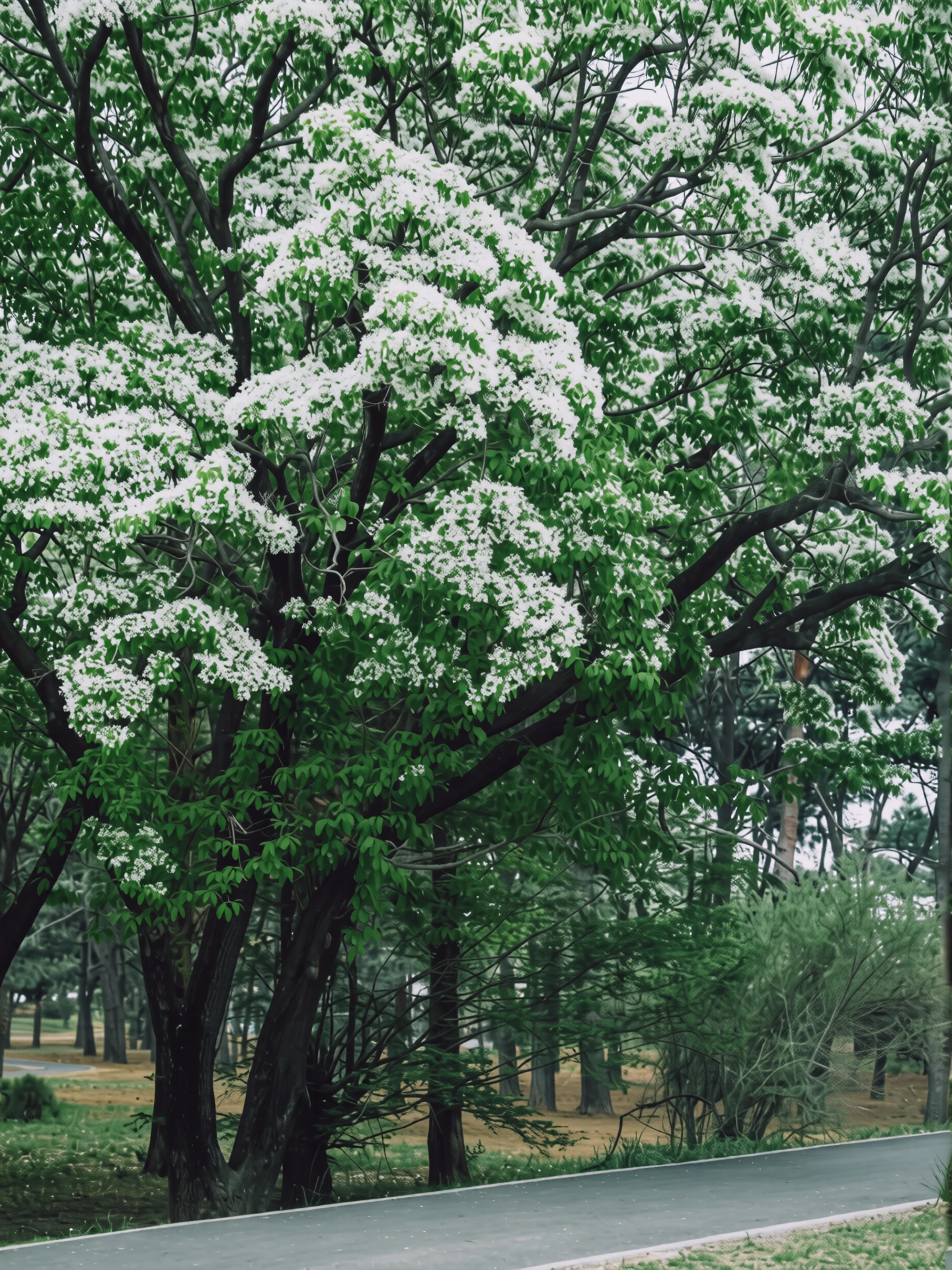 In spring, the National Botanical Garden in Beijing is quietly illuminated by blooming fringe trees. Their delicate white blossoms fall like soft snow, swaying gently in the breeze, as if time itself has grown tender. Sunlight filters through the flowers, scattering dappled light upon the ground, while a faint fragrance lingers in the air. Visitors pause beneath the trees, gazing up at this serene beauty. In that moment, spring does not arrive with noise, but whispers softly through the blossoms—carrying warmth and life.