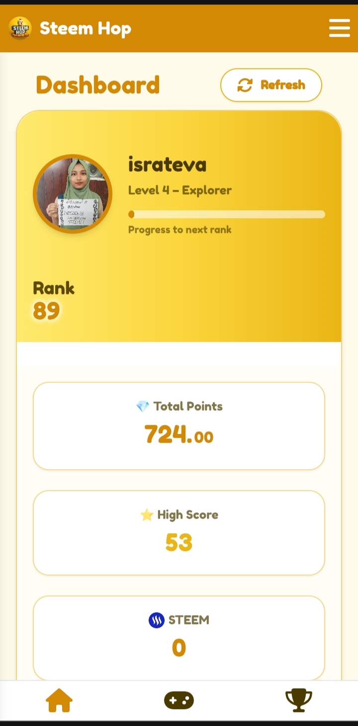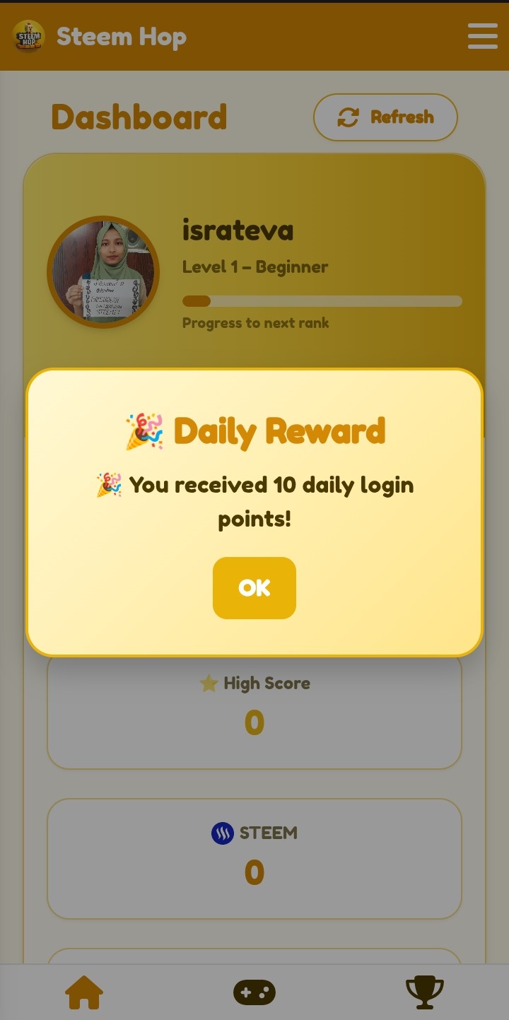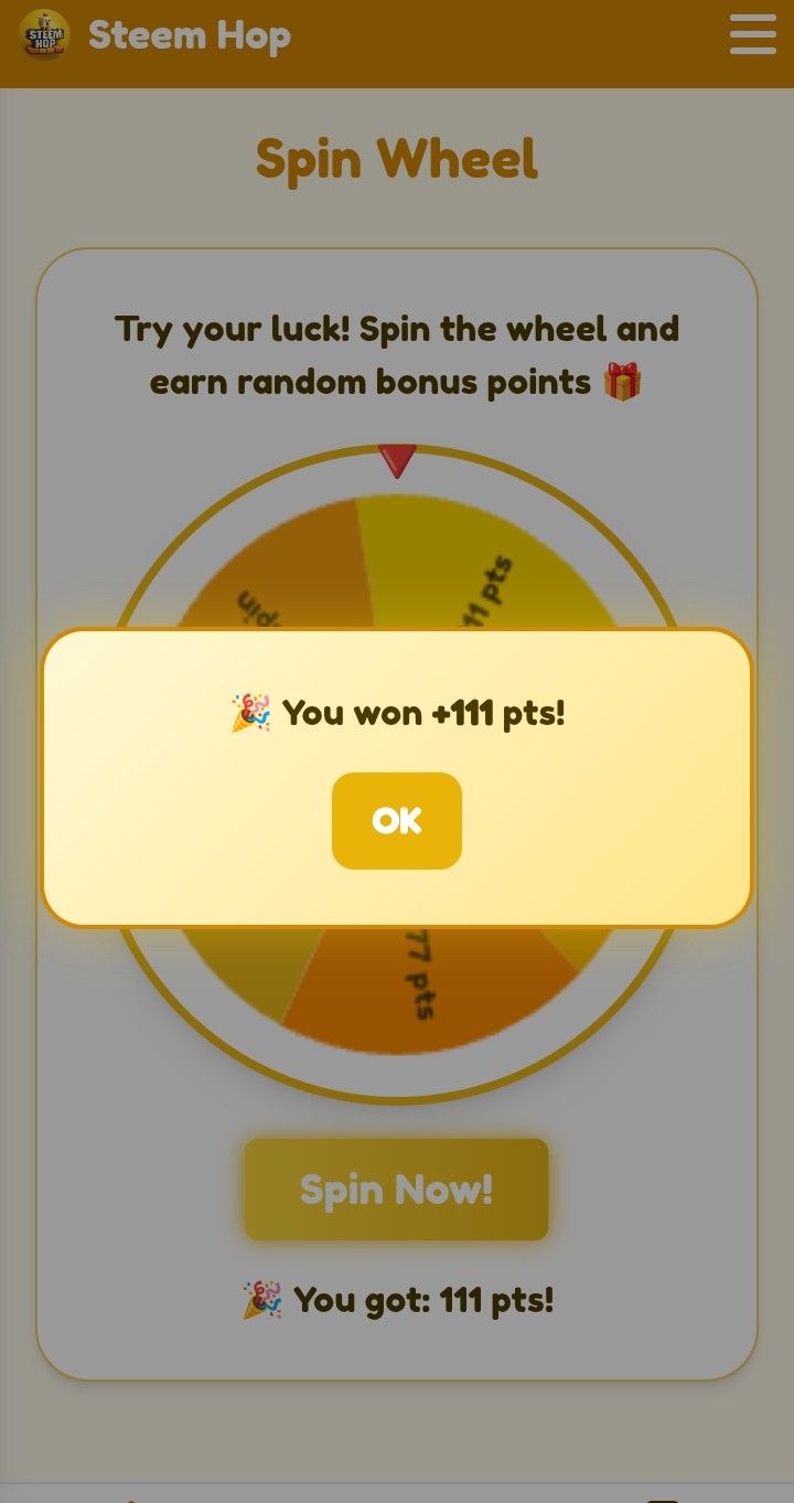 AssalamuAlaikum Everyone I am Israt Jahan Eva. I will tell you about a game of SteemHop today. I learned about this game from my uncle. He told me about this game. Then I downloaded this game on my phone after logging in to the game I claimed my daily reward and spine for one time that gives me +111pts!
