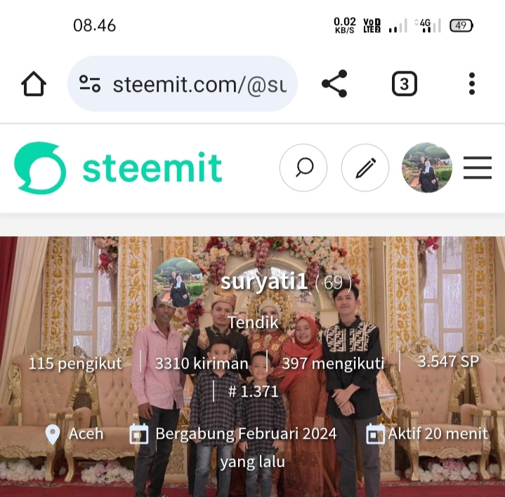 Ini merupakan profil akun steemitku dan saya sudah bergabung satu tahun yang lalu, awal perjalanan saya dalam menulis di platform steemit ini sangatlah berjalan mulus sehingga saya pun sangat bersemangat, namun hampir menjelang satu tahun kok rasanya saya berjalan tidak sampai-sampai ketujuan seperti berjalan di tempat saja dan itu sangat membosankan bagi saya.