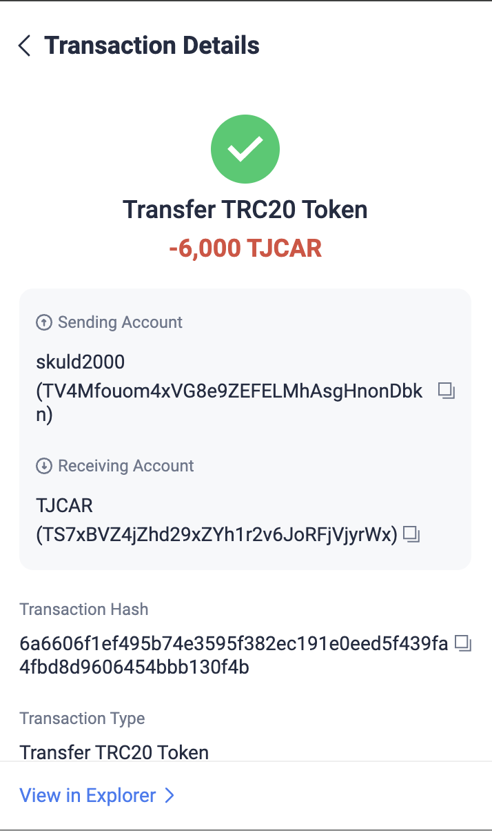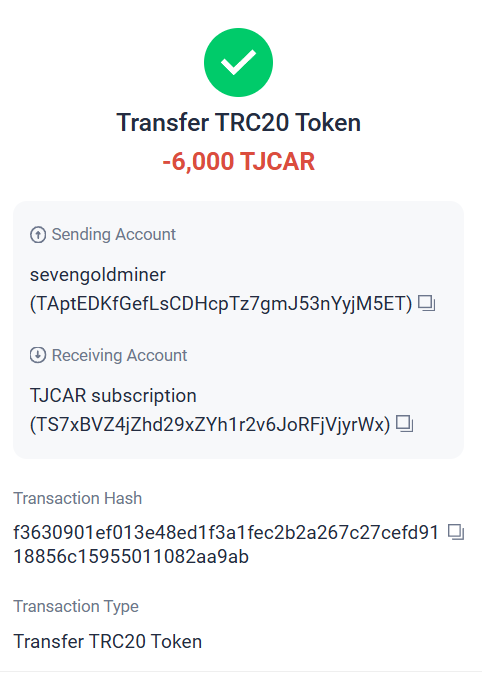 TJCAR 컨트랙트 주소 : TNHRQryXDyYSyqFHq8UqCYFSc6dzp81Dxa