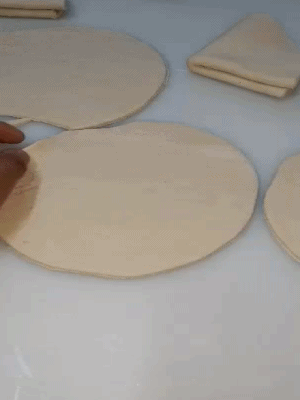 As there is no yeast in it, you can make the (dobladitas) without letting it rest, spread the dough on a counter, you can use a circular cutter or help yourself to a plate to make dough circles.