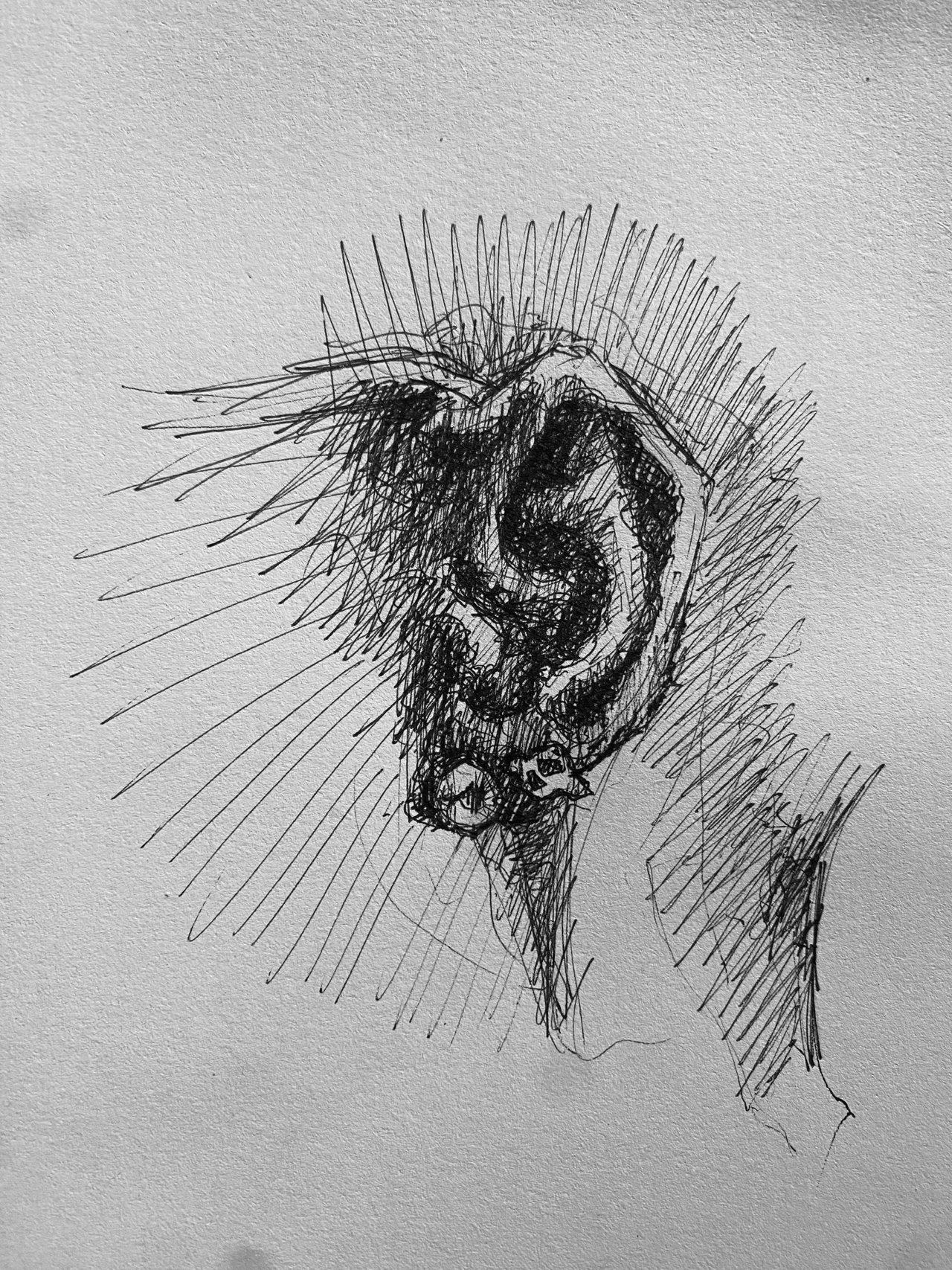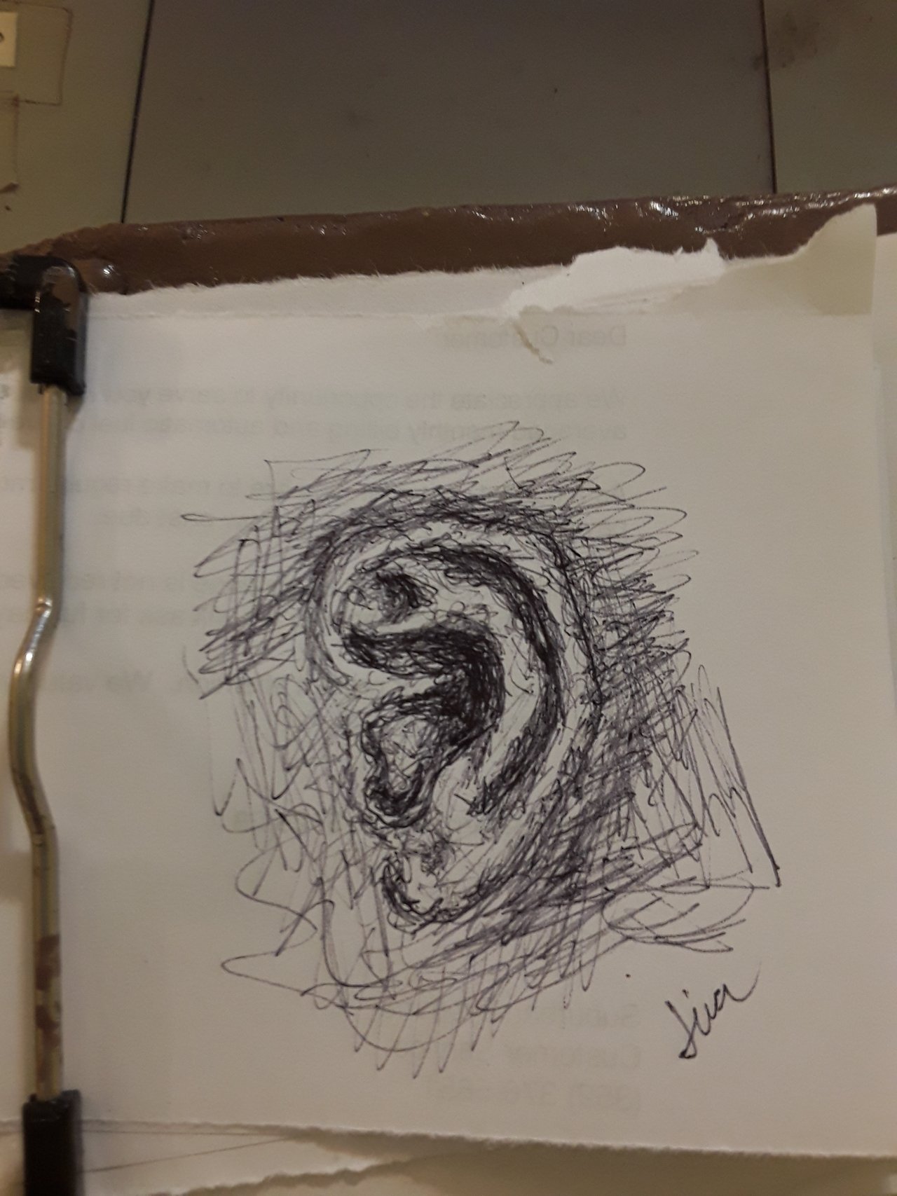 Henry has been known to be a fast growing artist around here and he displays lots of intentionality in his drawings often time. Him deciding to draw/study the ear of an Anime character is simply a beautiful and intentional move and he also decided to embellish the ear which made it appear even more attractive. Nice job Henry.
