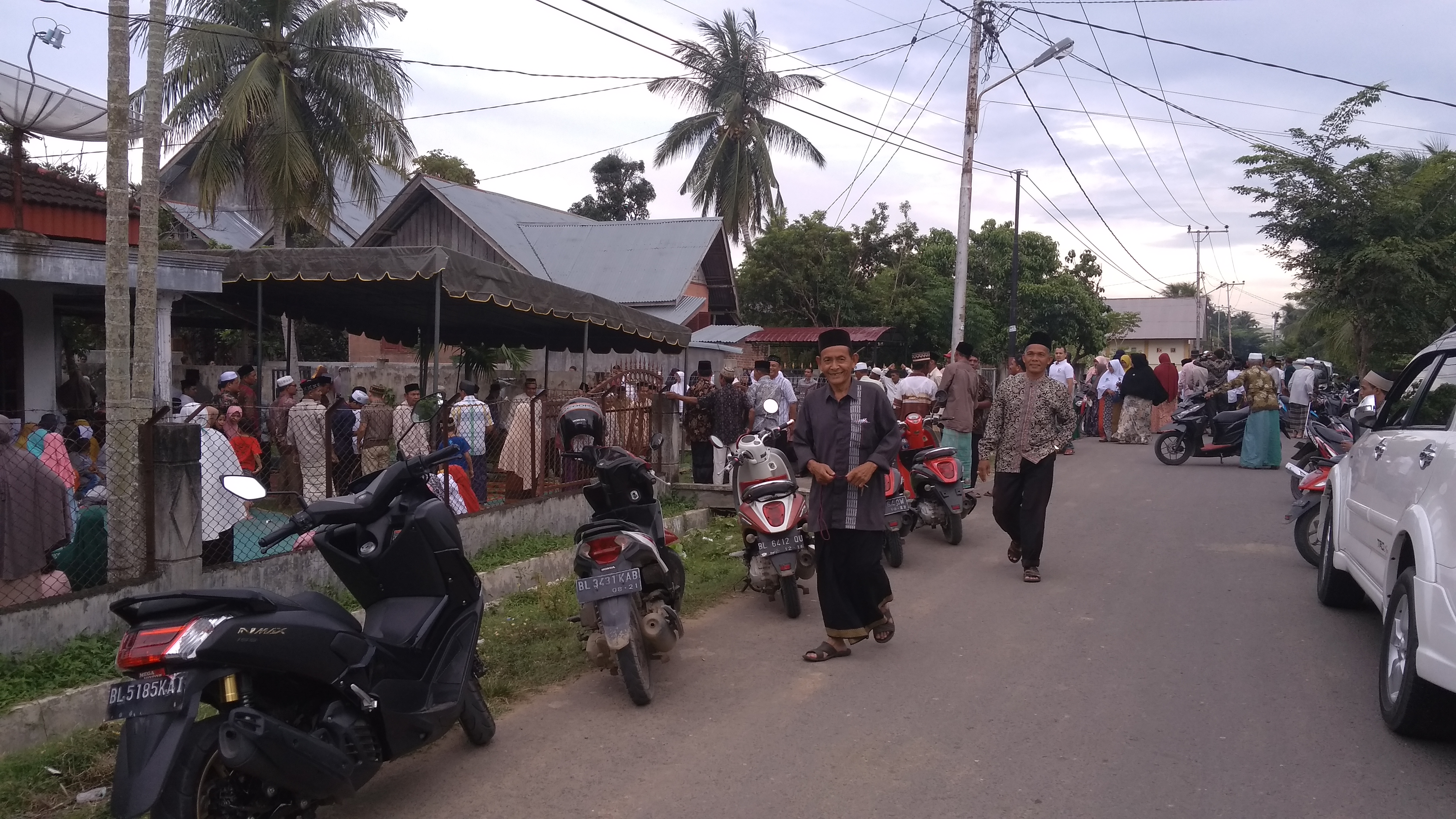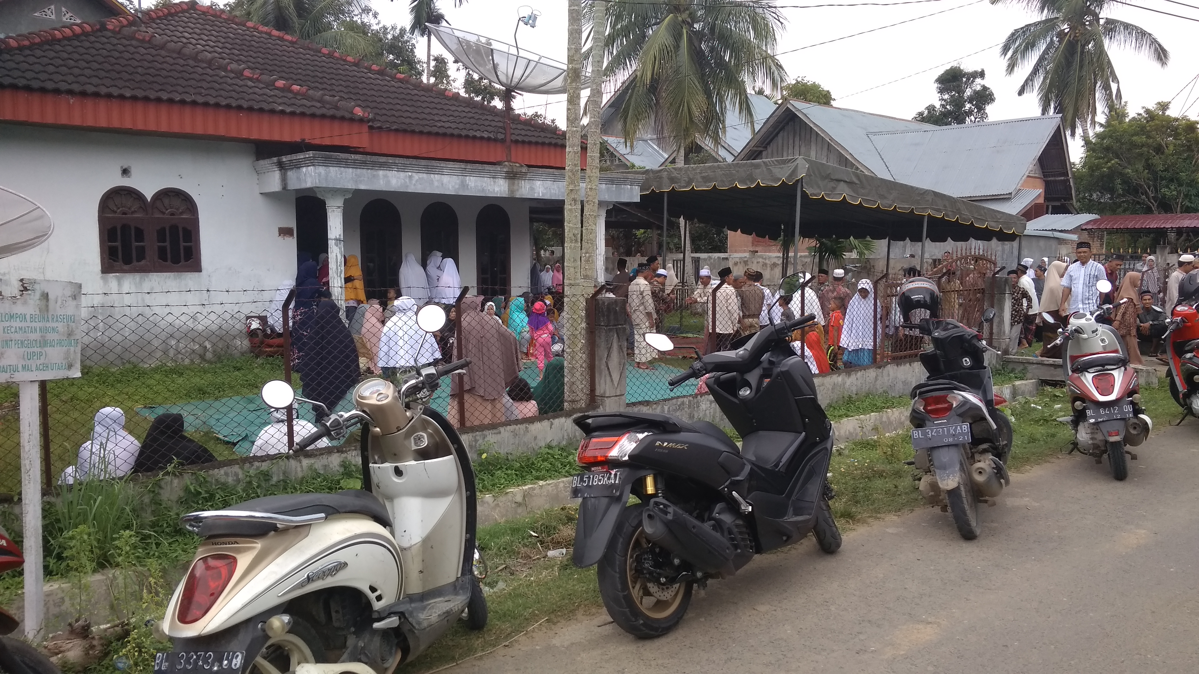 Pengunjung terus berdatangan, setelah beberapa menit menunggu jenazah dikeluarkan dari rumah dan diletakkan di halaman rumah. Semua bersiap-siap membuat baris untuk shalat jenazah. Tidak menunggu lama para jamaah berbaris dengan rapi. Jenazah dishalatkan dengan di pimpin oleh raja umum.