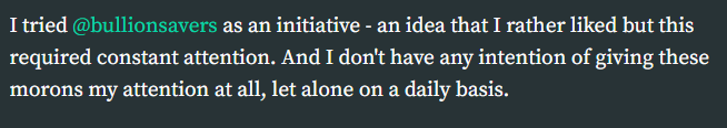 I tried @bullionsavers as an initiative - an idea that I rather liked but this required constant attention. And I don't have any intention of giving these morons my attention at all, let alone on a daily basis.