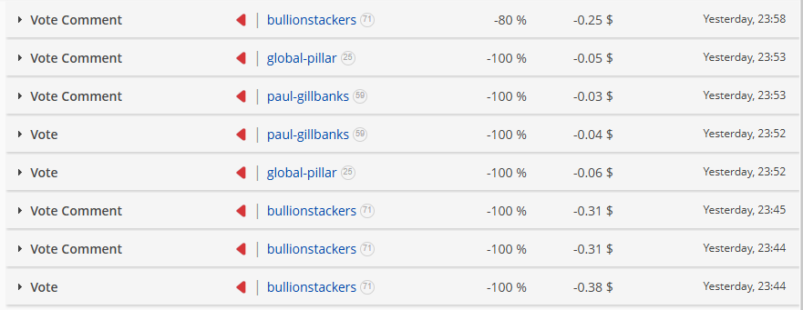 I've not included every victim of the downvotes - the main accounts being downvoted were either created for that purpose, are being compensated elsewhere (i.e. have asked not to receive additional support), or are being deliberately antagonistic (which whilst I find extremely amusing, would struggle to justify compensating with anything other than my own votes).