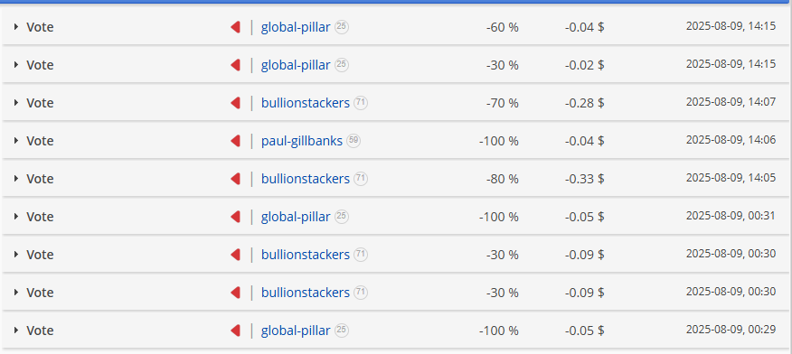 Please take the time to read @remlaps' latest update and also look at @thoth.test to see the output of his efforts. I'm conscious that the downvotes are harming the beneficiaries, rather than the posting account.