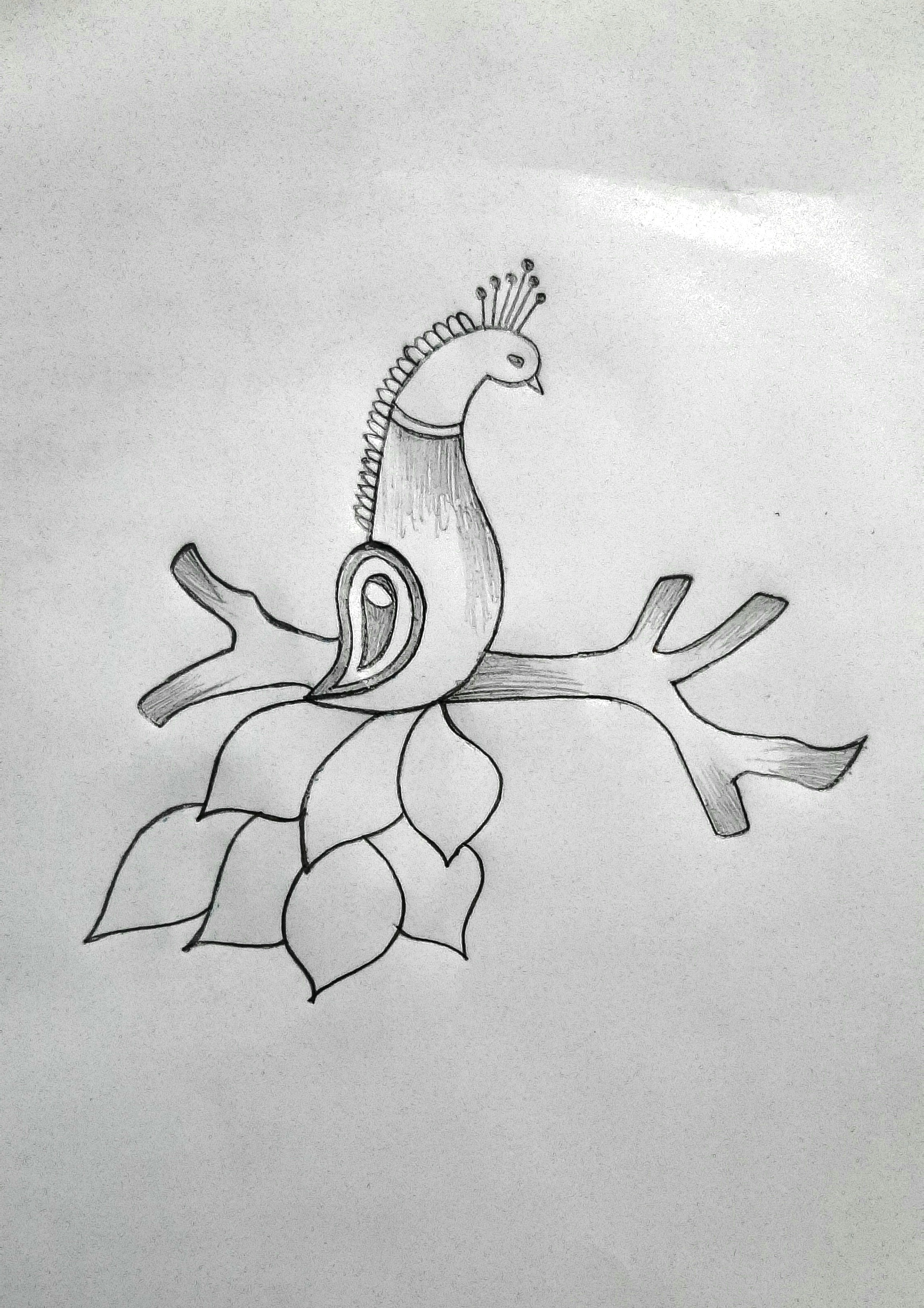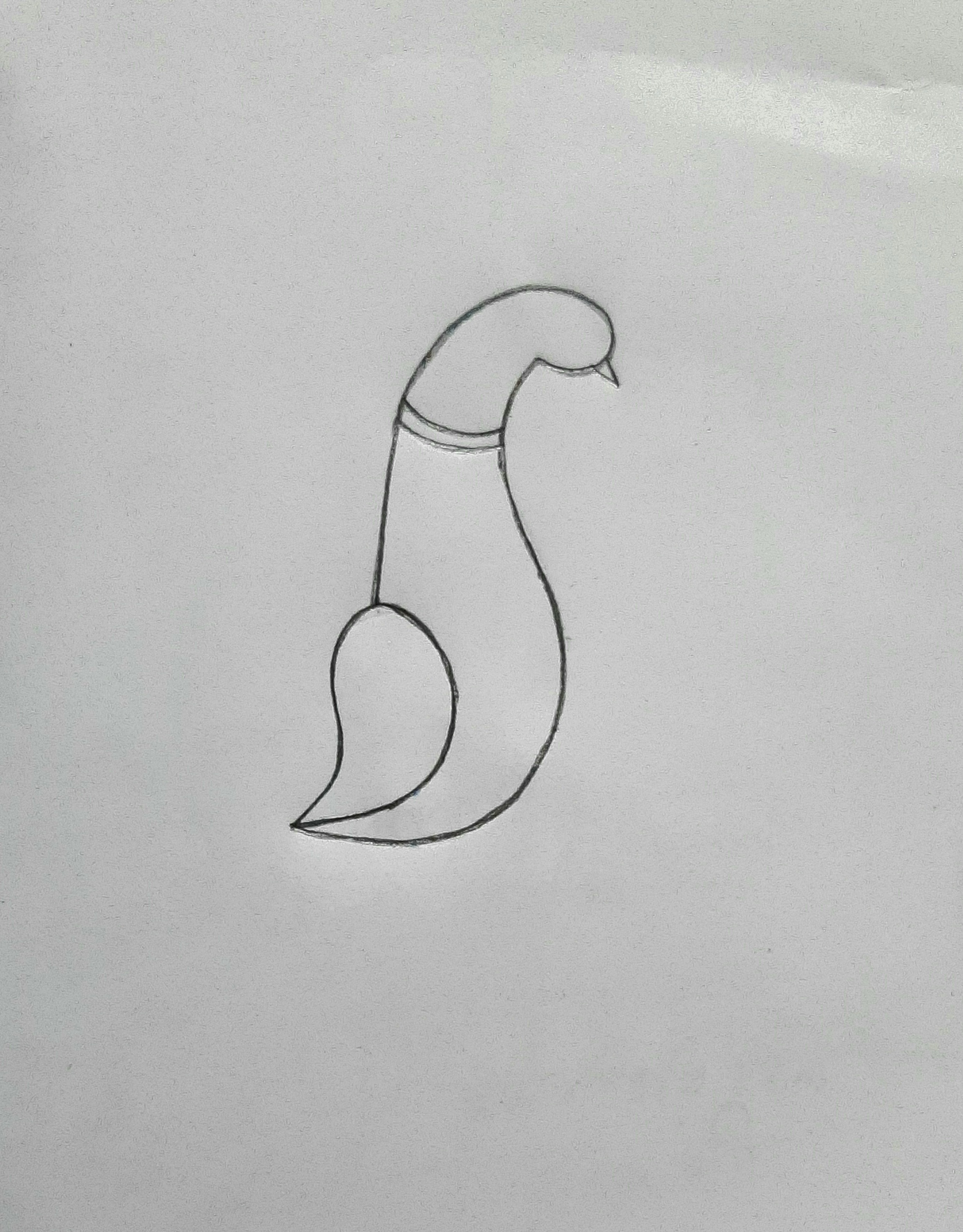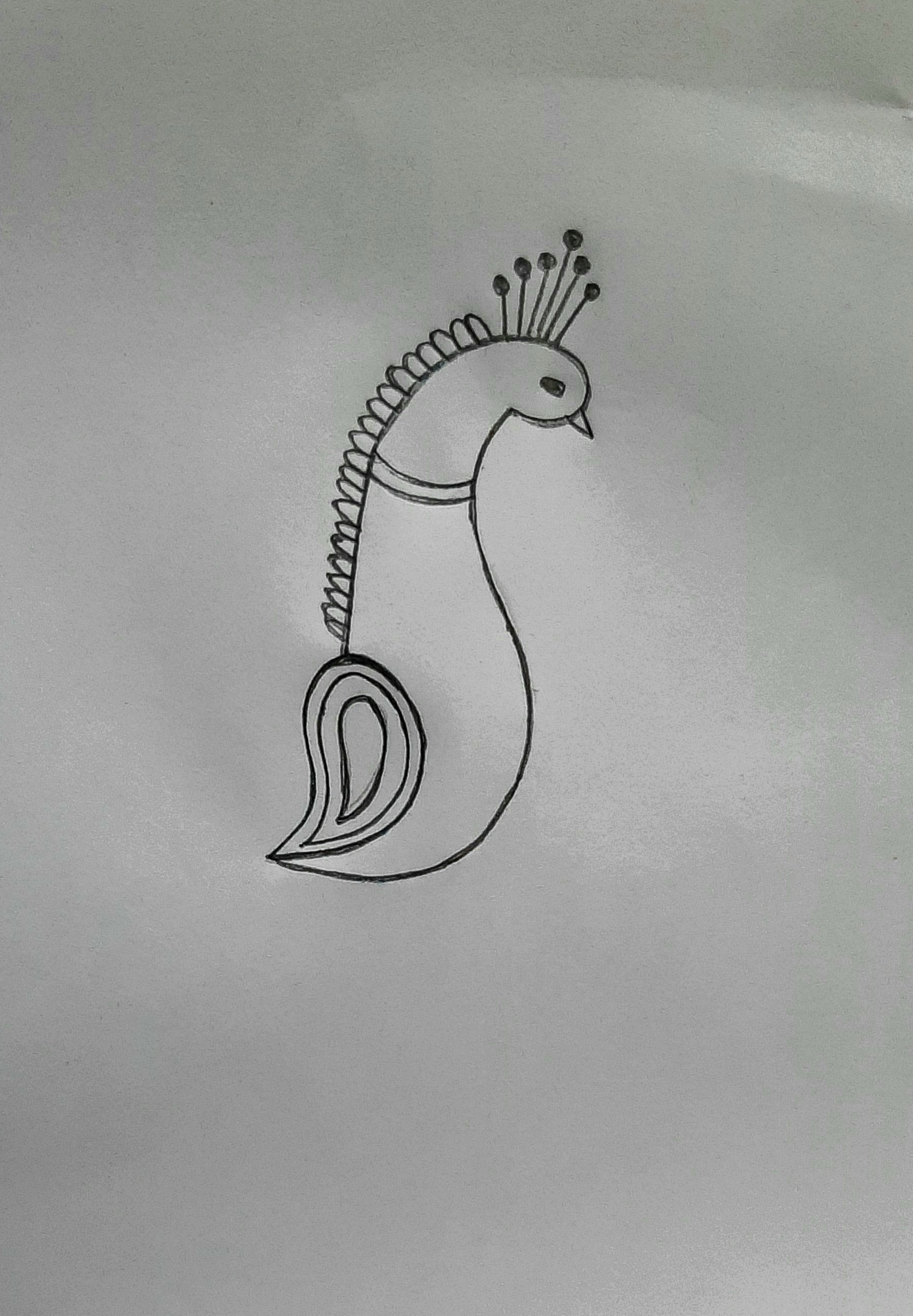 প্রথমে পেন্সিল দিয়ে ময়ূরের মাথাসহ দেহের অবয়বটি আঁকিয়ে নিতে হবে।