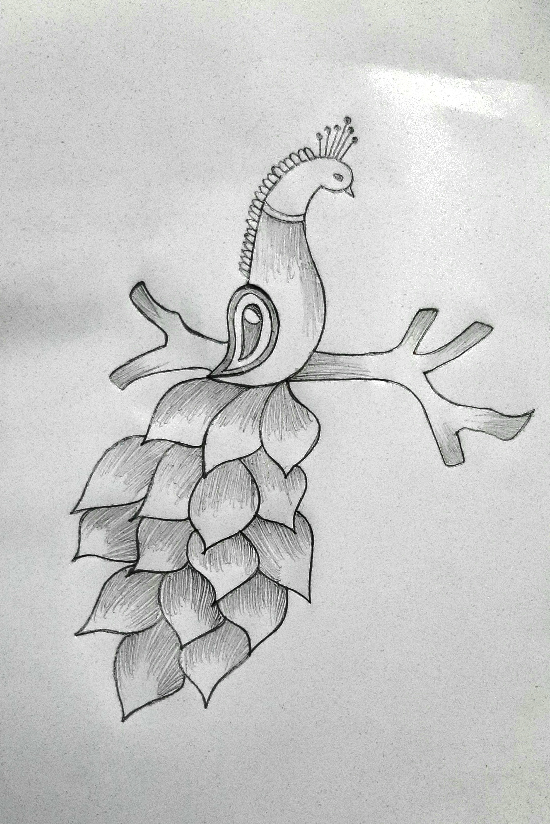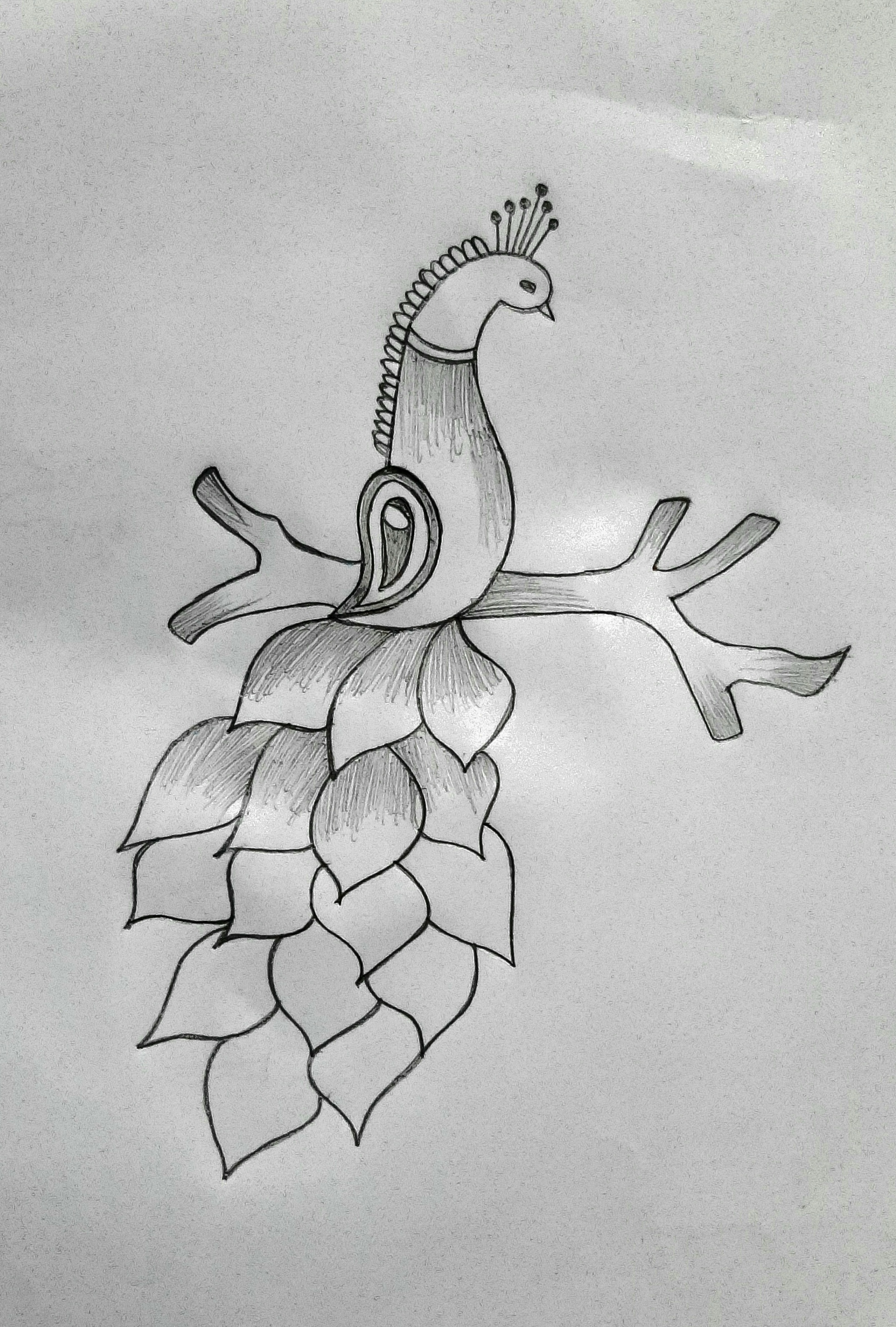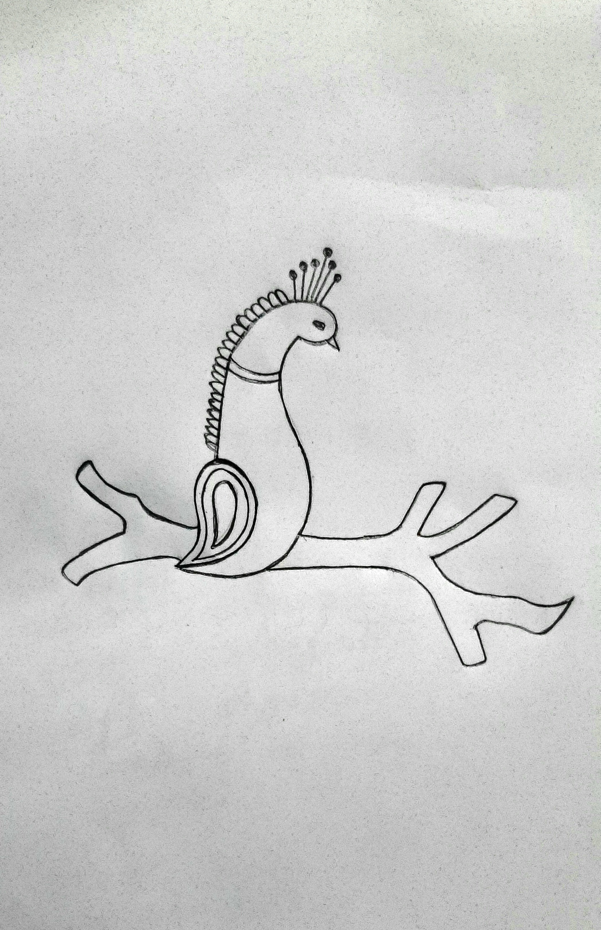 প্রথমে পেন্সিল দিয়ে ময়ূরের মাথাসহ দেহের অবয়বটি আঁকিয়ে নিতে হবে।