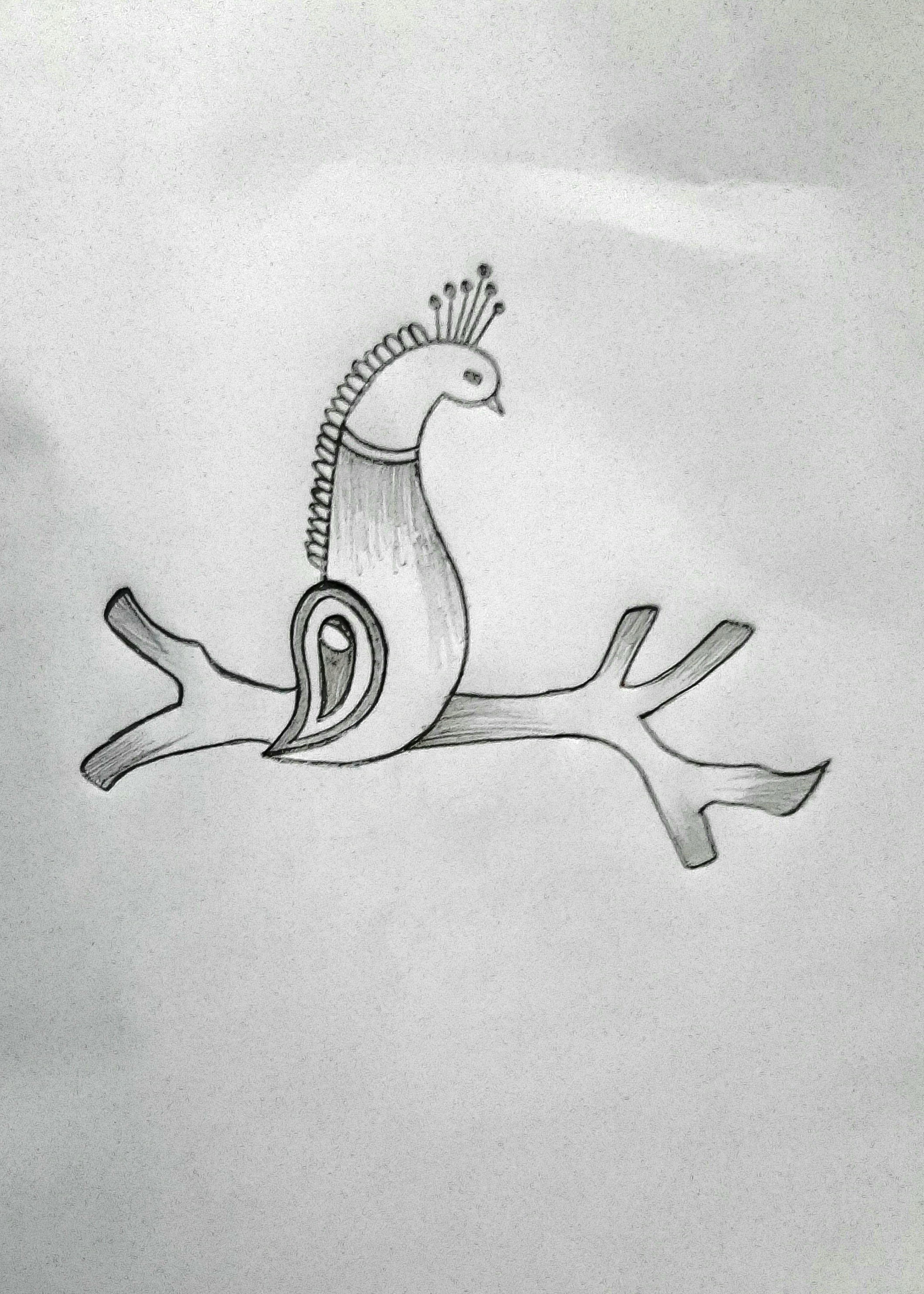 এবার ডাল এবং ময়ূরের দেহে উপরের ছবির মতো পেন্সিল দিয়ে কালার করে নিতে হবে।