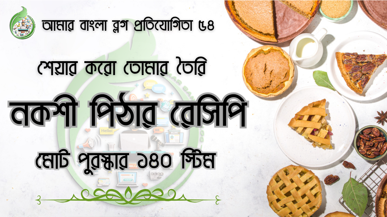 বর্তমানে রমজান মাস চলছে এবং এই রমজান মাসকে ঘিরে বিভিন্ন ধরনের নতুন নতুন রেসিপি আমরা দেখতে পাই। ঠিক তেমনিভাবে ইফতারের আয়োজন যখন আমরা করি তখন কিন্তু সেখানে বিভিন্ন ধরনের নকশী পিঠার রেসিপি ও থাকে। আমরা বাঙালি একটু ভাজাপোড়া একটু বেশি পছন্দ করে থাকি, সেই পছন্দের জিনিস যদি নকশী পিঠার তাহলে তো আর কোন কথাই নেই। কি, একটু কি আইডিয়া করতে পারছেন এবারের প্রতিযোগিতা টপিক কি? আমাদের এবারের প্রতিযোগিতার টপিক হচ্ছে “শেয়ার করো তোমার তৈরি নকশী পিঠার রেসিপি”। আমরা সকলেই জানি আমার বাংলা ব্লগের সদস্যরা সব সময়ই আমাদের দেয়া সব ধরনের চ্যালেঞ্জই স্বতঃস্ফূর্ত ভাবে গ্রহণ করেছেন, পাশাপাশি তাদের সেরাটাই আমাদেরকে উপহার দিয়ে সকলকে তাক লাগিয়ে দিয়েছেন।এবারও আশা করছি তার কোন ব্যতিক্রম হবে না।