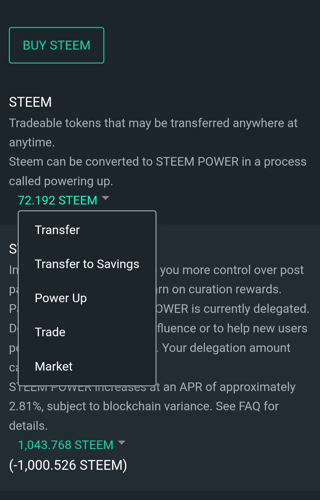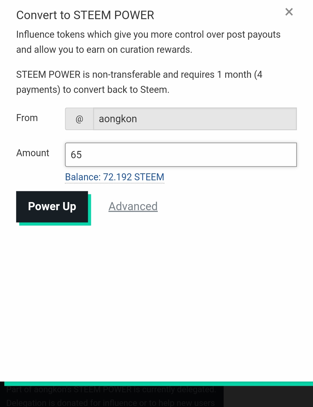 পাওয়ার আপ করার পূর্বে আমার ওয়ালেট ৭২.১৯২, লিকুইড স্টিম ছিল এবং ১০৪৩.৭৬৮ স্টিম পাওয়ার ছিল। আমি এখন ৬৫ স্টিম পাওয়ার আপ করব।
