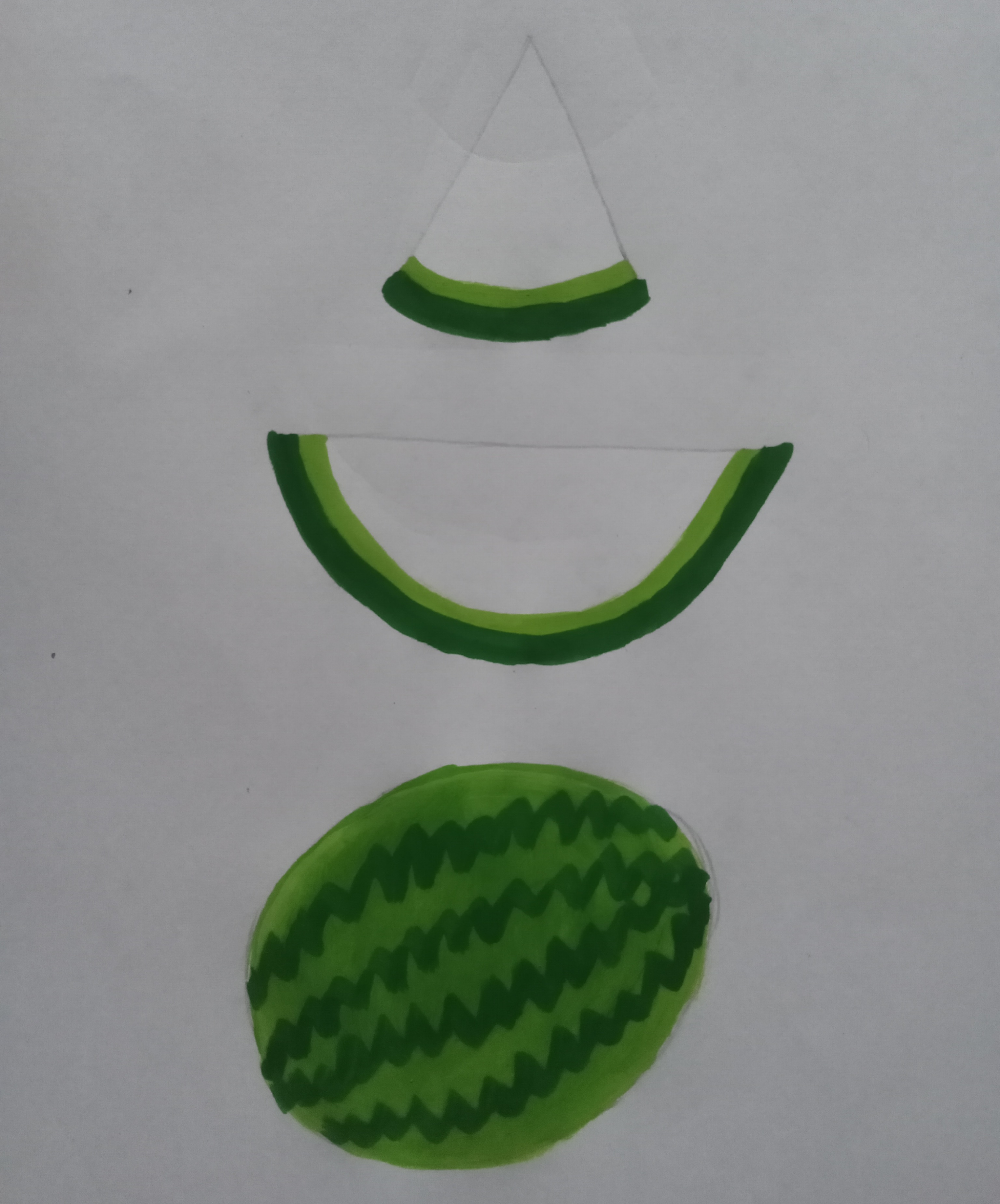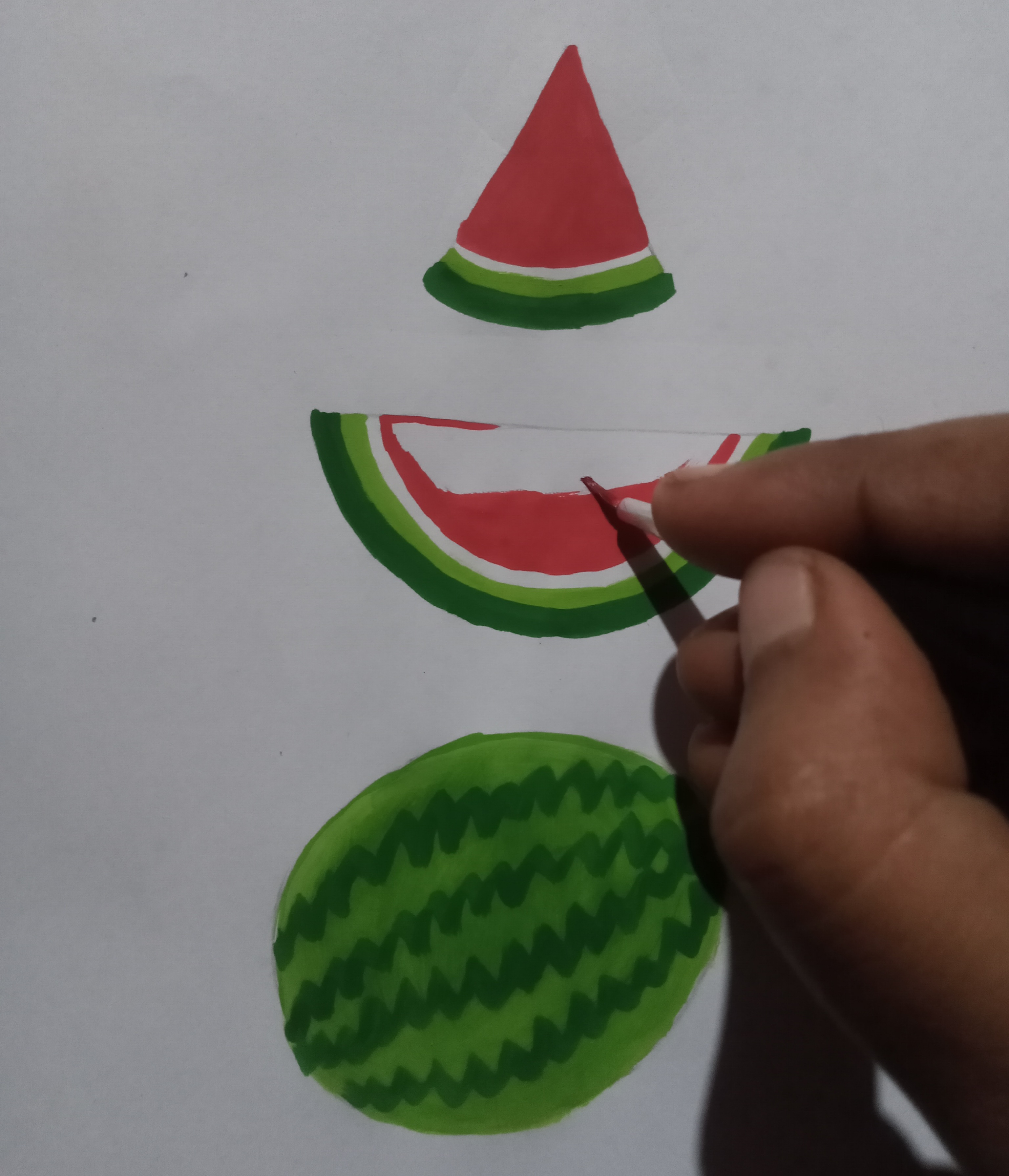 তারপর বড় তরমুজ আর তরমুজের কিছুর অংশের মধ্যে হালকা সবুজ রং দিয়ে সুন্দরভাবে রং করে নিলাম।