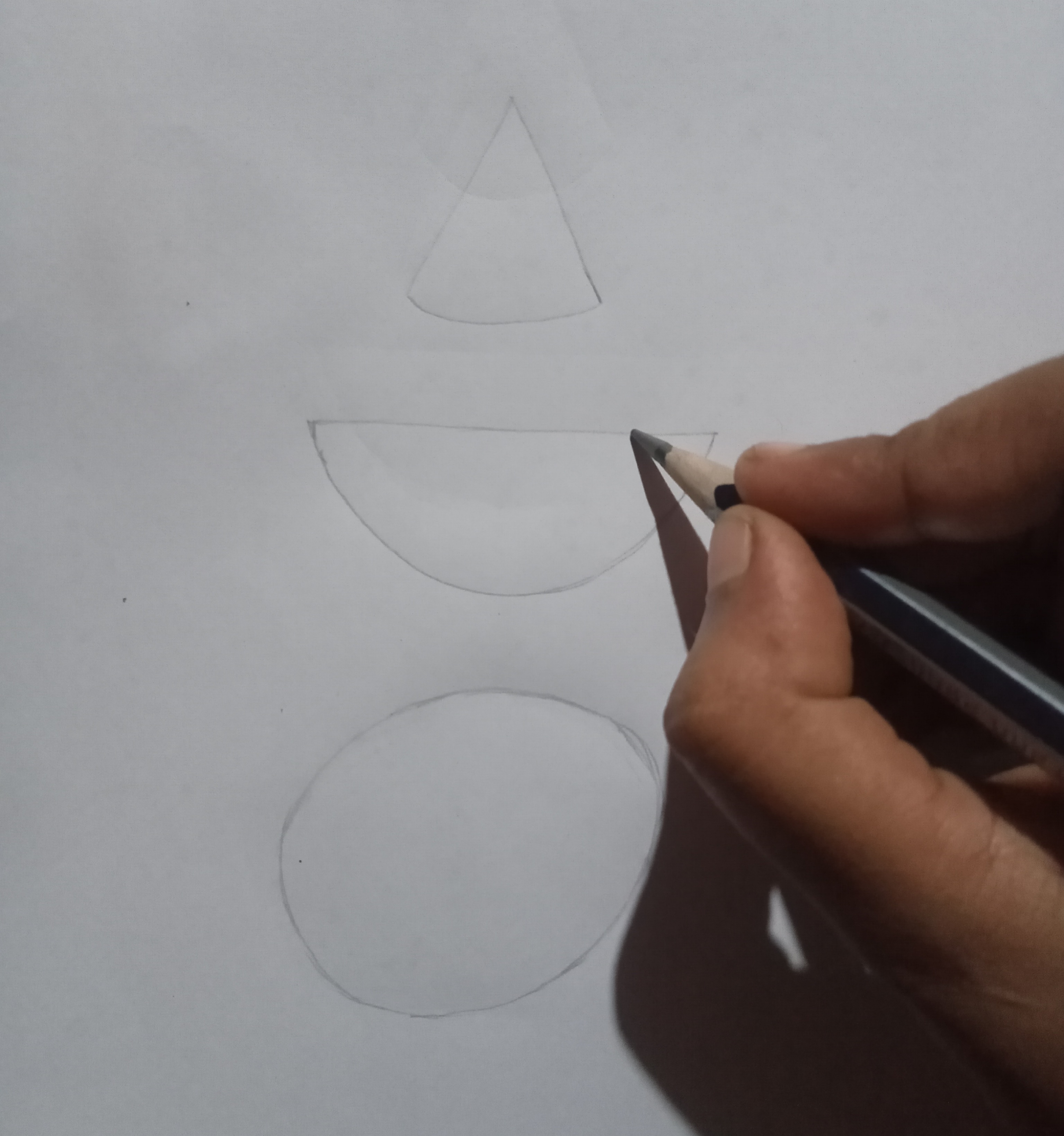 প্রথমে আমি একটি আঁকার খাতা নিলাম। তারপর সেই খাতাটার মাঝখানে পেন্সিল দিয়ে একটি তরমুজের স্কেচ অঙ্কন করে নিলাম।
