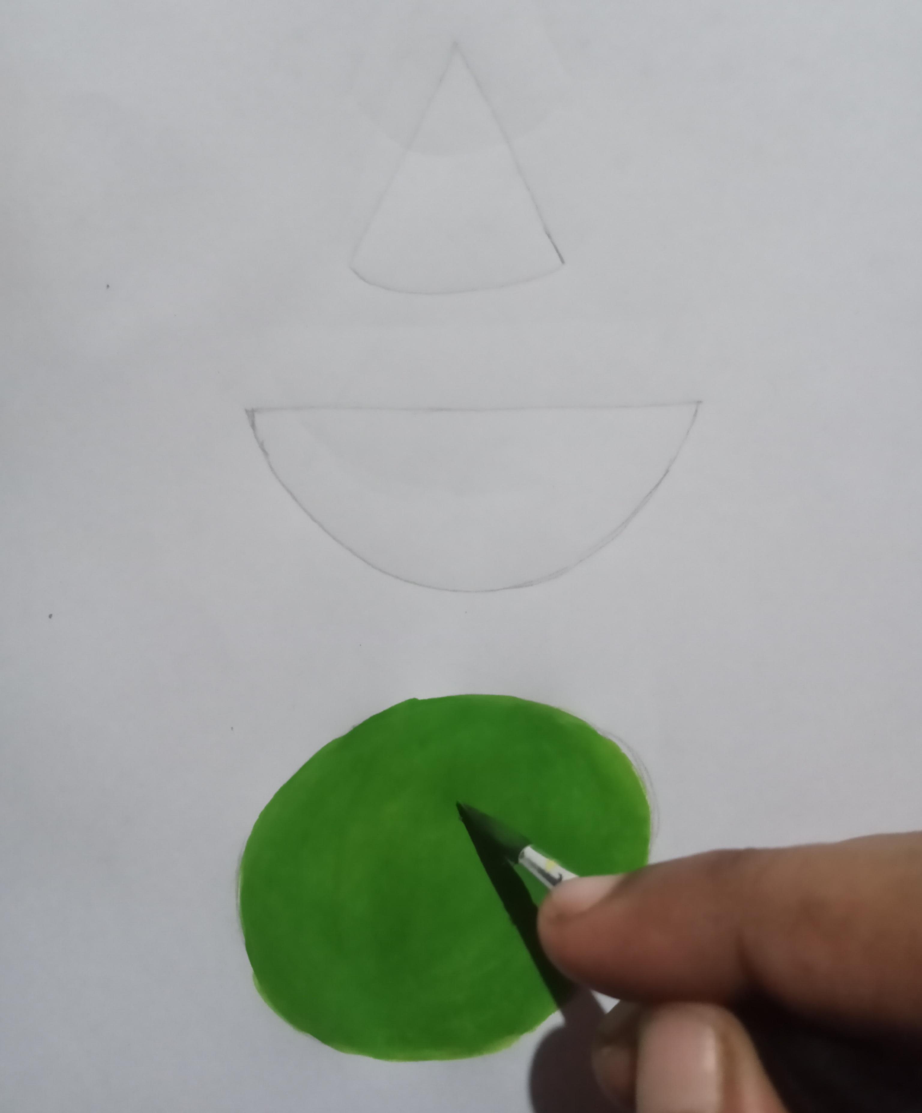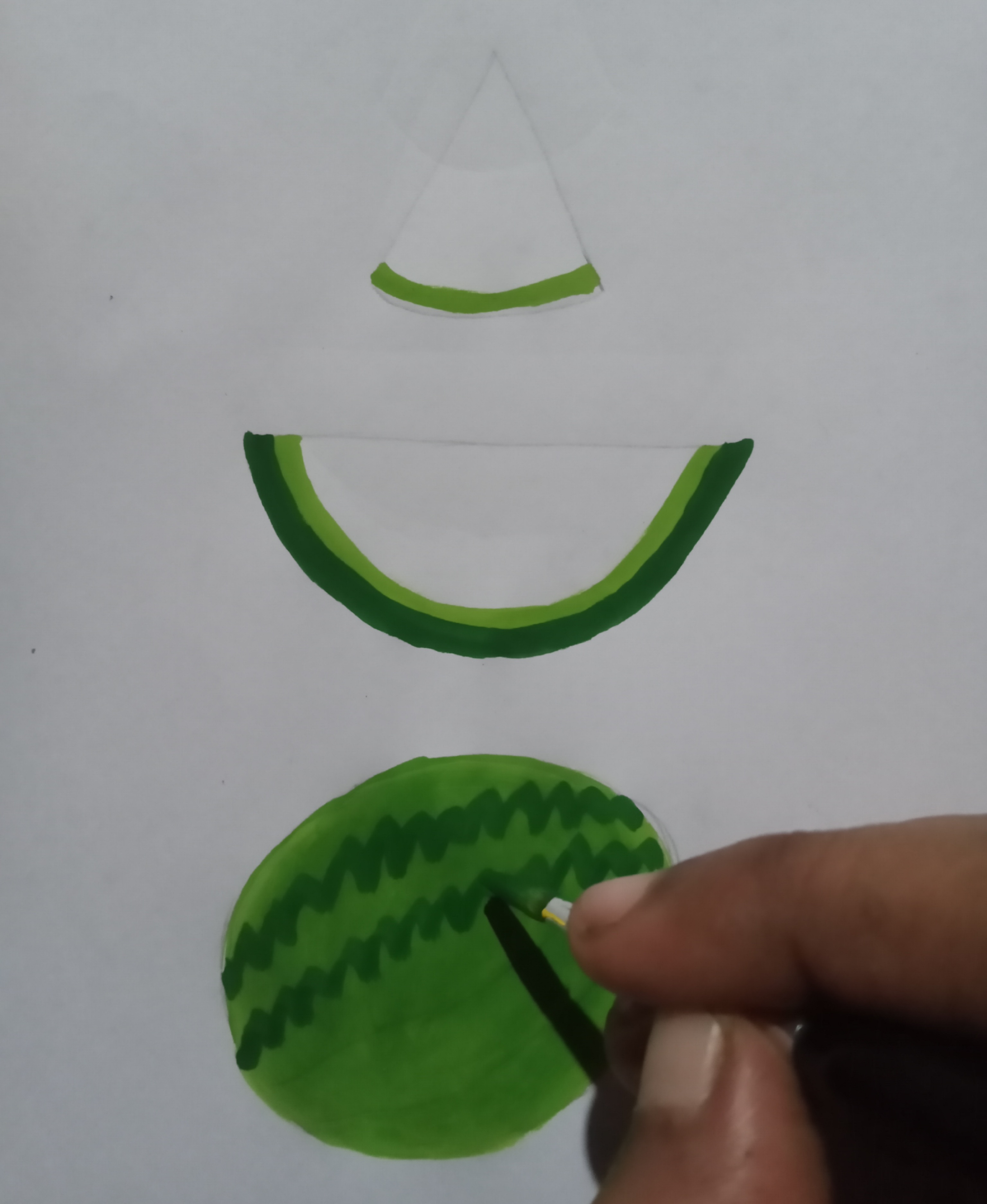 তারপর তরমুজের হালকা সবুজ রঙের মাঝখানে গারো সবুজ রং দিয়ে আরো কিছুটা অংশ সুন্দরভাবে রং করে নিলাম।