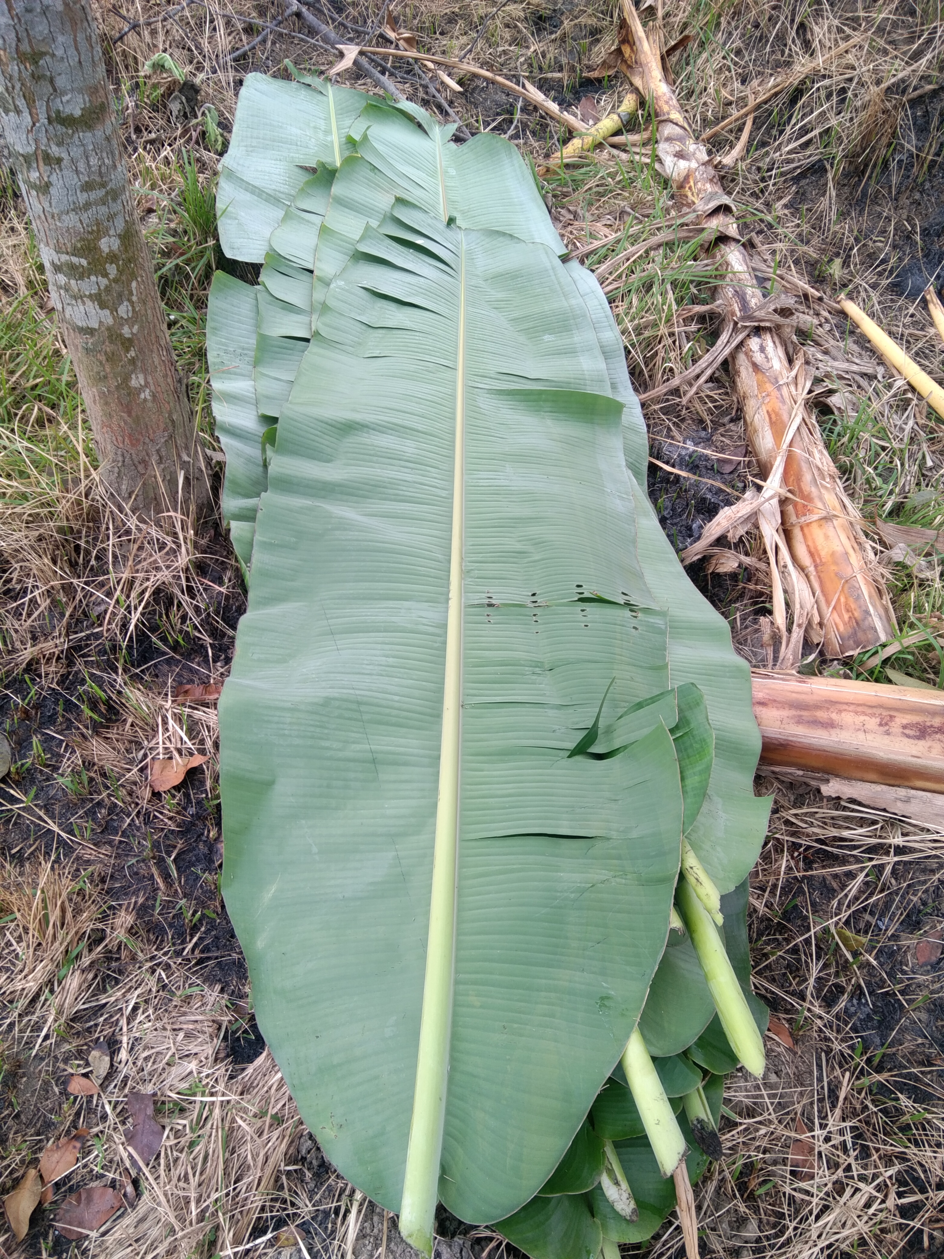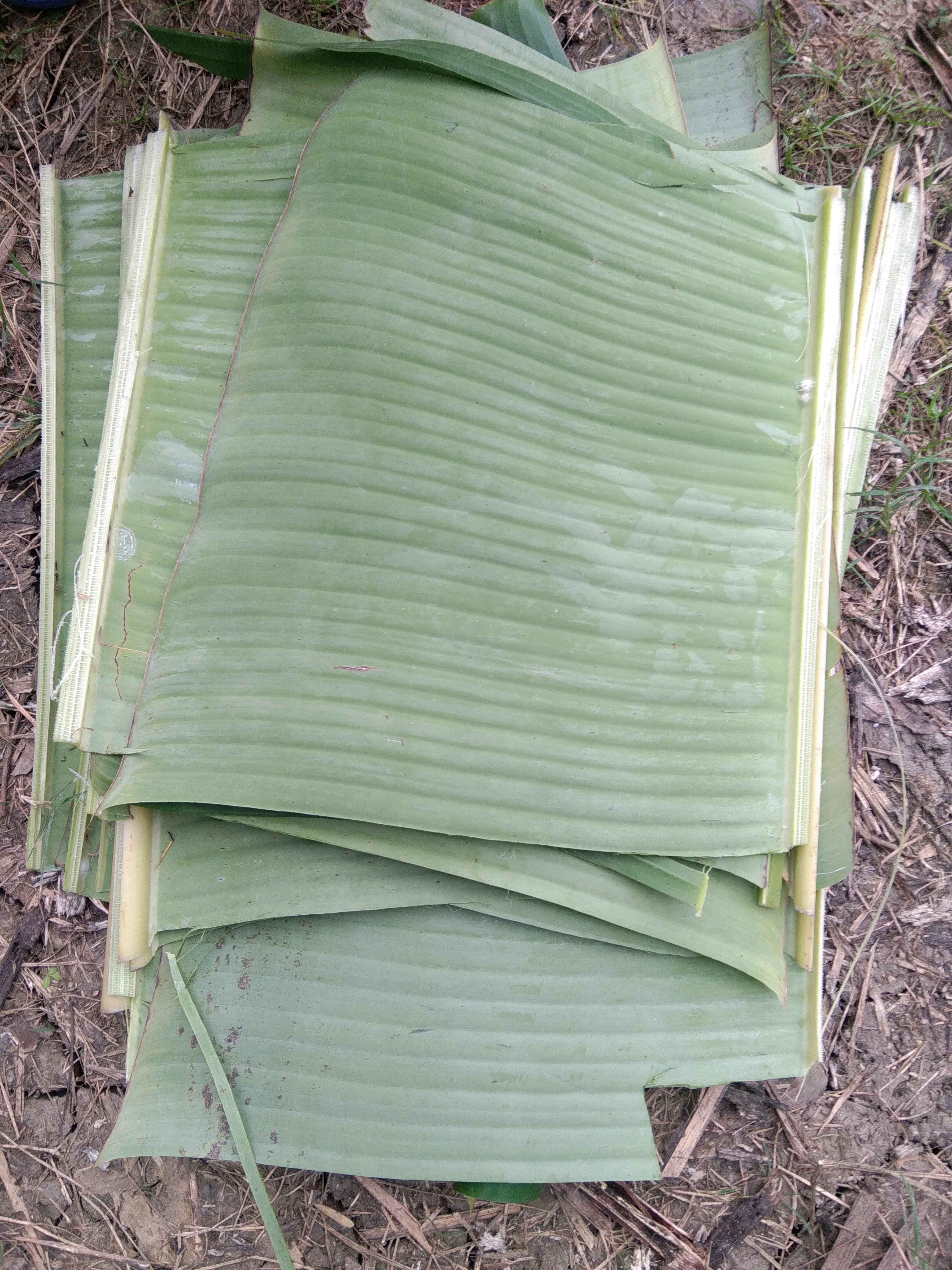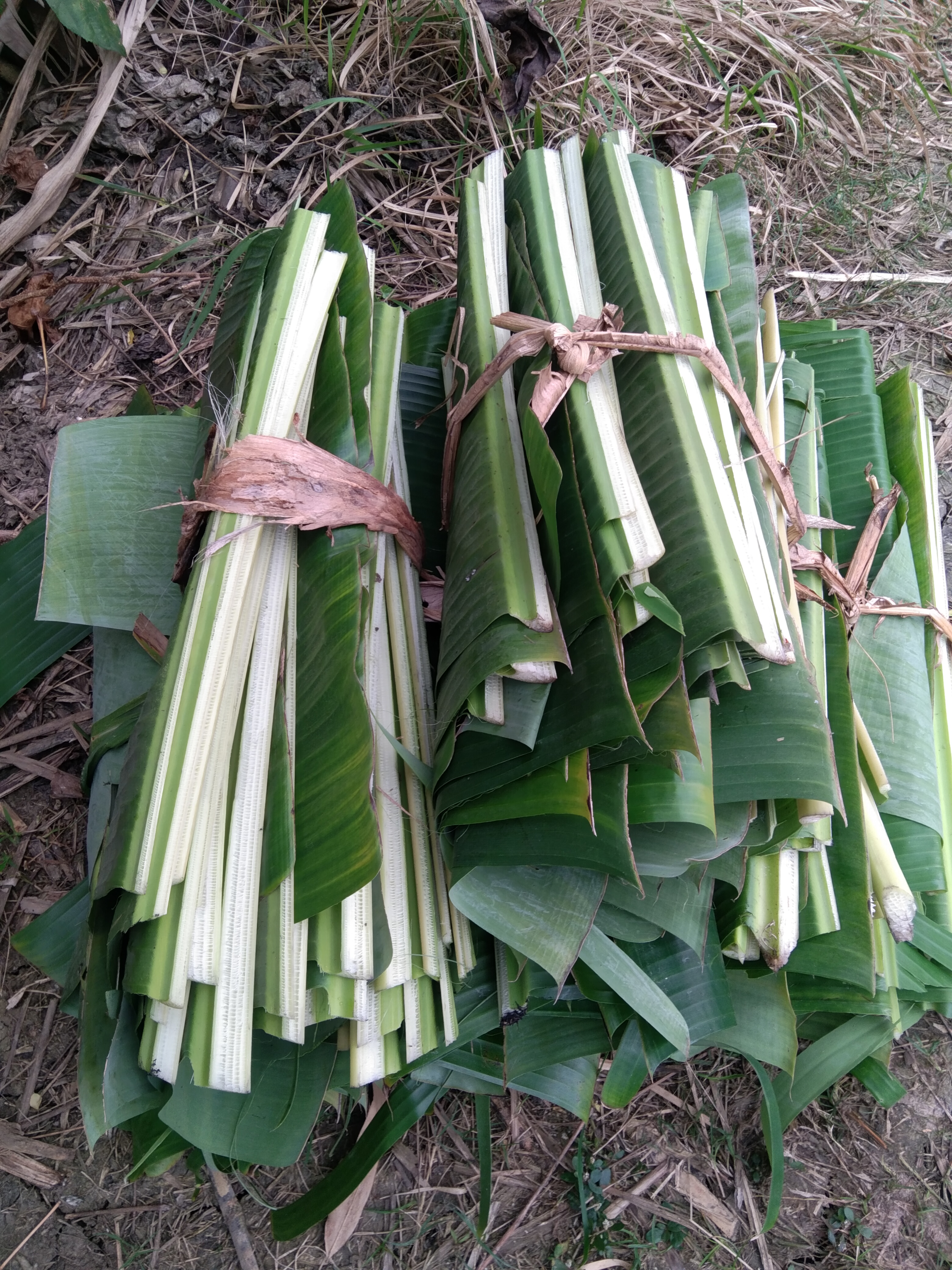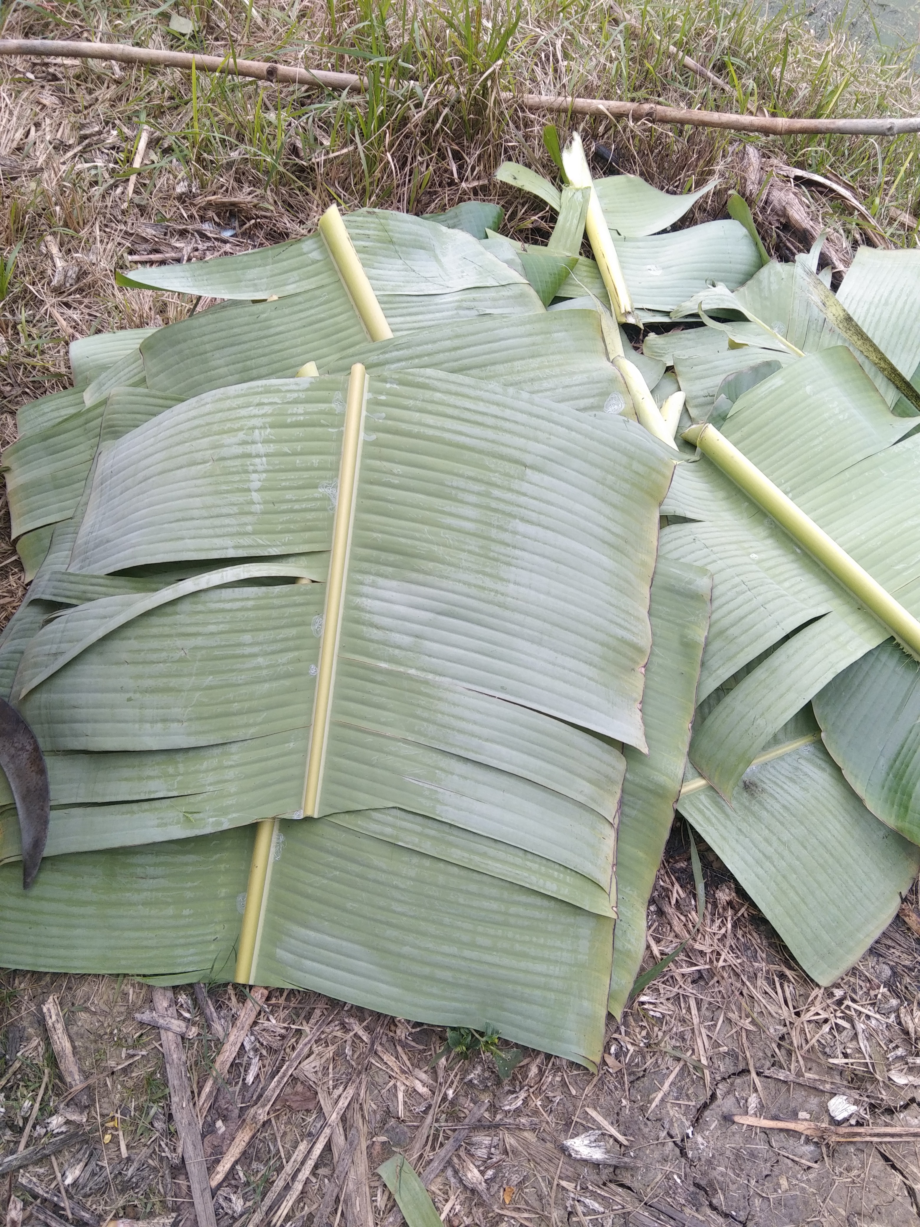 এবার কলার পাতা গুলো গাছ থেকে কেটে এক জায়গায় রেখে দিলাম।