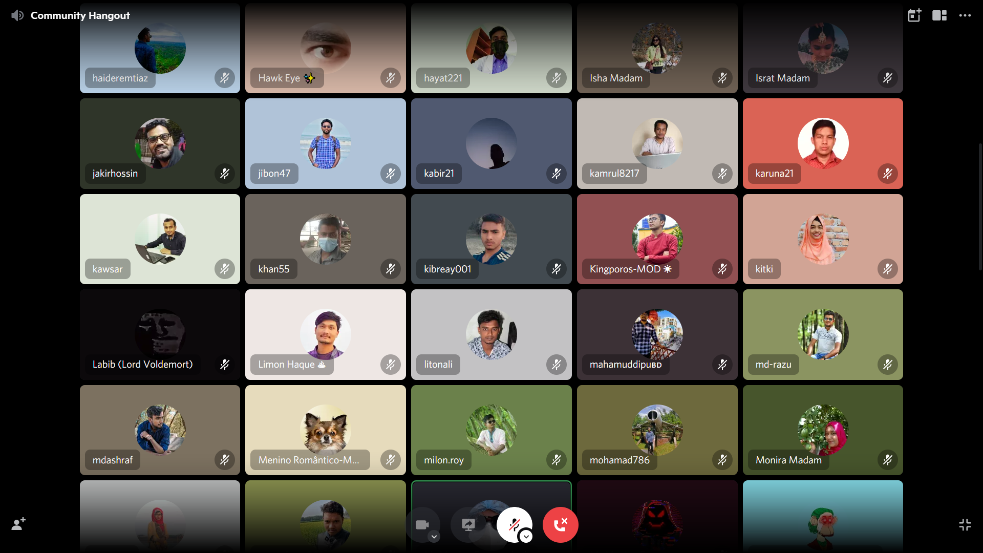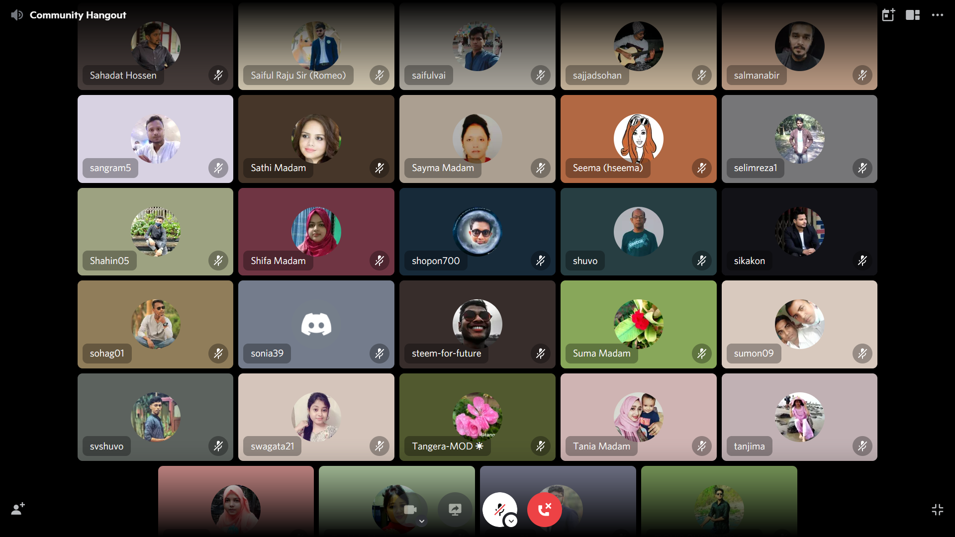 @moh.arif আরিফ ভাই কথা বলেন এরপর, তিনি বলেন আমরা প্রতিনিয়ত সকলের পোষ্ট চেক করি। বিশেষ করে তার অধীনে থাকা ইউজারদের তথ্যগুলো প্রতি সপ্তাহের হ্যাংআউটে উপস্থাপন করার চেষ্টা করতেন। কিন্তু ইউজার বেশী হয়ে যাওয়ায় এখন সেটা সম্ভব হচ্ছে না। তাই এরপর হতে সেটা রিপোর্ট আকারে প্রকাশ করার চেষ্টা করবেন। এরপর এ্যাকটিভ তালিকা নিয়ে কথা বলেন, এই সপ্তাহে এ্যাকটিভ ইউজারদের তালিকা হতে পাঁচজন ইউজারদের এ্যাকটিভ না থাকার কারনে বাদ দেয়া হয়েছে। তাদেরকে লেভেল-৪ এর অধীন করা হবে এখন, তারপর নিয়মিত হওয়ার পর পুনরায় সুযোগ দেয়া হবে।