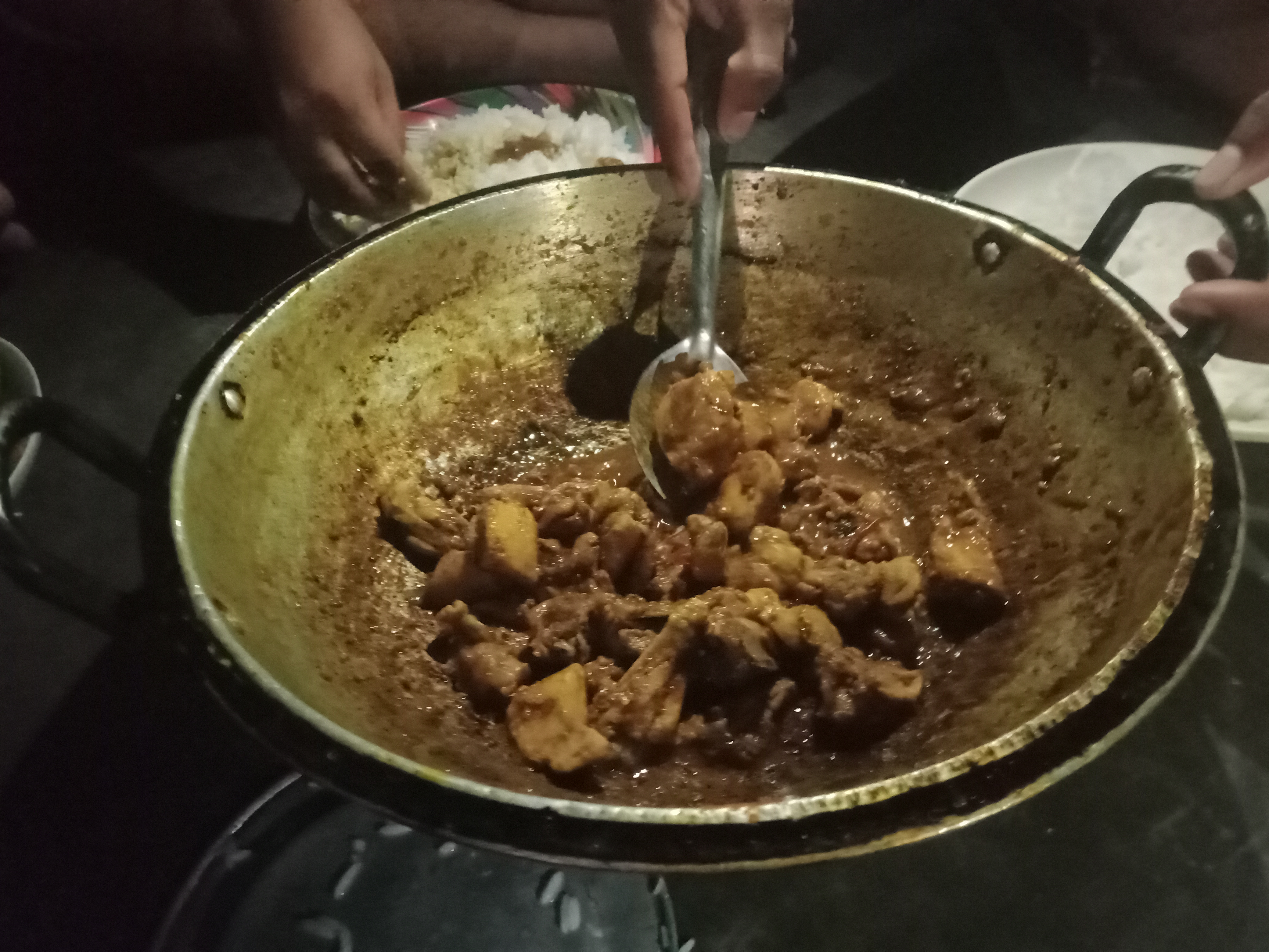 এখন সবাই একসাথে বসে খেতে বসেছি। সবাই মজা করে পুরো মুরগি মাংসের ভুনা শেষ করলাম।