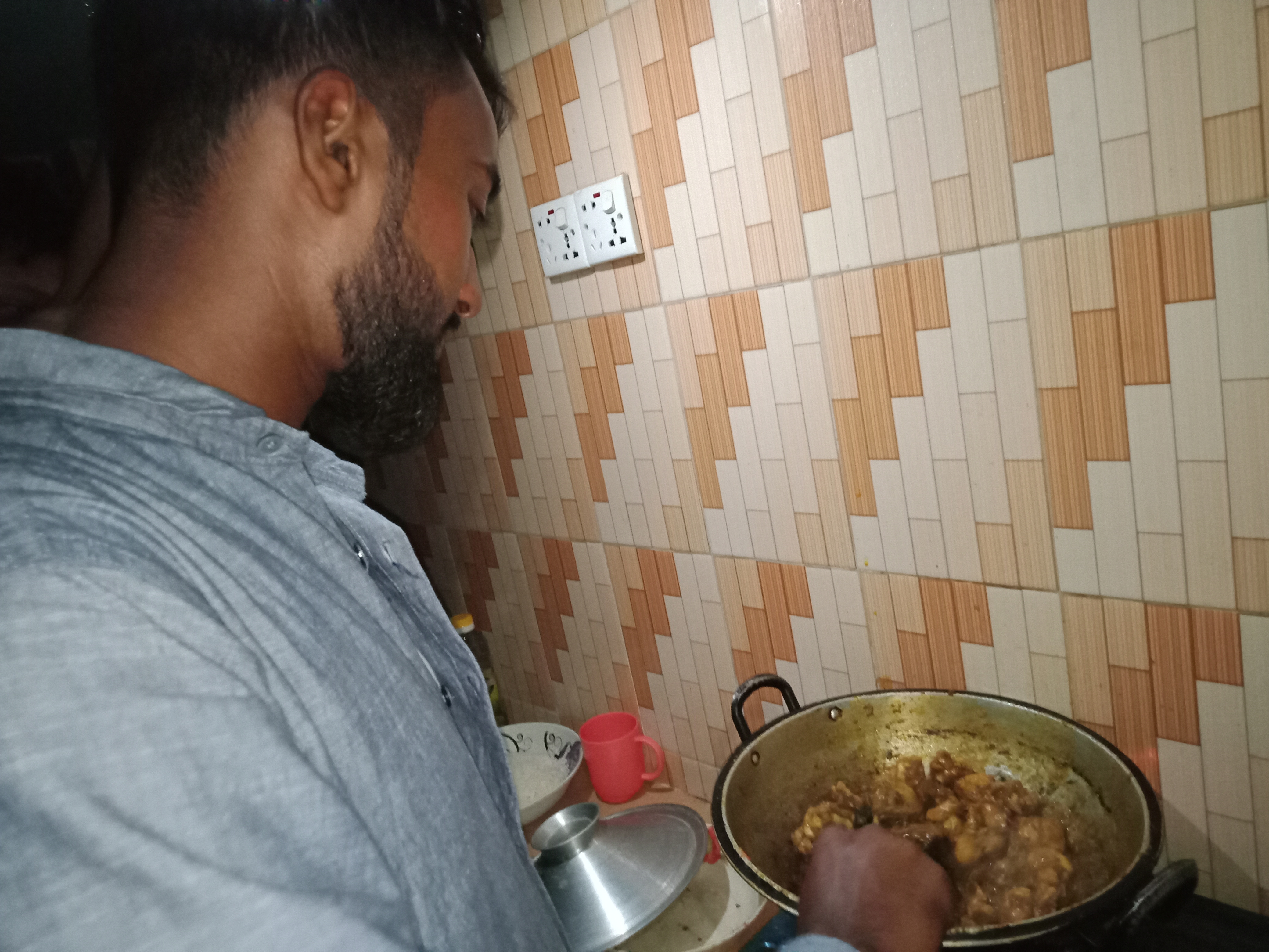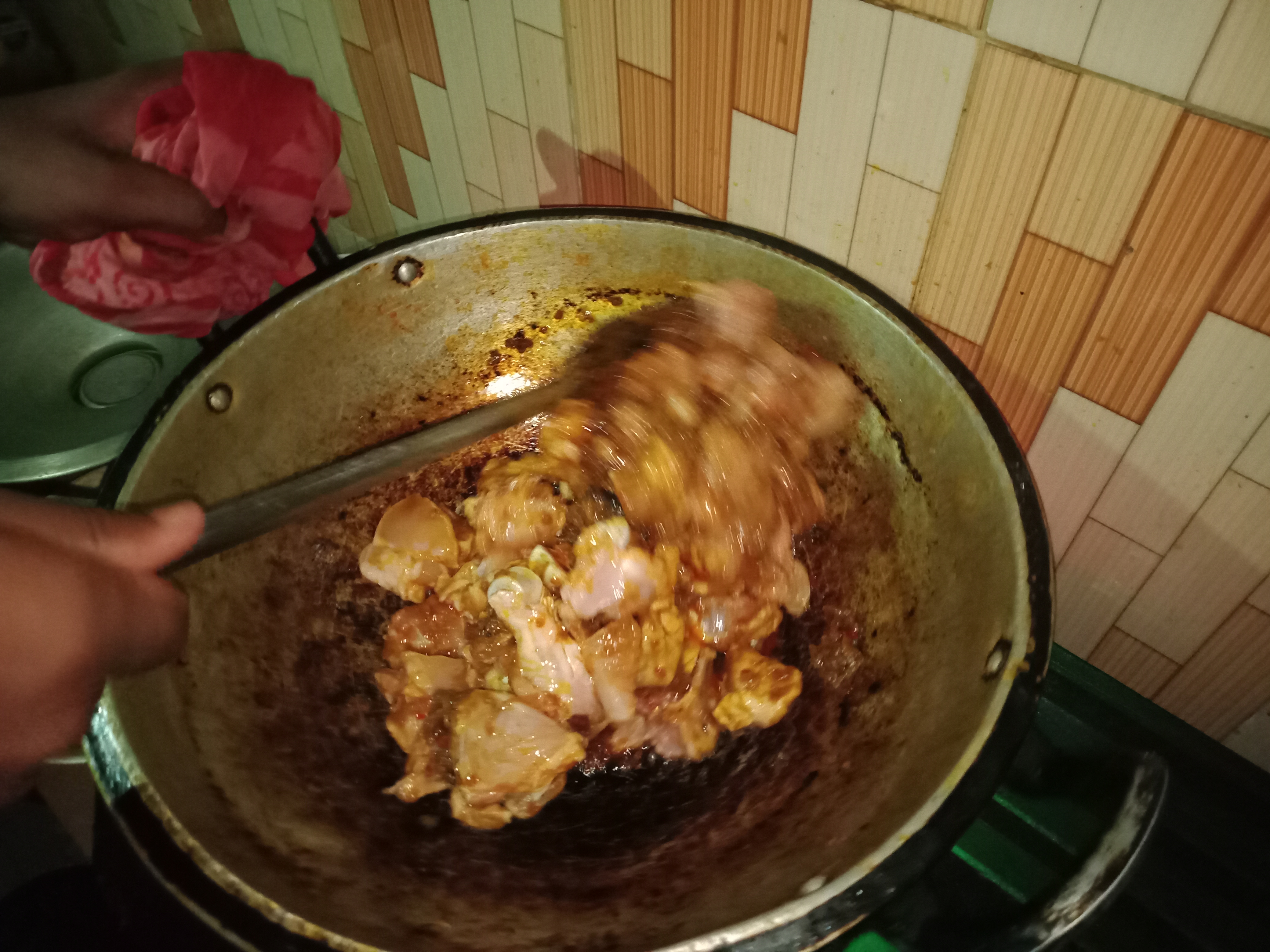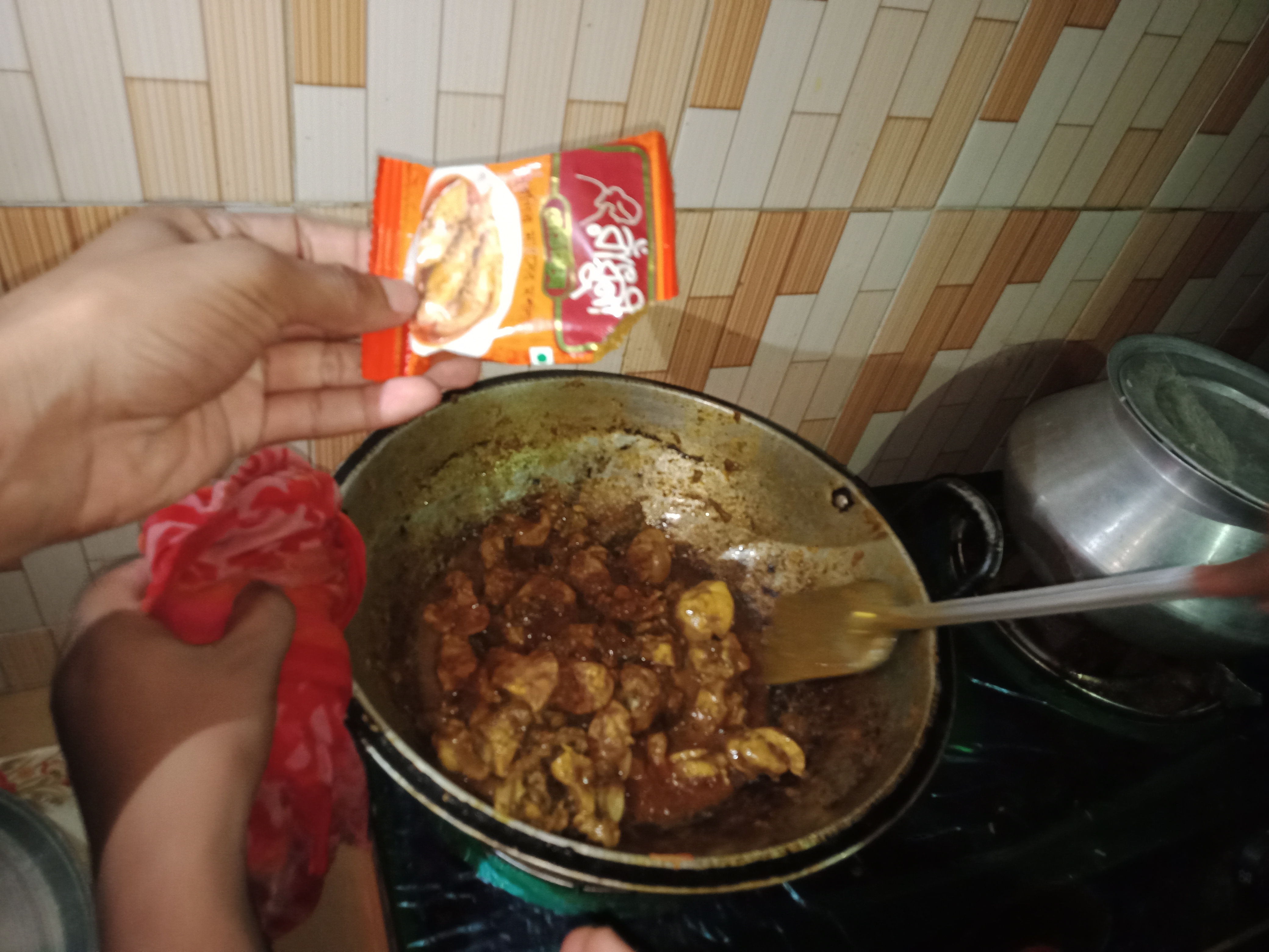 আজকে প্রায় ১০ দিন পর ম্যাচে আসলাম। ম্যাচে আসার পর ছোট ভাইরা বায়না ধরল, মুরগির মাংস ভুনা করে খাবে। তাদের বায়না করাতে আমিও মত পোষণ করে দিলাম। তাই সবাই একসাথে হয়ে মুরগির মাংসের ভূনা পার্টি দিয়ে দিলাম।