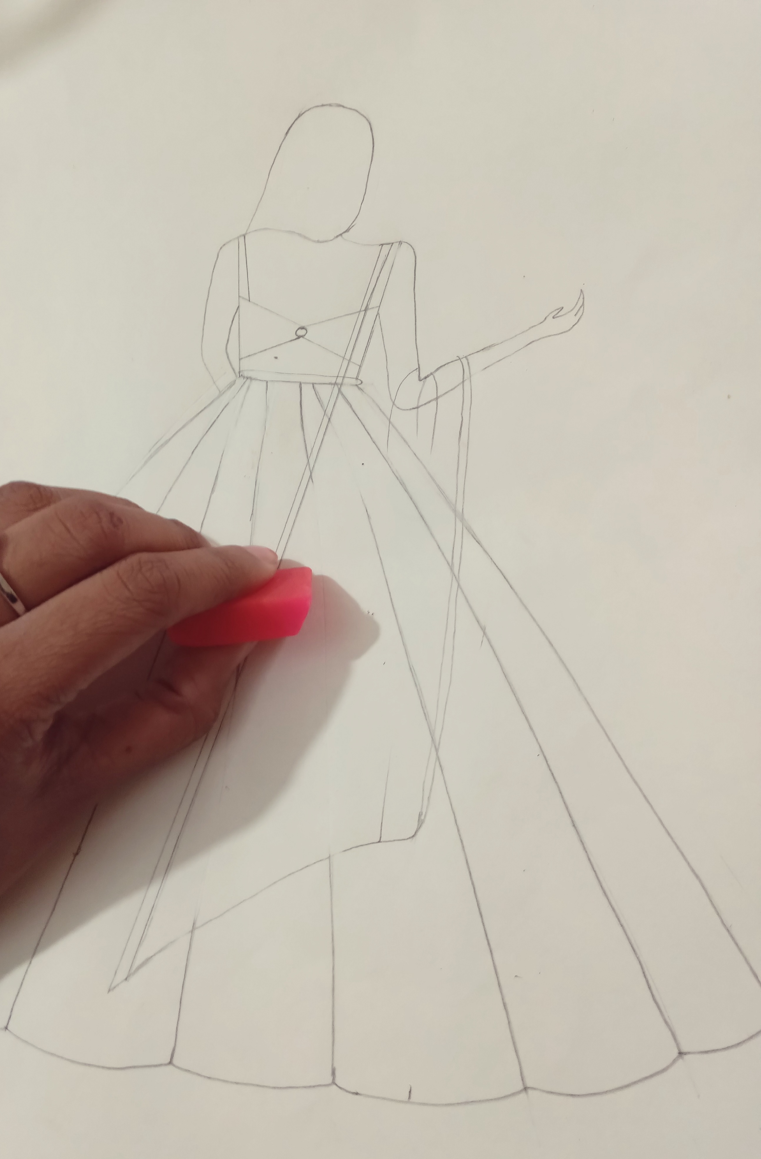 ওড়না বরাবর জামার ডিজাইন গুলো রাবার ব্যবহার করে মুছে দেই।