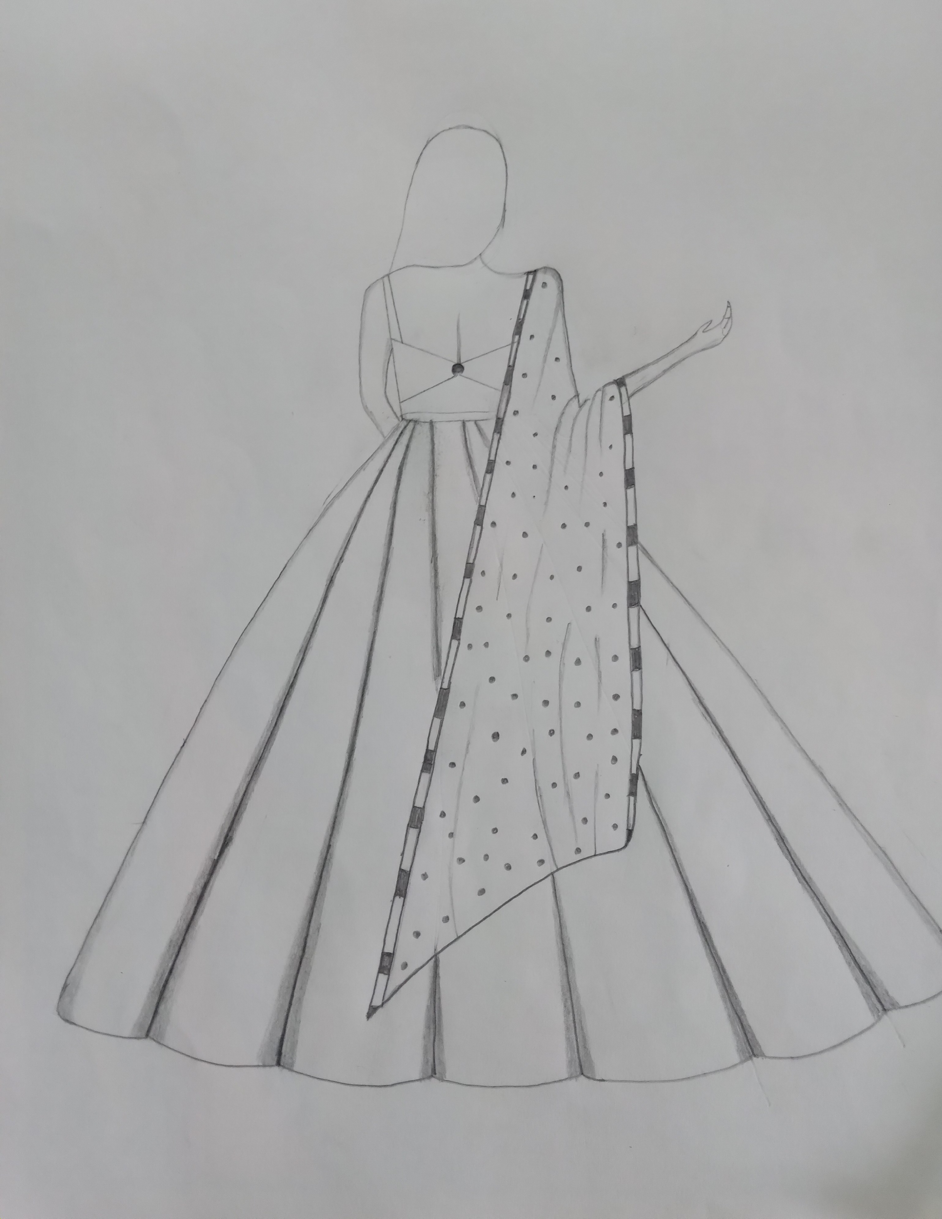 তারপর মেয়েটির জামার সাথে ওড়না অঙ্কন করি।