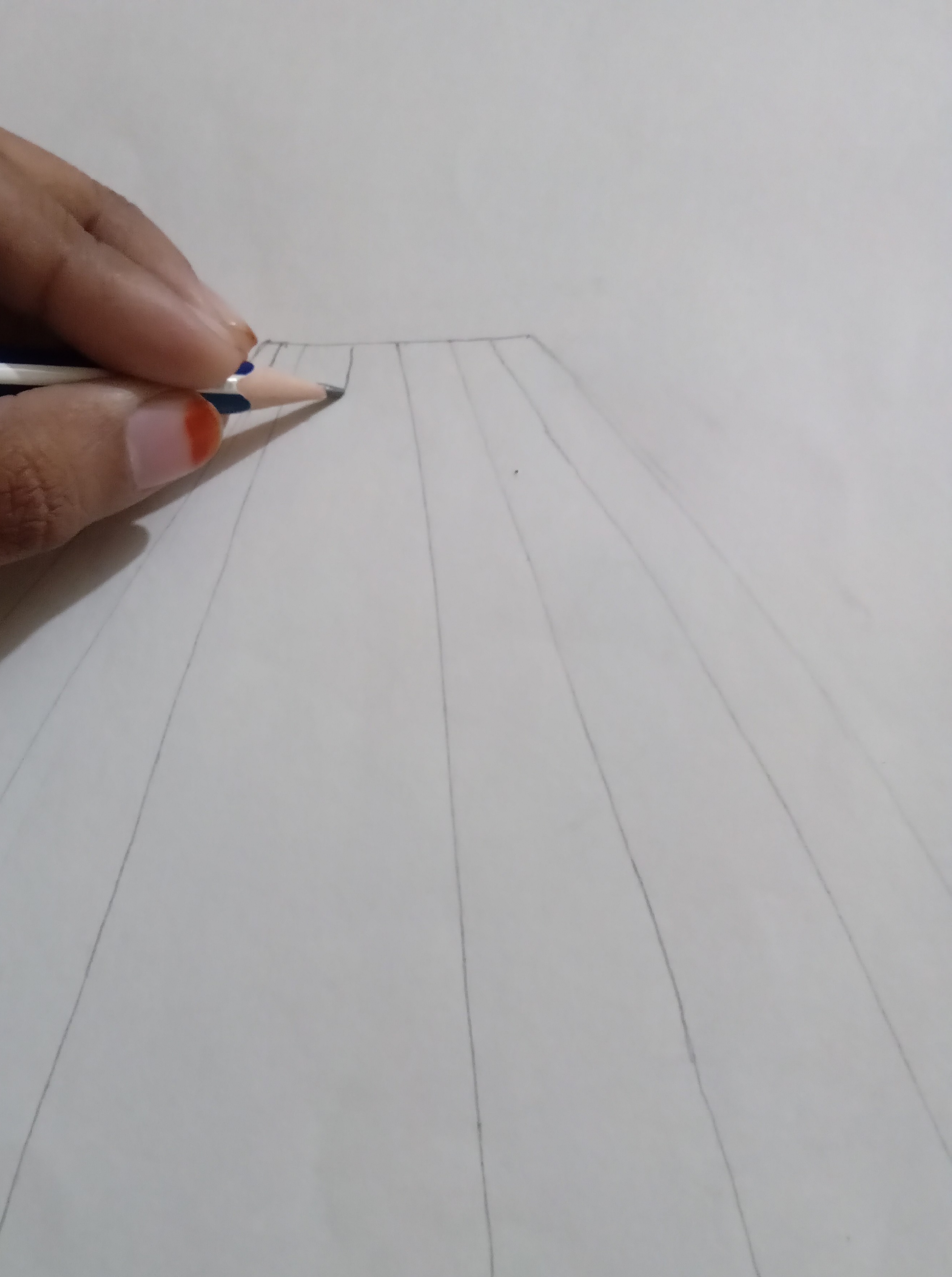 তারপর আমি মেয়েটির জামার মধ্যে কুচির মত ডিজাইন করে জামায় লম্বা করে কয়েকটি দাগ দিয়ে দিয়েছি।