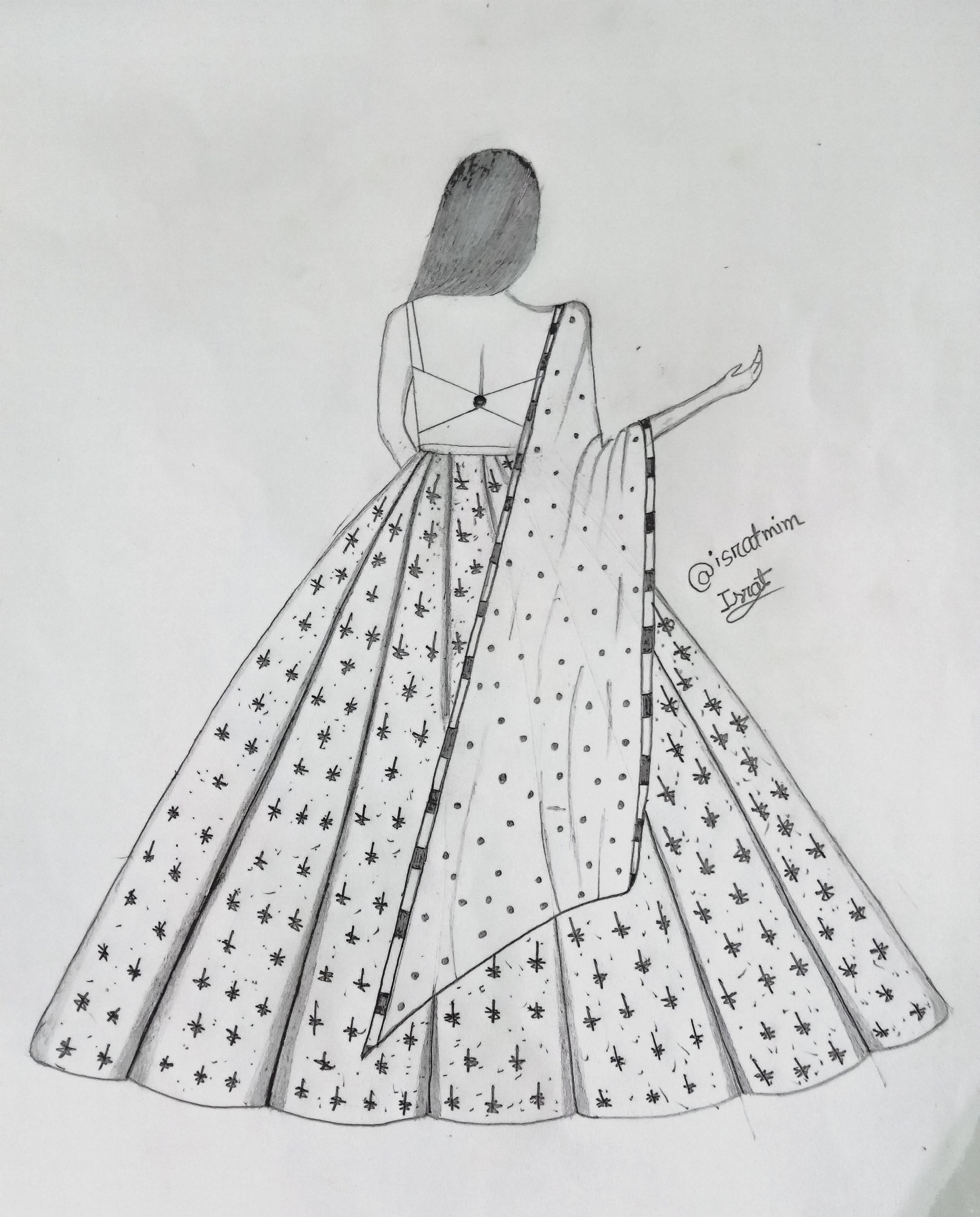 সুন্দর পোশাকে একটি মেয়ের পেন্সিল আর্ট চিত্র অংকন আমার কাছে বেশ ভালো লেগেছে আপু মনি।
