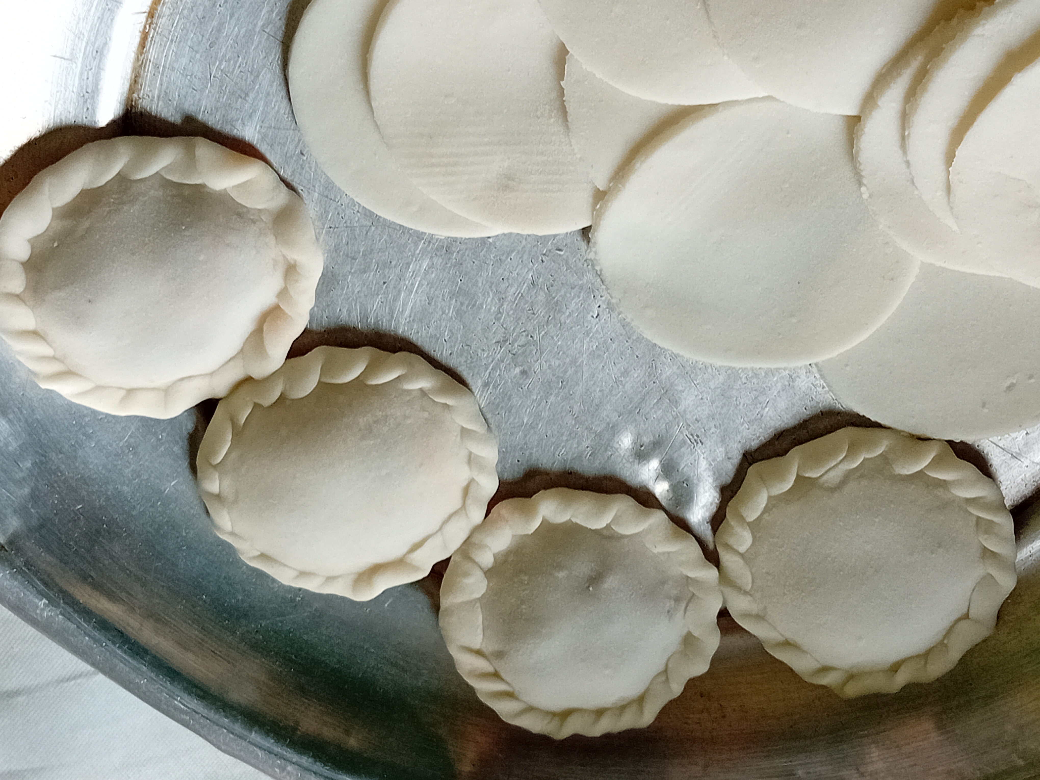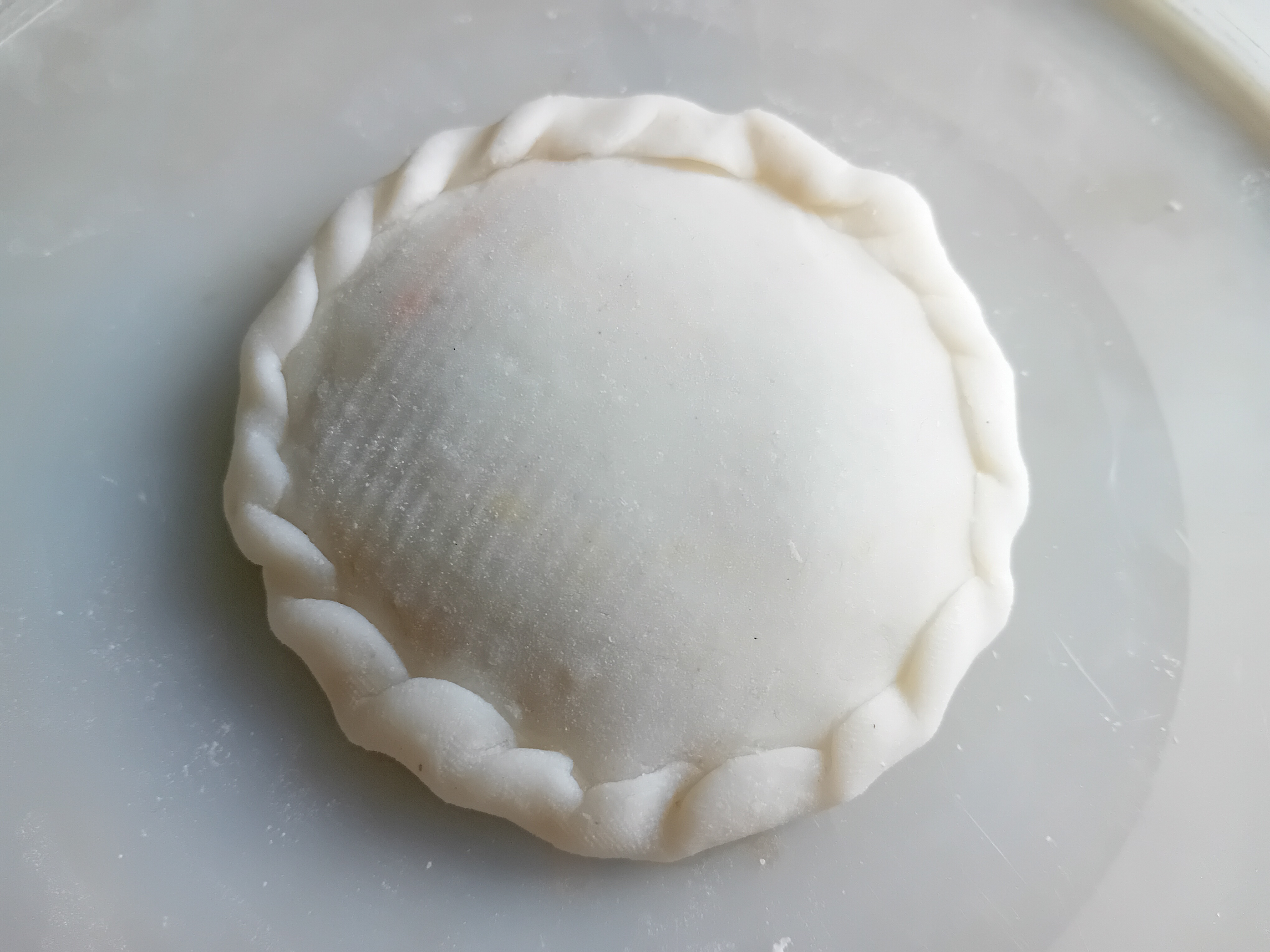 এবার দুটো রুটি একসাথে জোড়া লাগিয়ে দিলাম এবং চারপাশে কিছুটা ডিজাইন করে নিয়েছি যেন জোড়াটা খারাপ না লাগে দেখতে। এভাবে আমি বেশ কয়েকটা পুলি পিঠা তৈরি করে নিয়েছি।