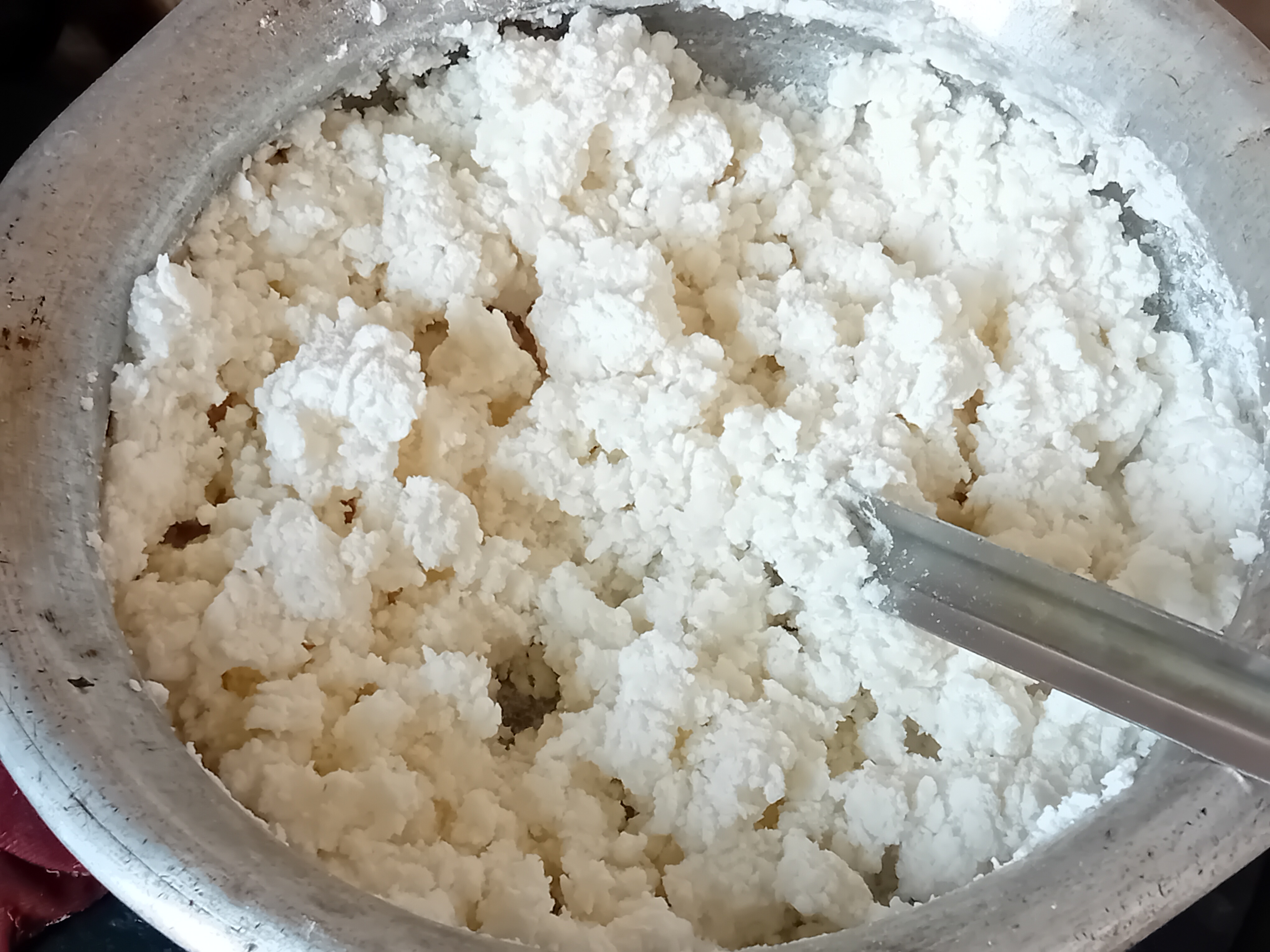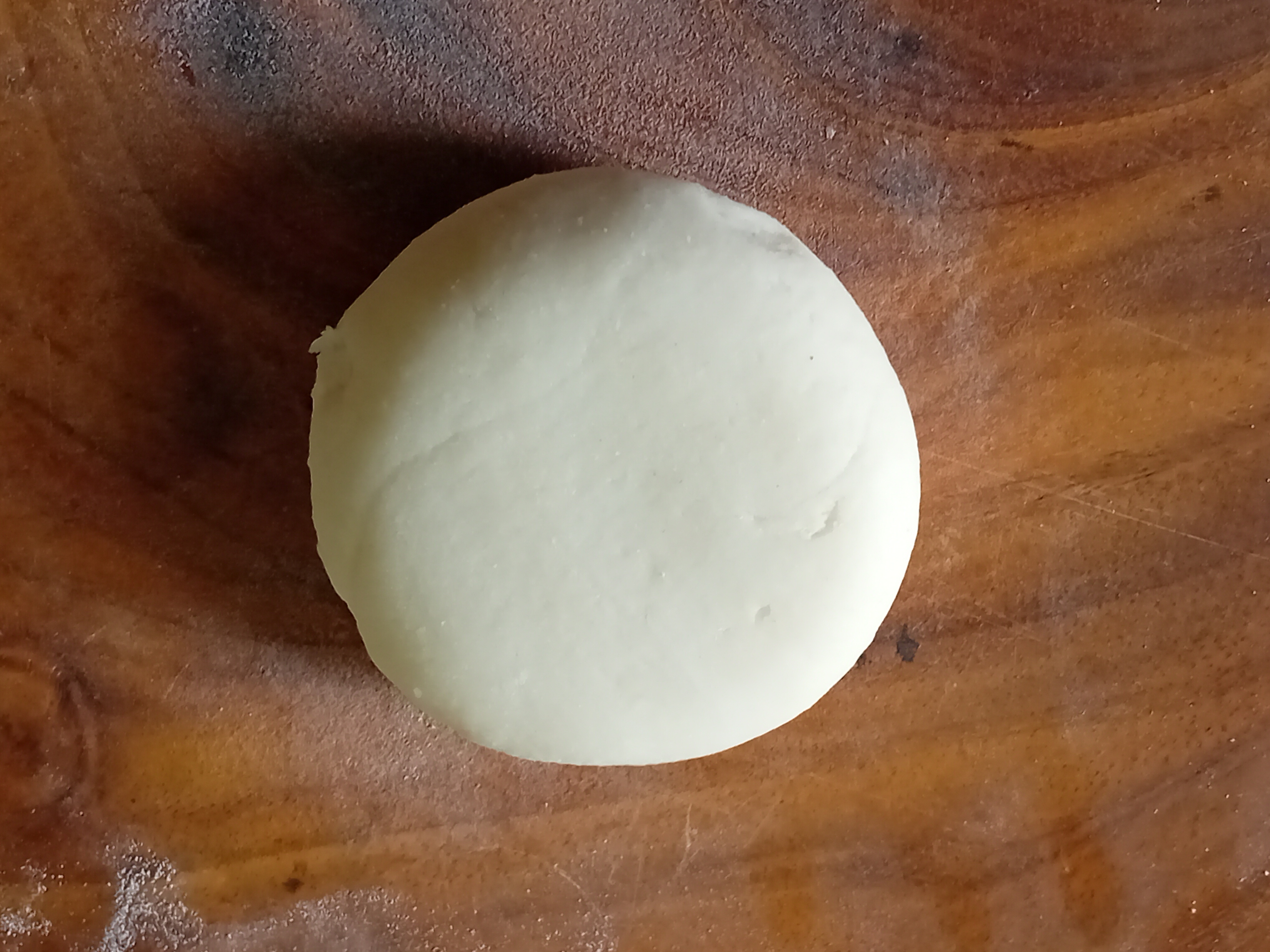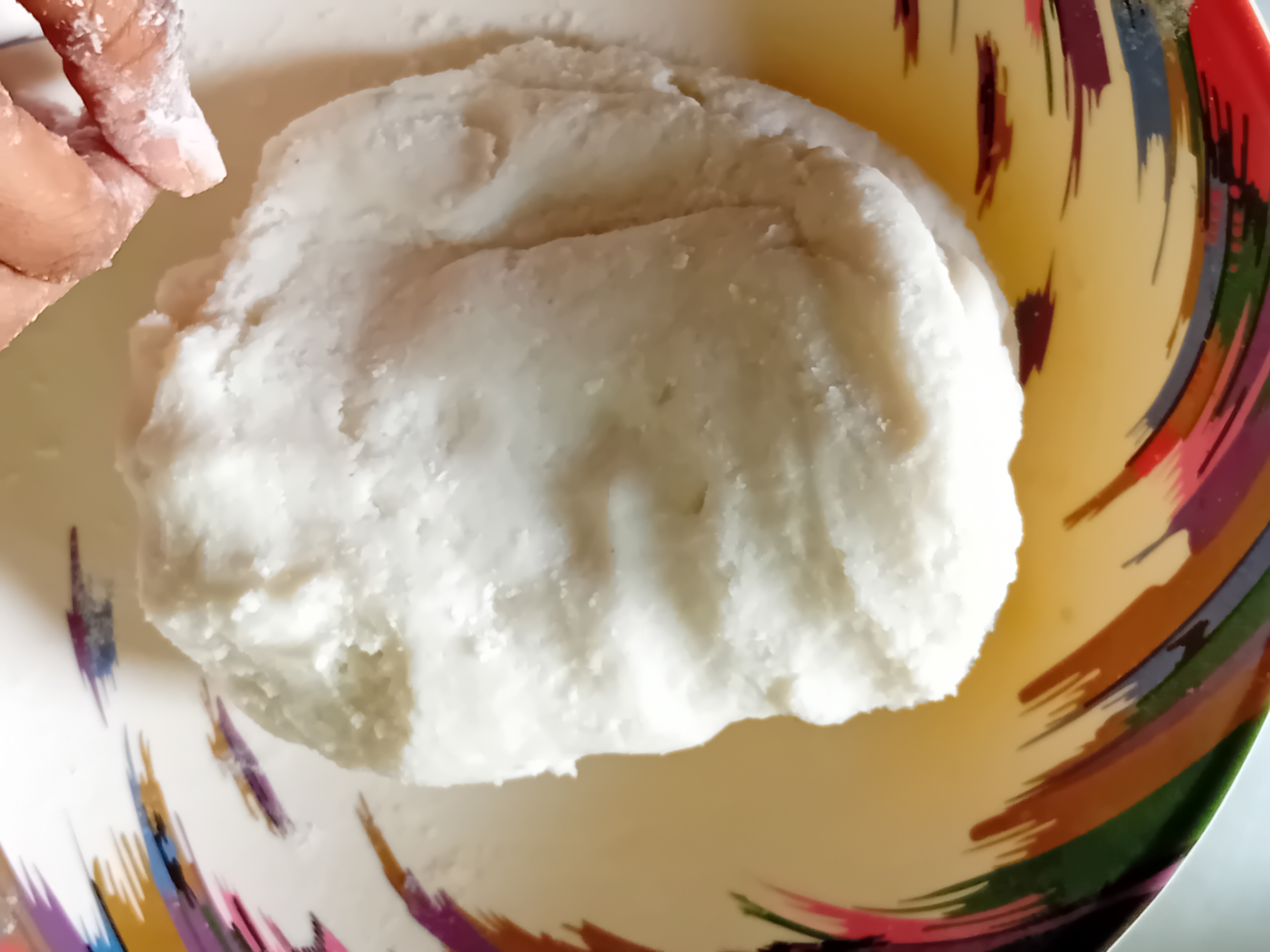 চাউলের গুঁড়ো দেওয়ার পর আমি চুলাটা অফ করে দিব। এবার গরম অবস্থায় ভালোভাবে নেড়ে একটা ডো তৈরি করে নেব। কিছুটা ঠান্ডা হয়ে গেলে হাতের সাহায্যে সফট একটা ডো তৈরি করে নিয়েছি।