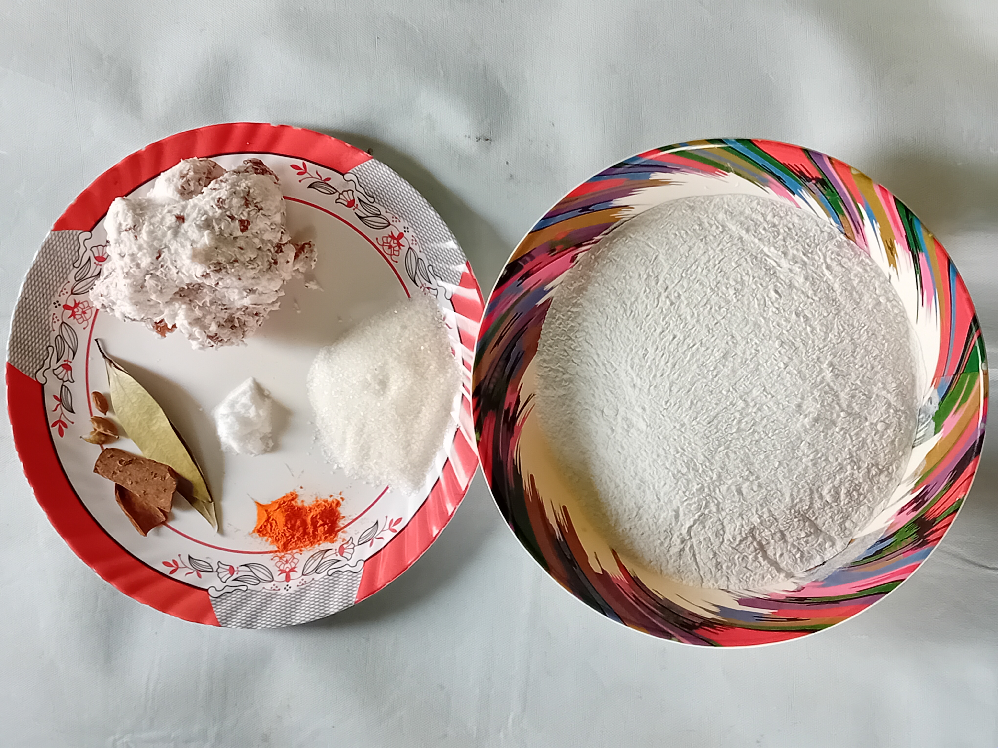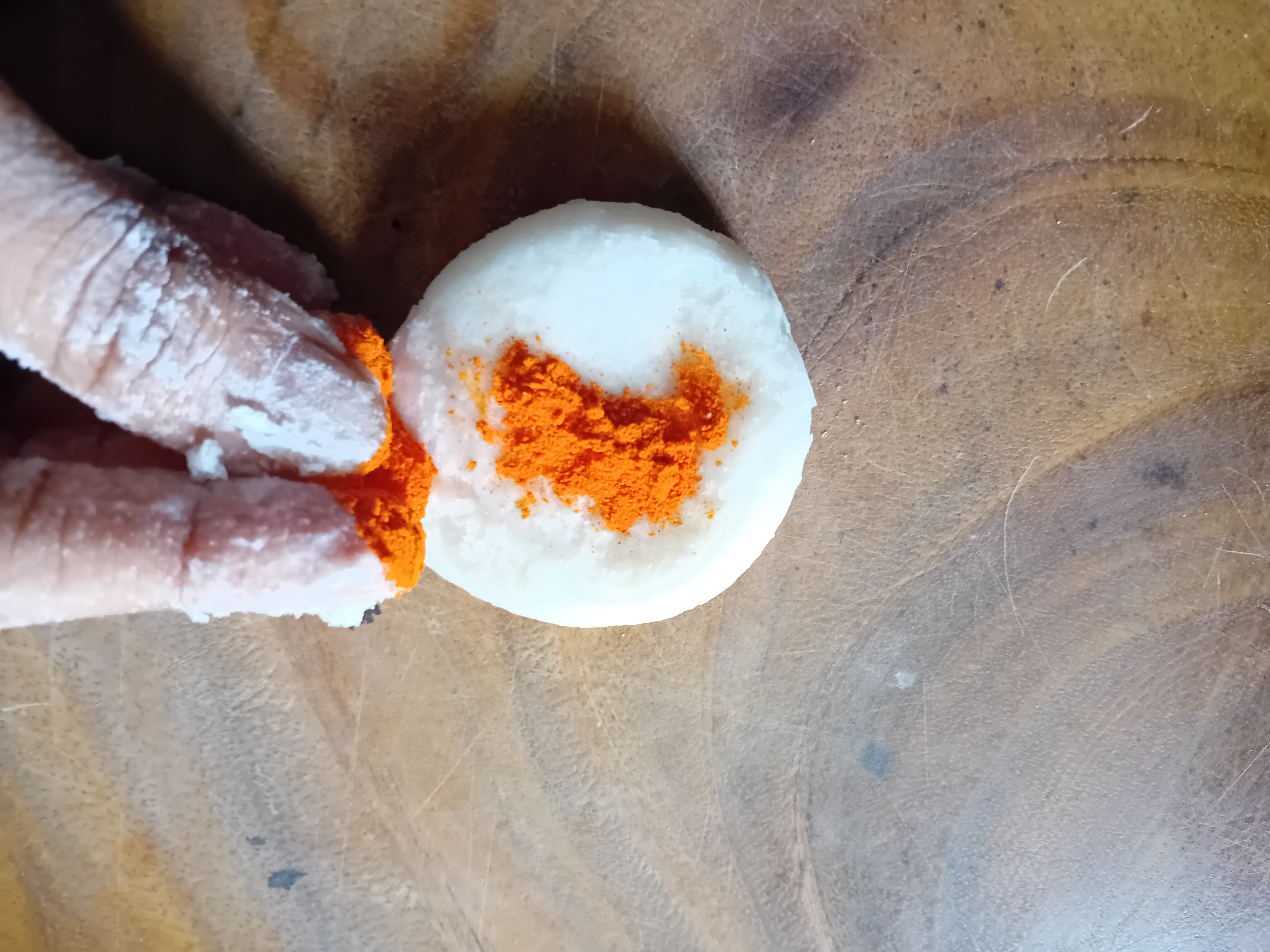এবার সেখান থেকে কিছুটা ডো আলাদা করে নিলাম। অল্প একটু ডোর মধ্যে আমি কিছুটা জর্দার রং মিশিয়ে দিলাম। জর্দার রংটুকু আমি ভালোভাবে মিক্স করে নিয়েছি।