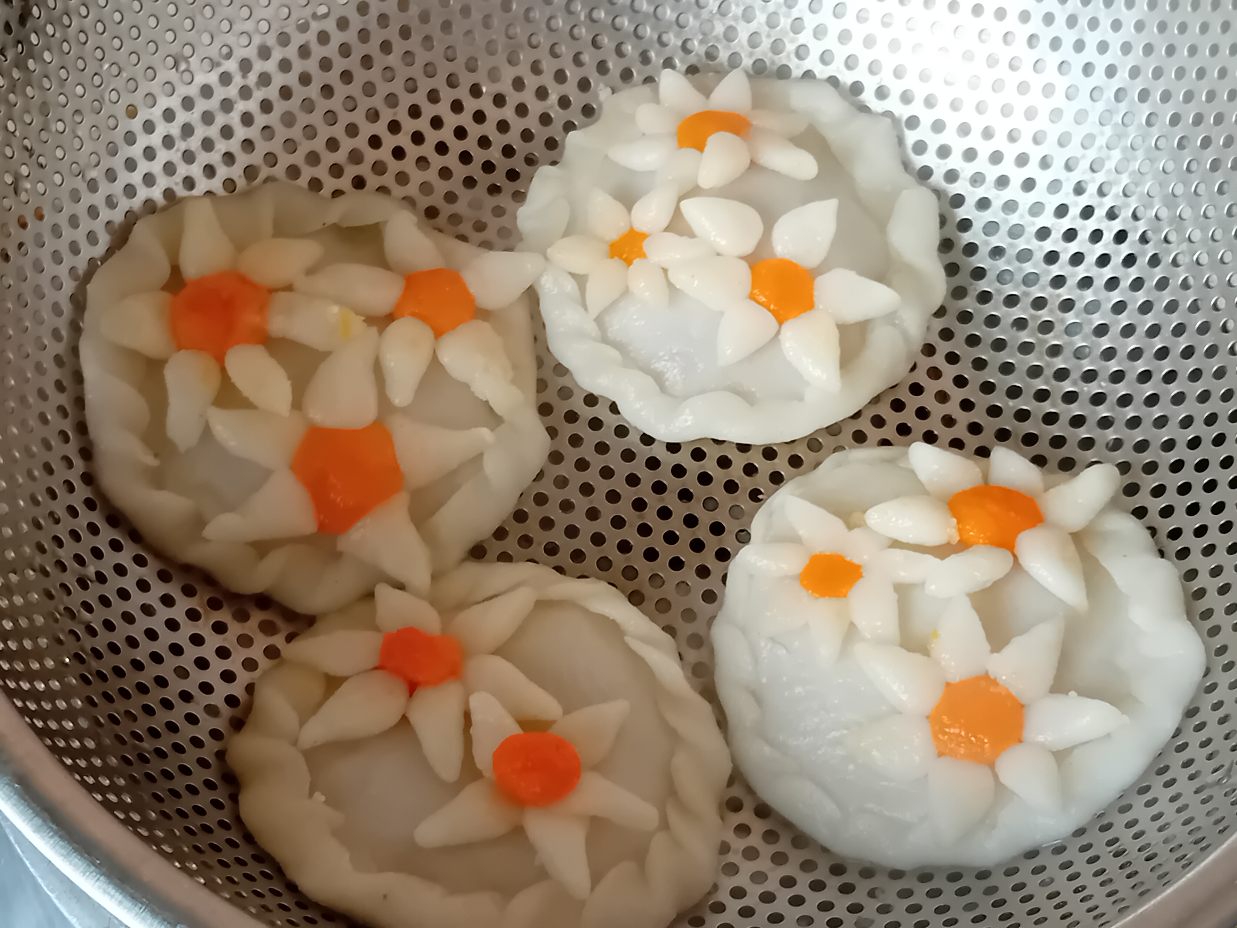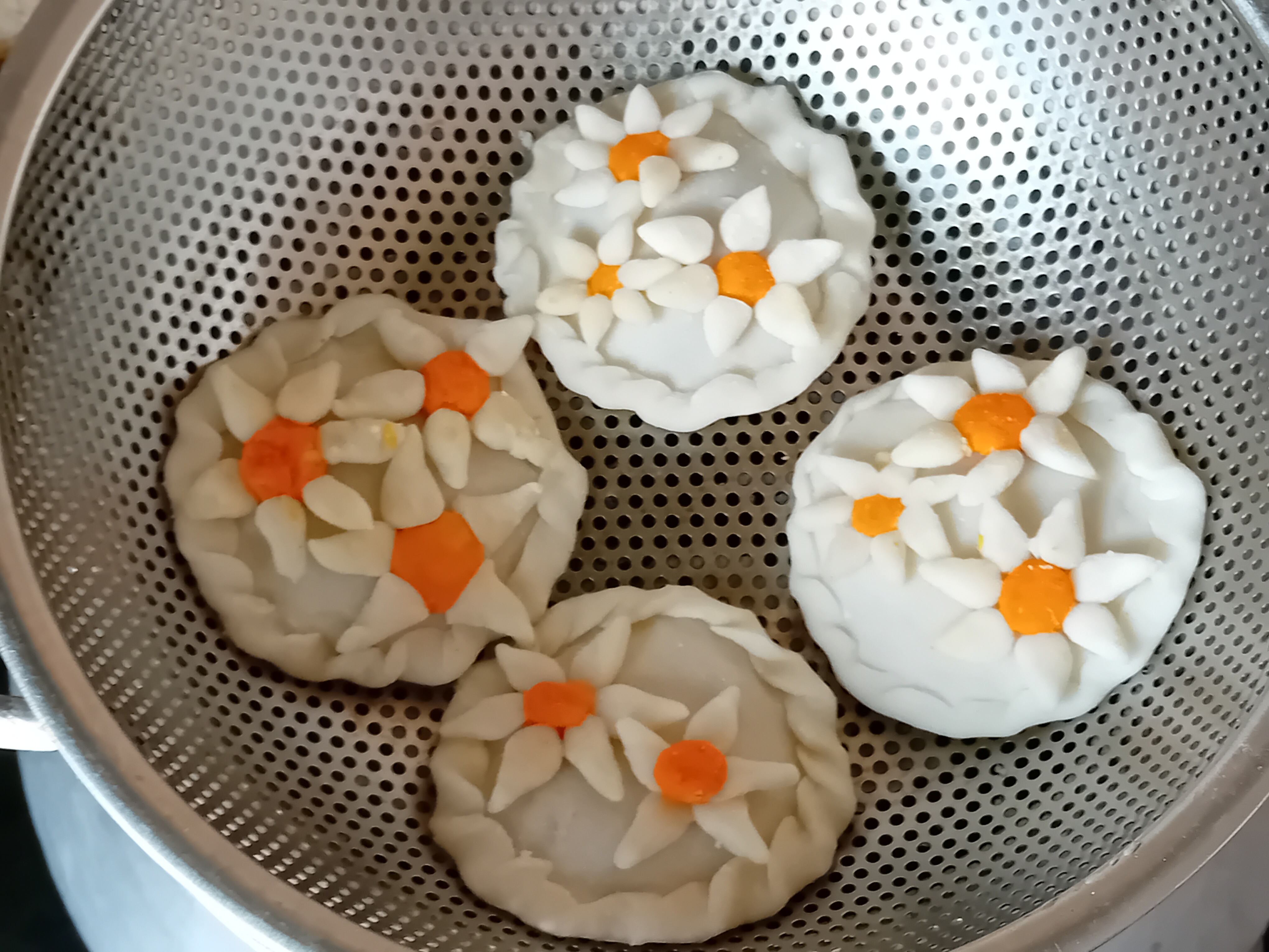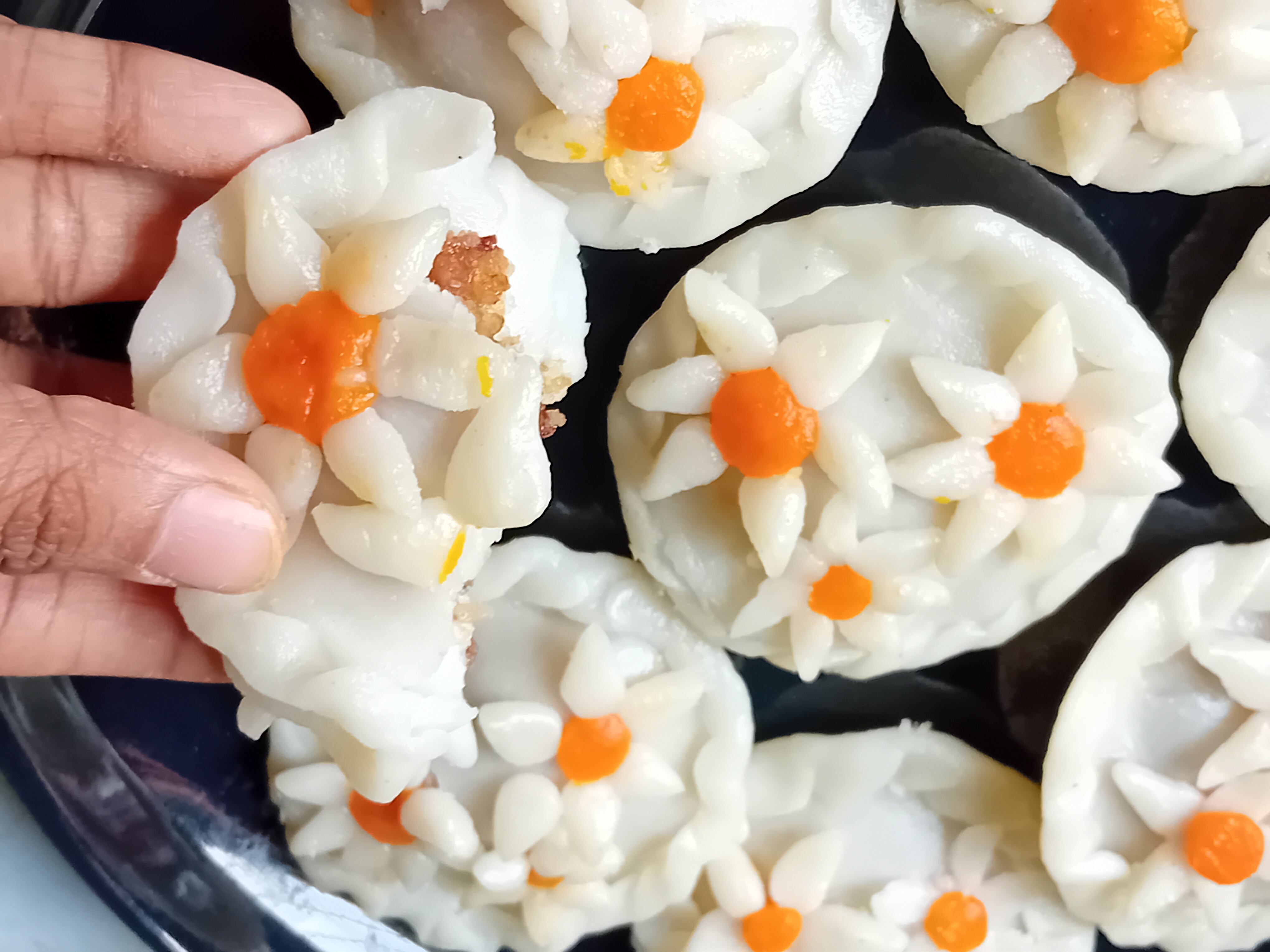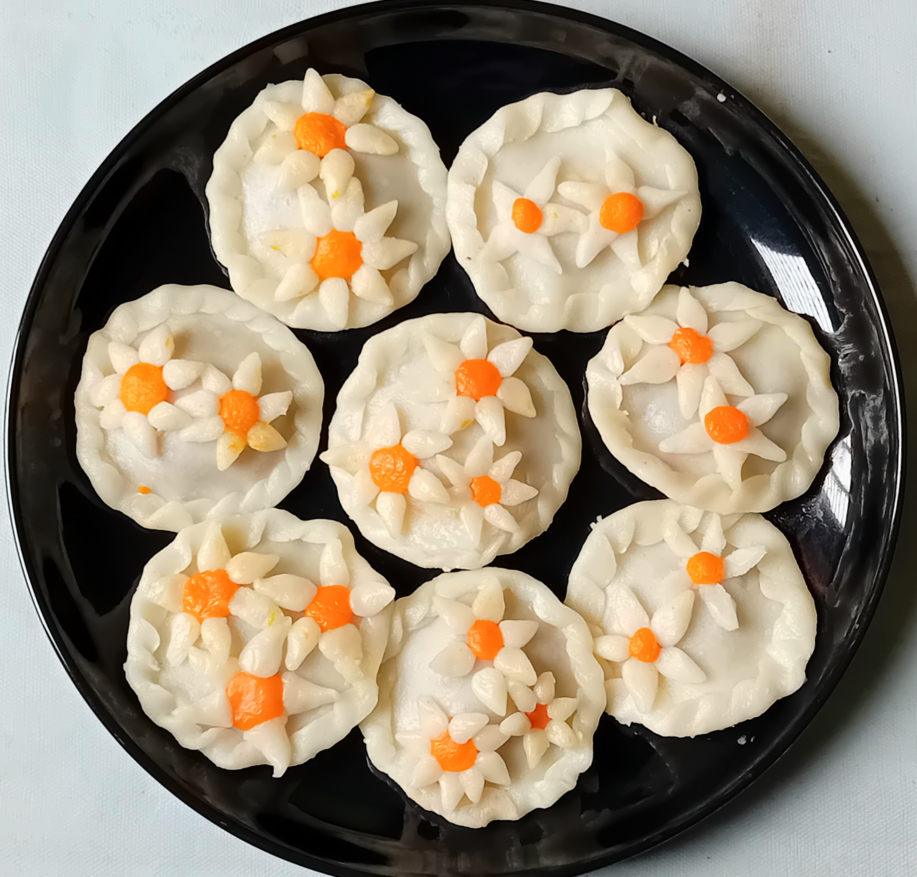 এভাবে আমি সবগুলো পলি পিঠার উপর শিউলি ফুলের মত ছোট ছোট ফুল তৈরি করে নিয়েছি।