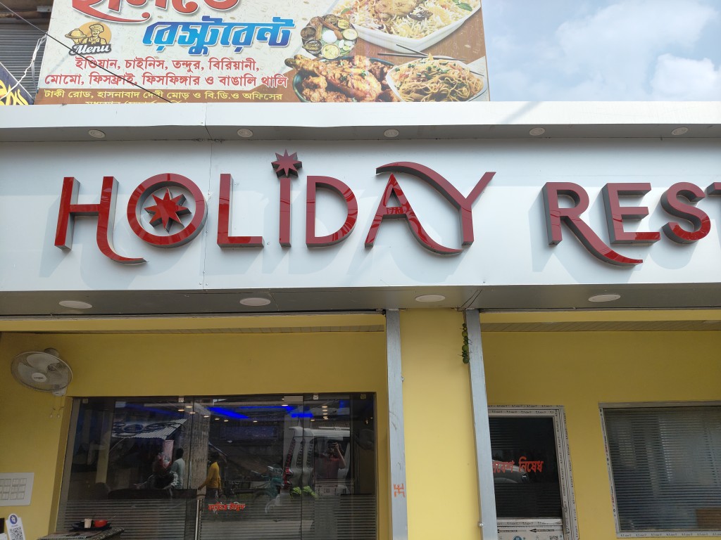 বসন্ত শেষ হয়ে পুরোপুরি গরম পরে যাওয়ার আগে ঘুরে এলাম ভারত-বাংলাদেশ সীমান্তের শহর টাকি। টাকি ঘোরা নিয়ে ব্লগ করবো, তবে আগে সেদিনের খাওয়ার অভিজ্ঞতা ভাগ করে নিই। টাকির স্পট গুলো ভালো ভাবে ঘুরে নিতে সকাল সকাল সেখানে পৌঁছে যাই। সারাদিন ধরে টাকি আর ইছামতীর পাড় ধরে সব স্পট ঘুরে দেখতে দেখতে দুপুর গড়িয়ে গেল। স্বাভাবিকভাবেই পেটের ভেতর তখন খিদের আগুন জ্বলছে। তা ঘুরতে ঘুরতে শেষ গন্তব্য ছিল টাকি ইকো ট্যুরিজম পার্ক। তার ভেতরে একটি খাবার দোকান আছে তবে সেখানে কিছু সময় ব্যয় করে জানতে পারলাম রান্না শেষ হয়নি তখনও। অগত্যা সেখান থেকে খালি হাতে এবং খালি পেটে বেরোলাম, তবে বেরোনোর সময় মনটা ভালো খাবারের দোকান খুঁজছিল। টাকি থেকে অল্প দূরত্বে আছি তাই মুঠোফোনের উপরে ভরসা করলাম। খুঁজে পেতে হাসনাবাদের হলিডে রেস্টুরেন্ট ভেসে উঠলো। মজার বিষয়, টাকি শহরে প্রান্তে দাঁড়িয়ে হাসনাবাদের ওই রেস্তোরাঁই কাছে। আর দেরি না করে প্রায় আড়াই কিলোমিটার পথ পেরিয়ে পৌঁছে গেলাম রেস্টুরেন্টের সামনে।