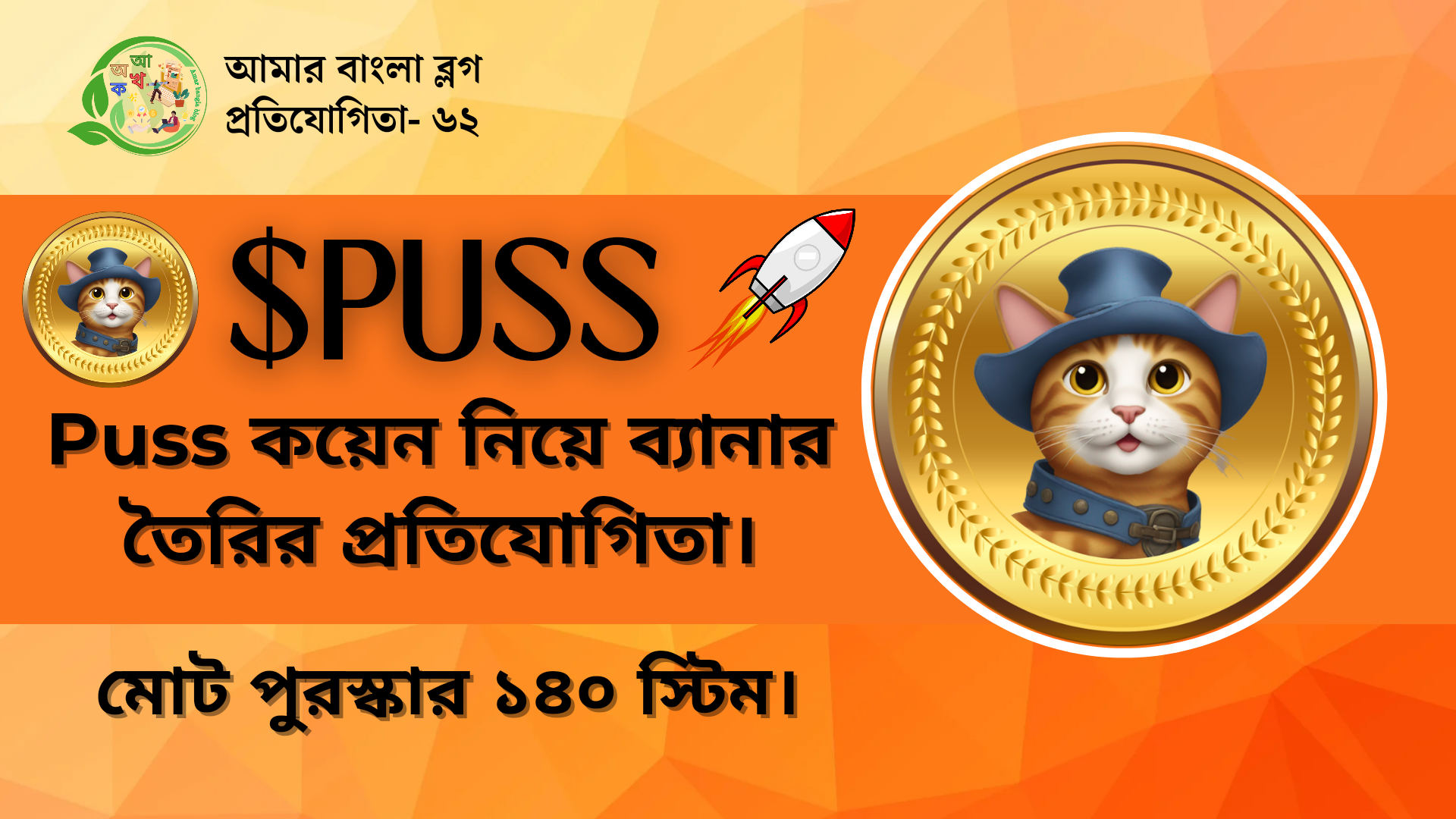 "আমার বাংলা ব্লগ" প্রতিযোগিতা - ৬২ || $PUSS কয়েন নিয়ে ব্যানার তৈরির প্রতিযোগিতা