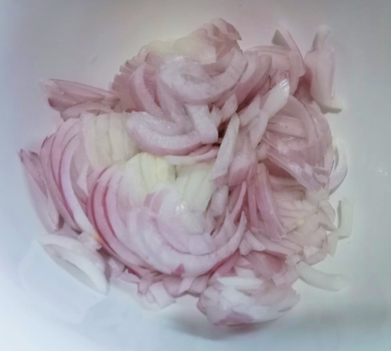 এবার পেঁয়াজগুলোর খোসা ছাড়িয়ে, কুচি করে কেটে নিতে হবে।