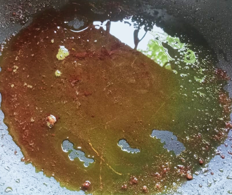 এবার চুলায় কড়াই বসিয়ে দিতে হবে। কড়াই গরম হয়ে আসলে পরিমাণ মতো সয়াবিন তেল কড়াইতে ঢেলে দিতে হবে।