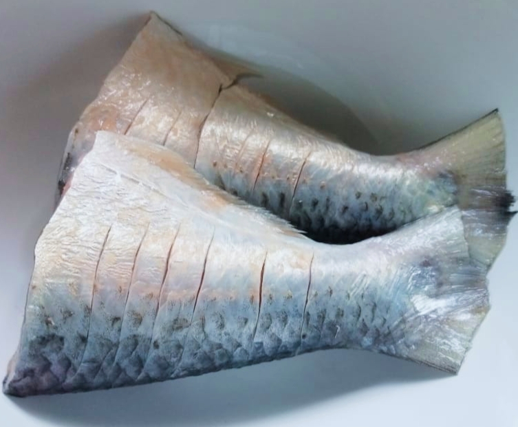 প্রথমে মাছের লেজ দুটোকে কেটে ভালোভাবে পরিষ্কার করে নিতে হবে।