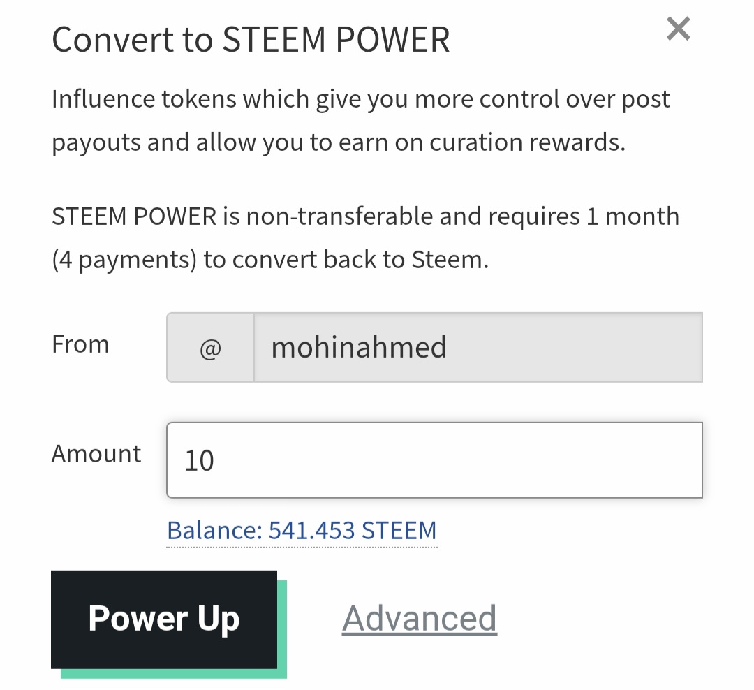 প্রতিদিনের মতো আজকেও আমি আপনাদের সামনে আরো একটি নতুন পোস্ট নিয়ে হাজির হয়েছি। আজকে আমি আপনাদের সাথে পাওয়ার আপ পোস্ট শেয়ার করবো। আজকে আমি ১০ স্টিম পাওয়ার আপ করেছি। আমি চেষ্টা করি নিয়মিত পাওয়ার আপ করার জন্য। কারণ পাওয়ার আপ এর মাধ্যমে আইডির সক্ষমতা বৃদ্ধি পায়। এই প্লাটফর্মে দীর্ঘমেয়াদি কাজ করার জন্য পাওয়ার আপ এর কোনো বিকল্প নেই। তাইতো পাওয়ার আপ করতে আমি খুব ভালোবাসি। যাইহোক আজকে আমি কিভাবে ১০ স্টিম পাওয়ার আপ করলাম,সেটা ধাপে ধাপে আপনাদের সাথে শেয়ার করতে যাচ্ছি। আশা করি আপনাদের কাছে খুব ভালো লাগবে।