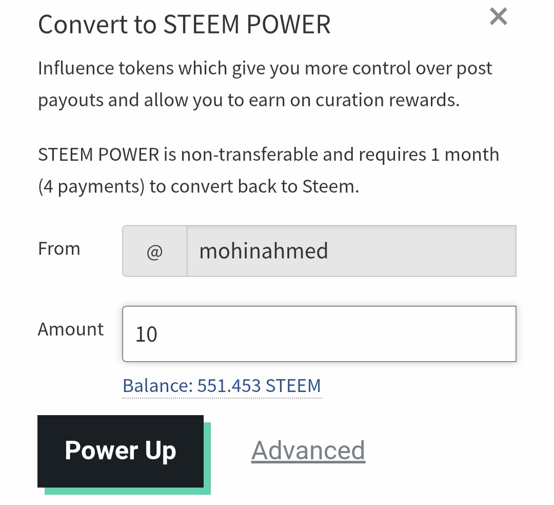 প্রতিদিনের মতো আজকেও আমি আপনাদের সামনে আরো একটি নতুন পোস্ট নিয়ে হাজির হয়েছি। আজকে আমি আপনাদের সাথে পাওয়ার আপ পোস্ট শেয়ার করবো। আজকে আমি ১০ স্টিম পাওয়ার আপ করেছি। আমি চেষ্টা করি নিয়মিত পাওয়ার আপ করার জন্য। কারণ পাওয়ার আপ এর মাধ্যমে আইডির সক্ষমতা বৃদ্ধি পায়। এই প্লাটফর্মে দীর্ঘমেয়াদি কাজ করার জন্য পাওয়ার আপ এর কোনো বিকল্প নেই। তাইতো পাওয়ার আপ করতে আমি খুব ভালোবাসি। যাইহোক আজকে আমি কিভাবে ১০ স্টিম পাওয়ার আপ করলাম,সেটা ধাপে ধাপে আপনাদের সাথে শেয়ার করতে যাচ্ছি। আশা করি আপনাদের কাছে খুব ভালো লাগবে।