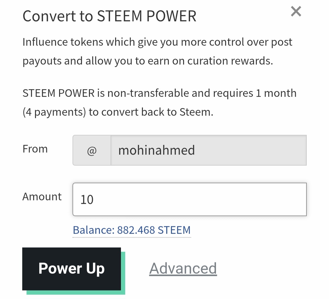 প্রতিদিনের মতো আজকেও আমি আপনাদের সামনে আরো একটি নতুন পোস্ট নিয়ে হাজির হয়েছি। আজকে আমি আপনাদের সাথে পাওয়ার আপ পোস্ট শেয়ার করবো। আজকে আমি ১০ স্টিম পাওয়ার আপ করেছি। আমি চেষ্টা করি নিয়মিত পাওয়ার আপ করার জন্য। কারণ পাওয়ার আপ এর মাধ্যমে আইডির সক্ষমতা বৃদ্ধি পায়। এই প্লাটফর্মে দীর্ঘমেয়াদি কাজ করার জন্য পাওয়ার আপ এর কোনো বিকল্প নেই। তাইতো পাওয়ার আপ করতে আমি খুব ভালোবাসি। যাইহোক আজকে আমি কিভাবে ১০ স্টিম পাওয়ার আপ করলাম,সেটা ধাপে ধাপে আপনাদের সাথে শেয়ার করতে যাচ্ছি। আশা করি আপনাদের কাছে খুব ভালো লাগবে।