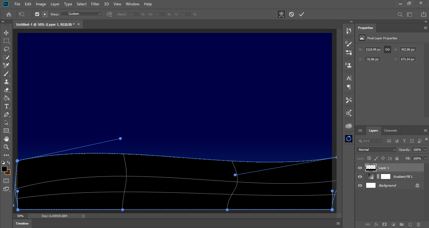 এবার নতুন একটি লেয়ার তৈরি করে মারকিউ টুল দিয়ে একটা র্যাক্টেংগেল আঁকি। তারপর ট্রান্সফর্ম এর ওয়ার্প অপশন ব্যবহার করে আমার গ্রাউন্ড এর সাইজ মতন বানিয়ে ফেলি।