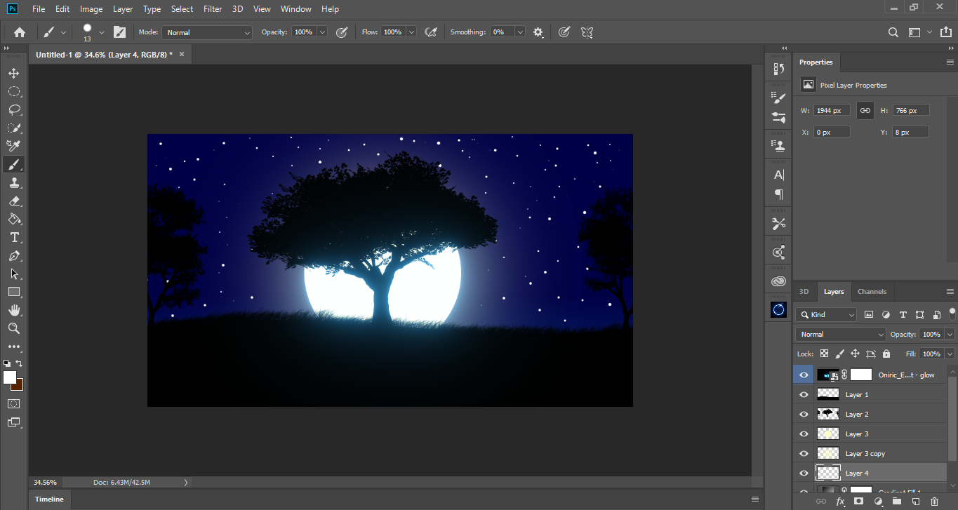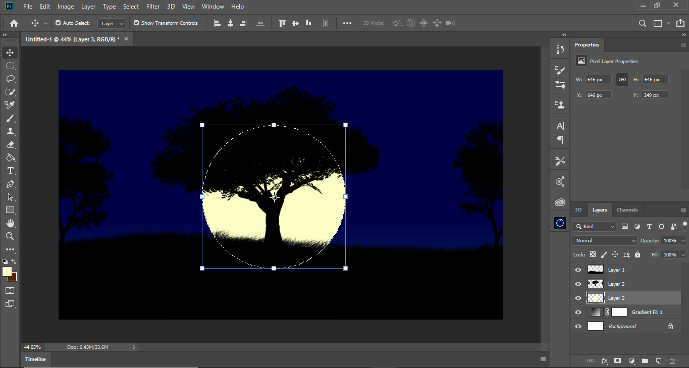 এবার আমি নতুন আরো একটি লেয়ার তৈরি করে সেখানে মারকিউ টুল ব্যবহার করে চাঁদ এঁকে ফেলি। চাঁদ এর লেয়ার গাছ ও গ্রাউন্ড লেয়ার এর নিচে রাখি। এতে সুন্দর দেখাবে।