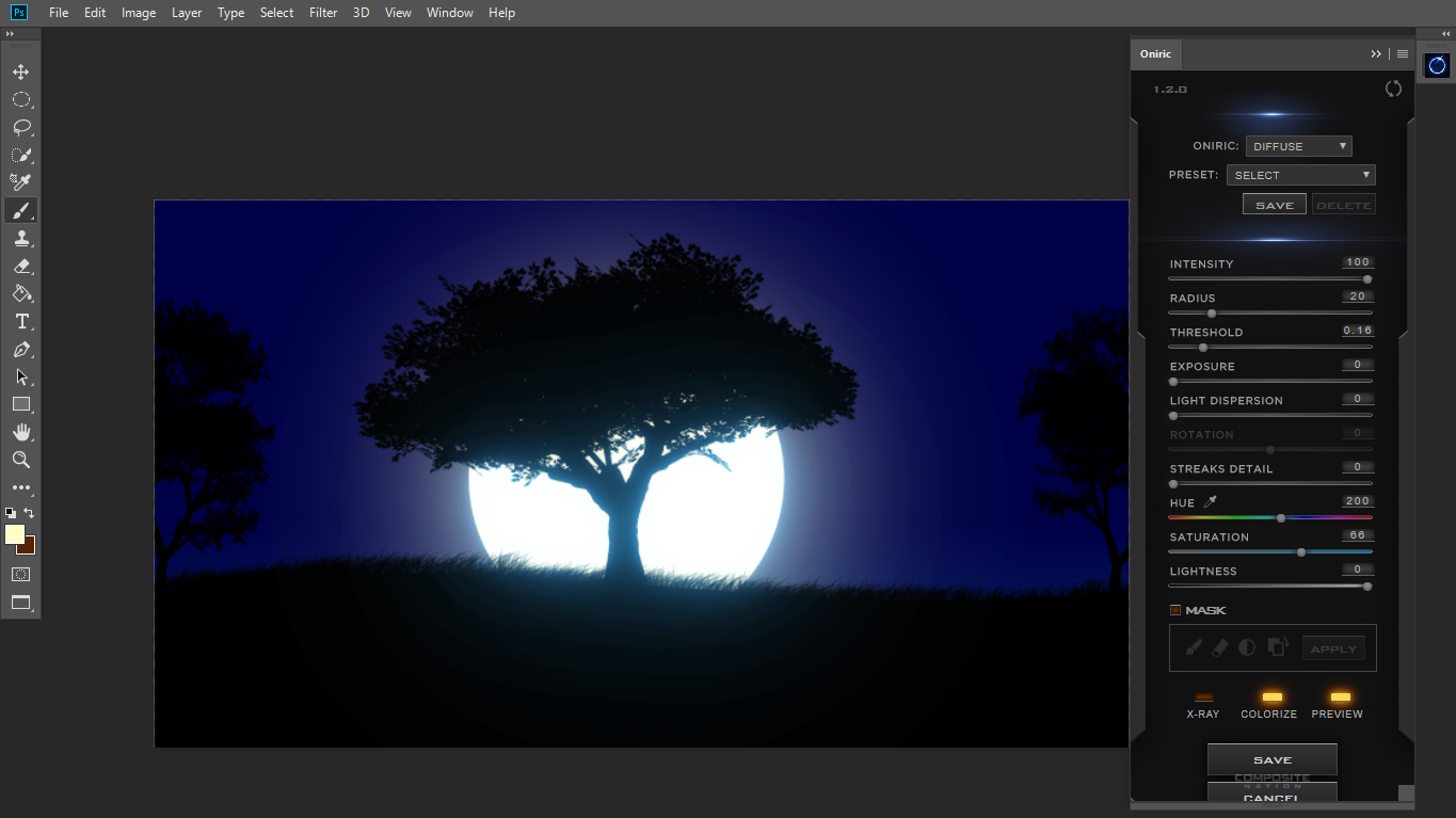 এবার চাঁদের গ্লো আরো বৃদ্ধি করার জন্য অরিনিক প্লাগিন ব্যবহার করি। এতে চাঁদ এর উজ্জ্বলতা অনেক বেড়ে যায়।