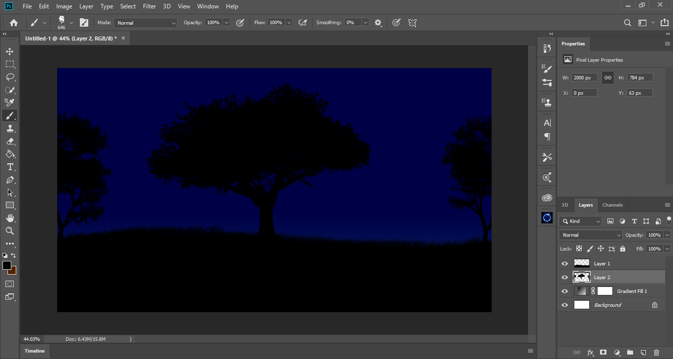 এবার নতুন আরো একটি লেয়ার তৈরি করে সেটার উপর কাস্টম ব্রাশ টুল কয়েক রকম এর গাছ এঁকে দেই।