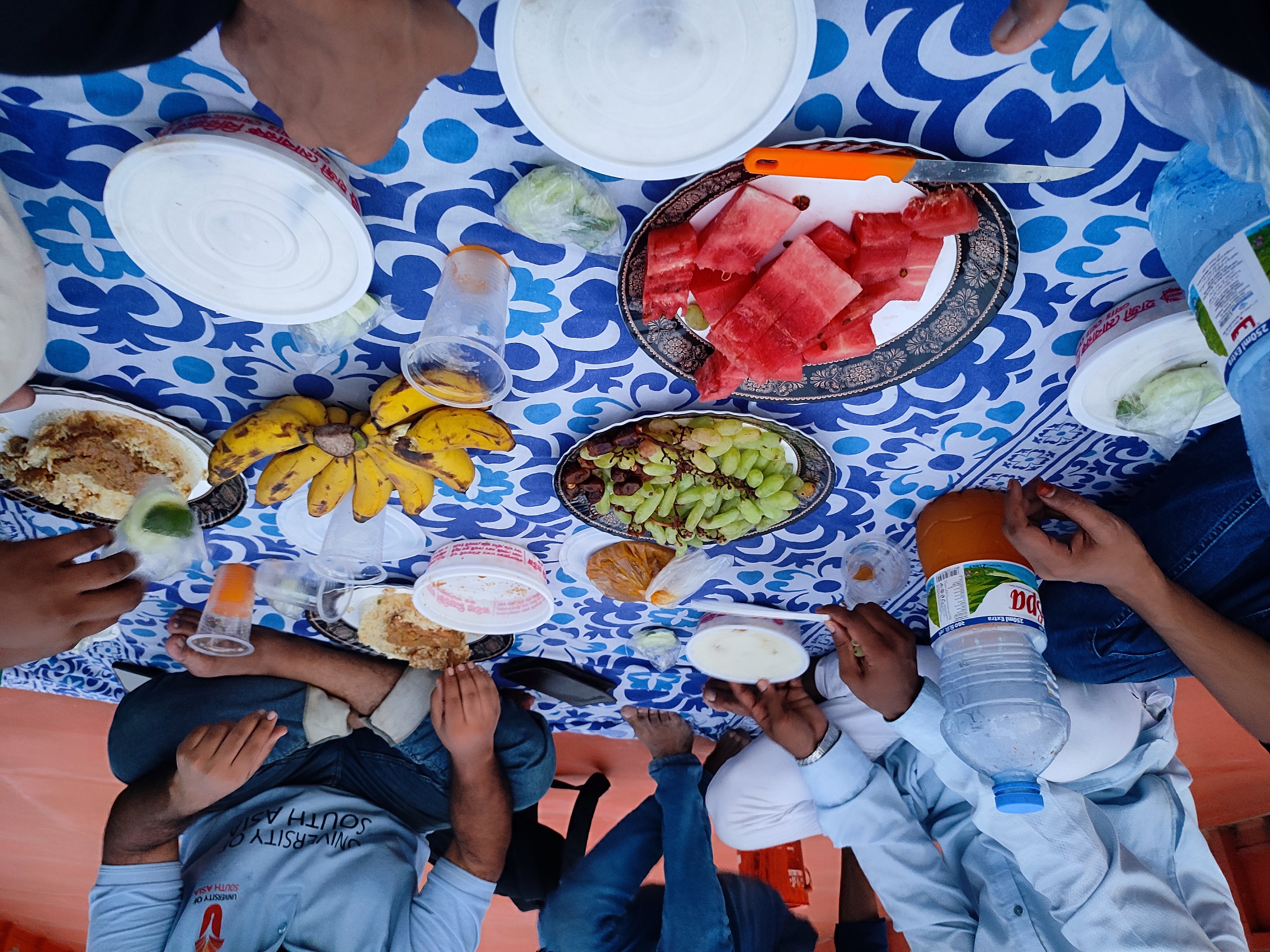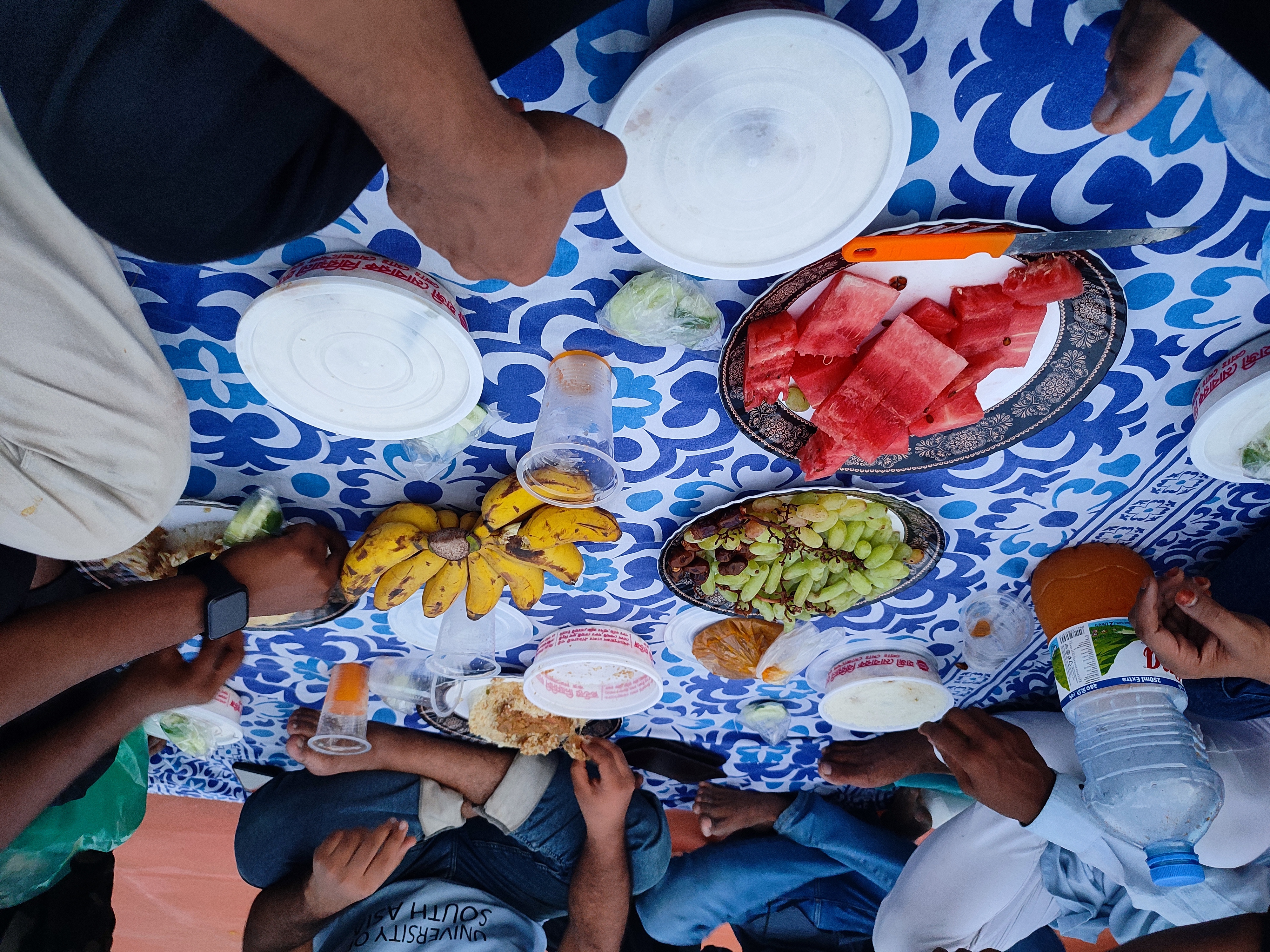 সময় খুবই কম ছিল, ছবি দেখে বুঝতে পারছেন সাজাতে পারিনি বেশ অনেকগুলো আইটেম ছিল আমাদের, যখন আজান দিচ্ছিল তখন আমরা সবকিছু রেডি করছিলাম। তাড়াতাড়ি হাতে হাতে কাজগুলো সেরে ফেললাম, আমাদের ইফতার দেখে দূর থেকে একজন আসলো দূর থেকে নাকি আমাদের দেখে খুব ভালো লেগেছে তার কাছে। আমরাও তাকে অফার করলাম আমাদের সাথে ইফতার করার জন্য। বেশ ভালোই একটা আড্ডা হল, সবচেয়ে বড় কথা এই টিমটা আমার খুব প্রিয় ছিল, কেননা এইরকম একটা কাজ সবার দ্বারা হয় না।